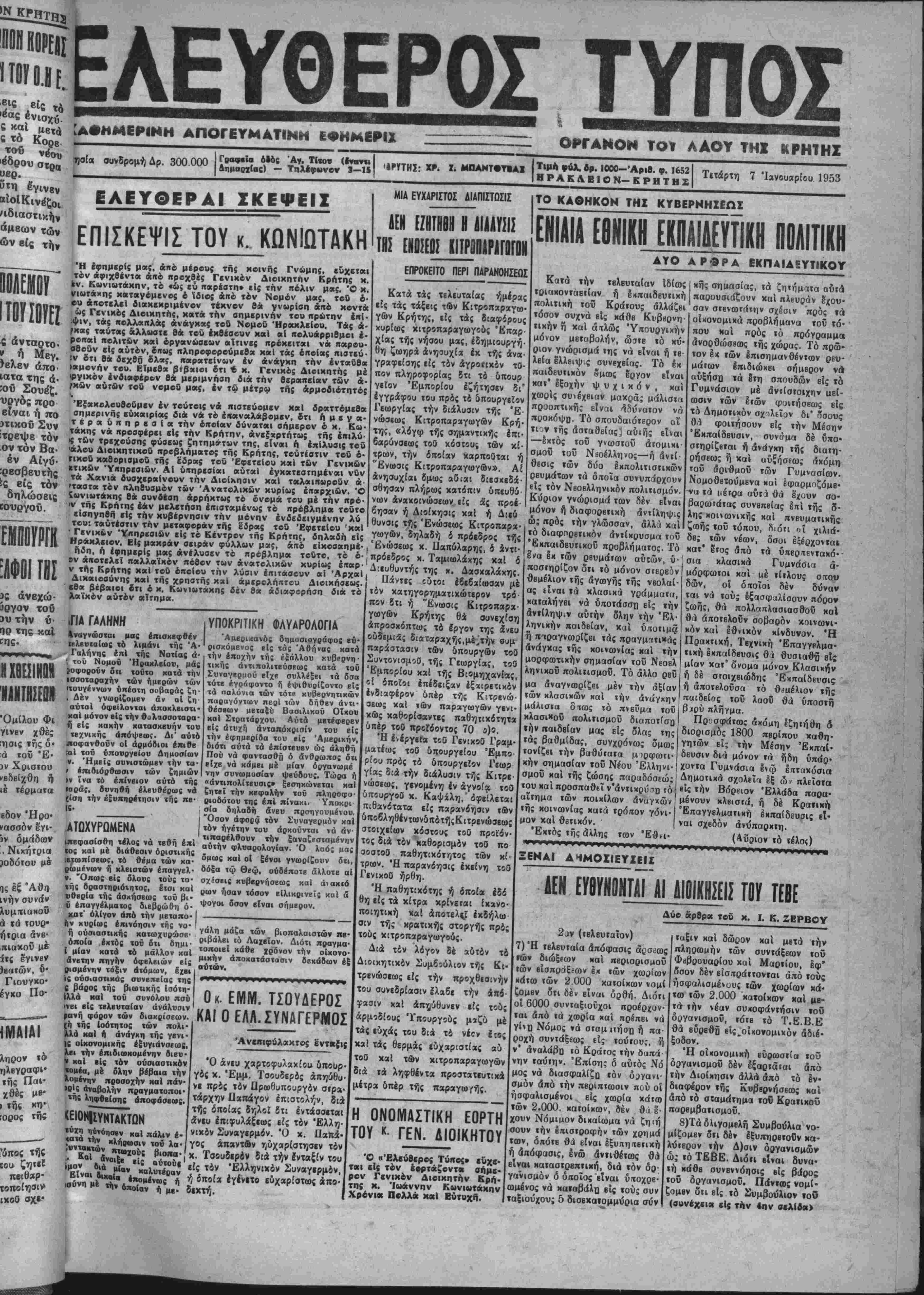 «ν. Κωνιωτάκην, τό «ώ; εΰ παρέστη» είς την πόλιν μας. Ό Κ.