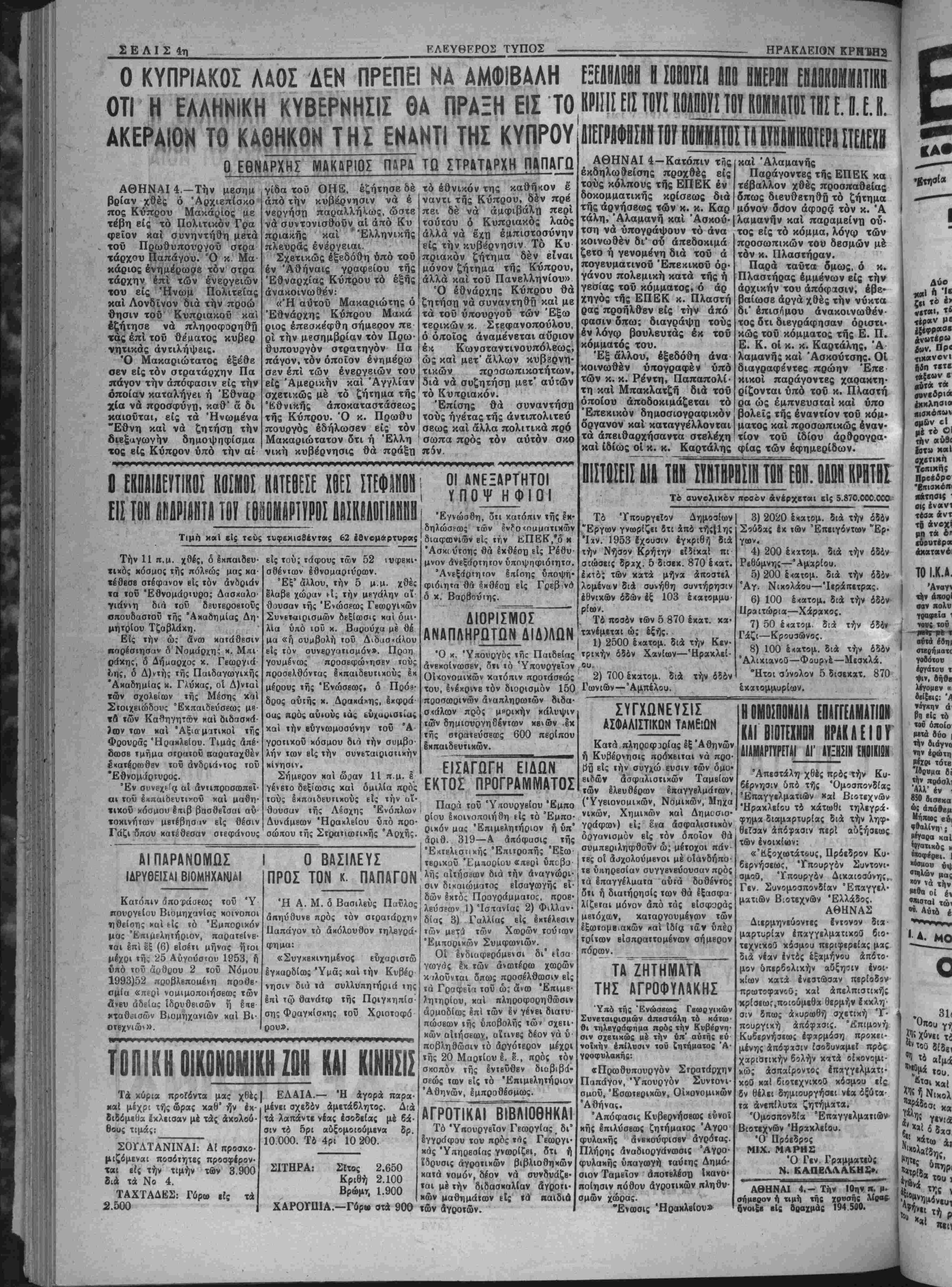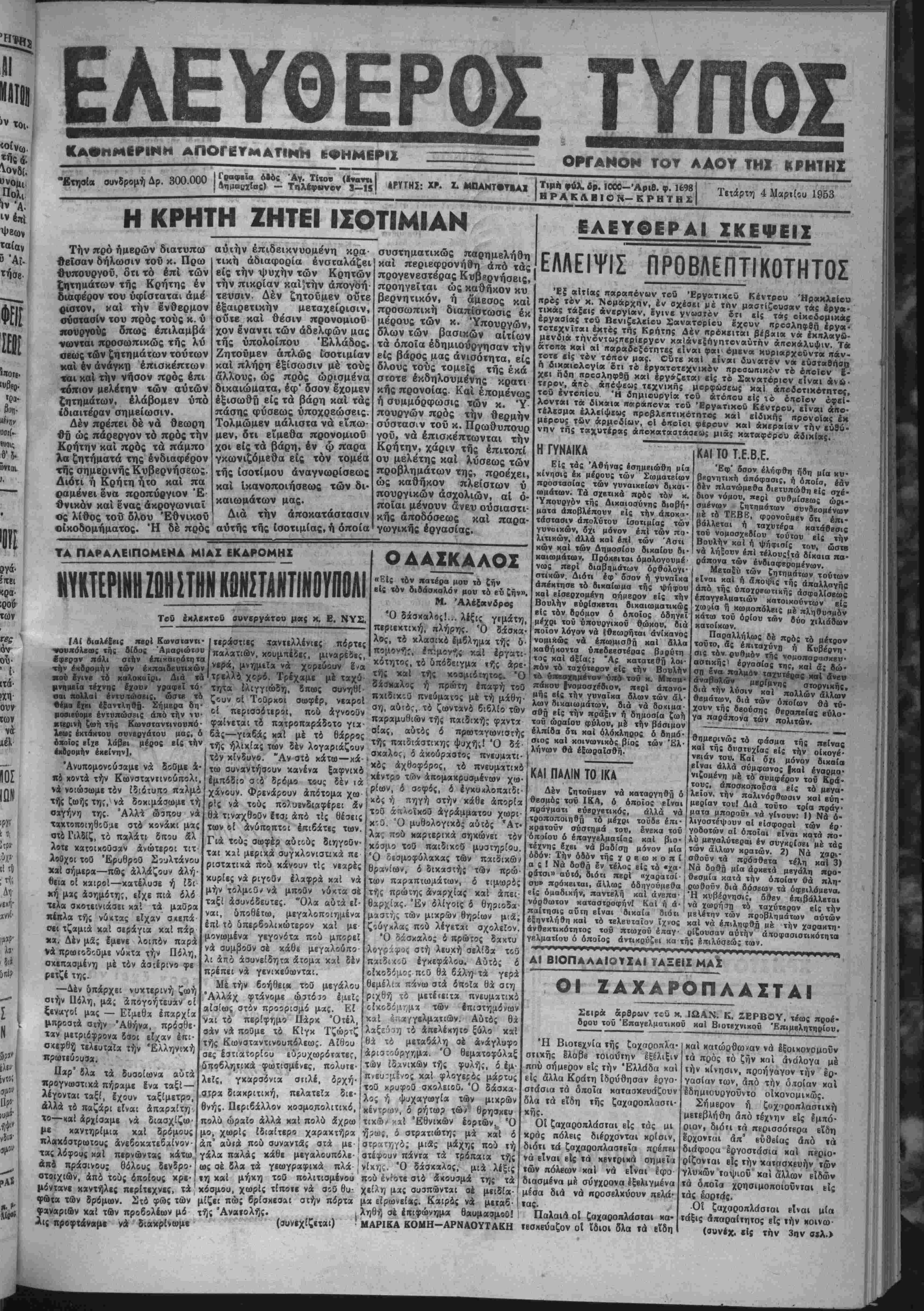 Τετάρτη 4 Μαριίου 1953