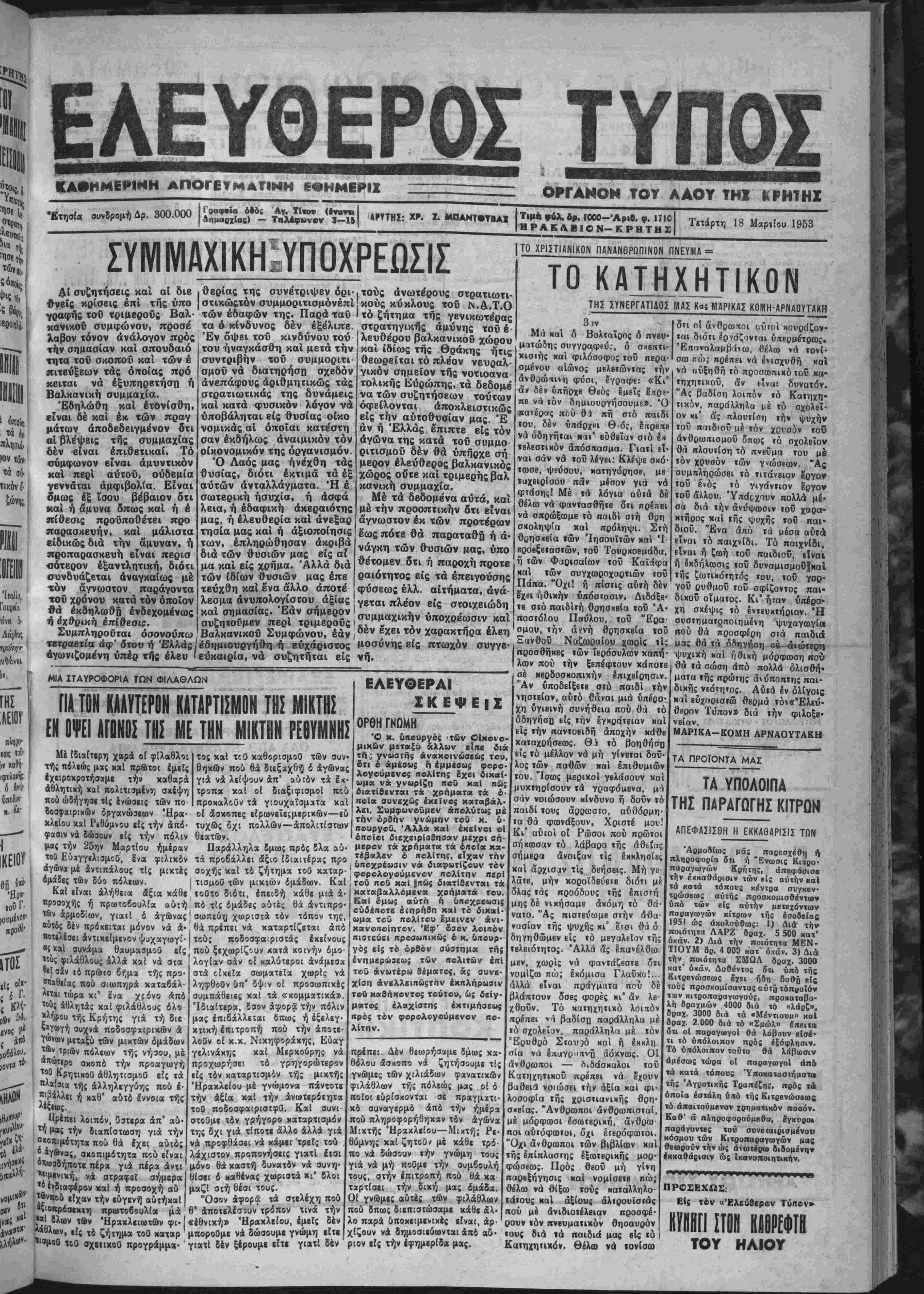 Τετάρτη 18 Μαριίου 1953