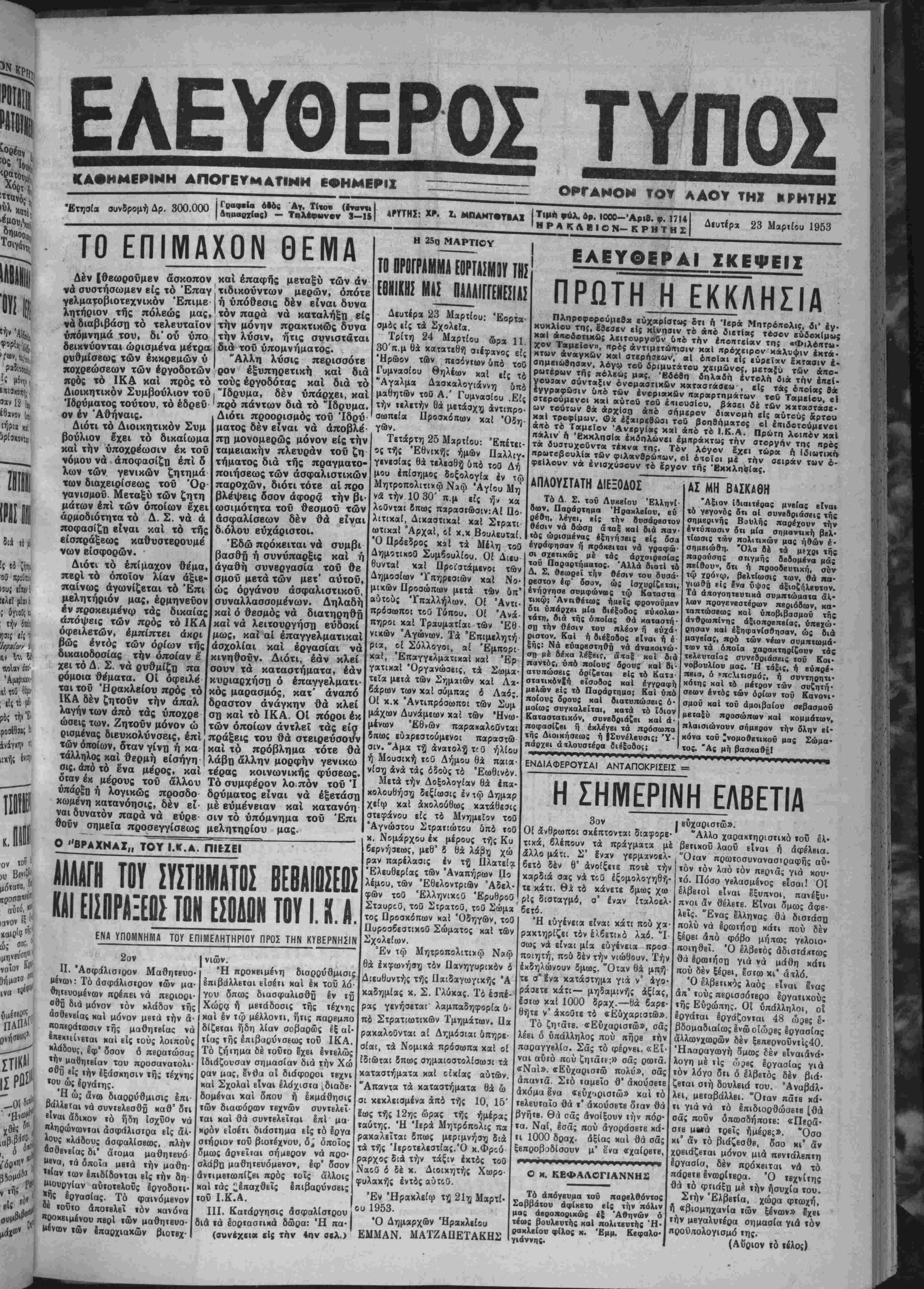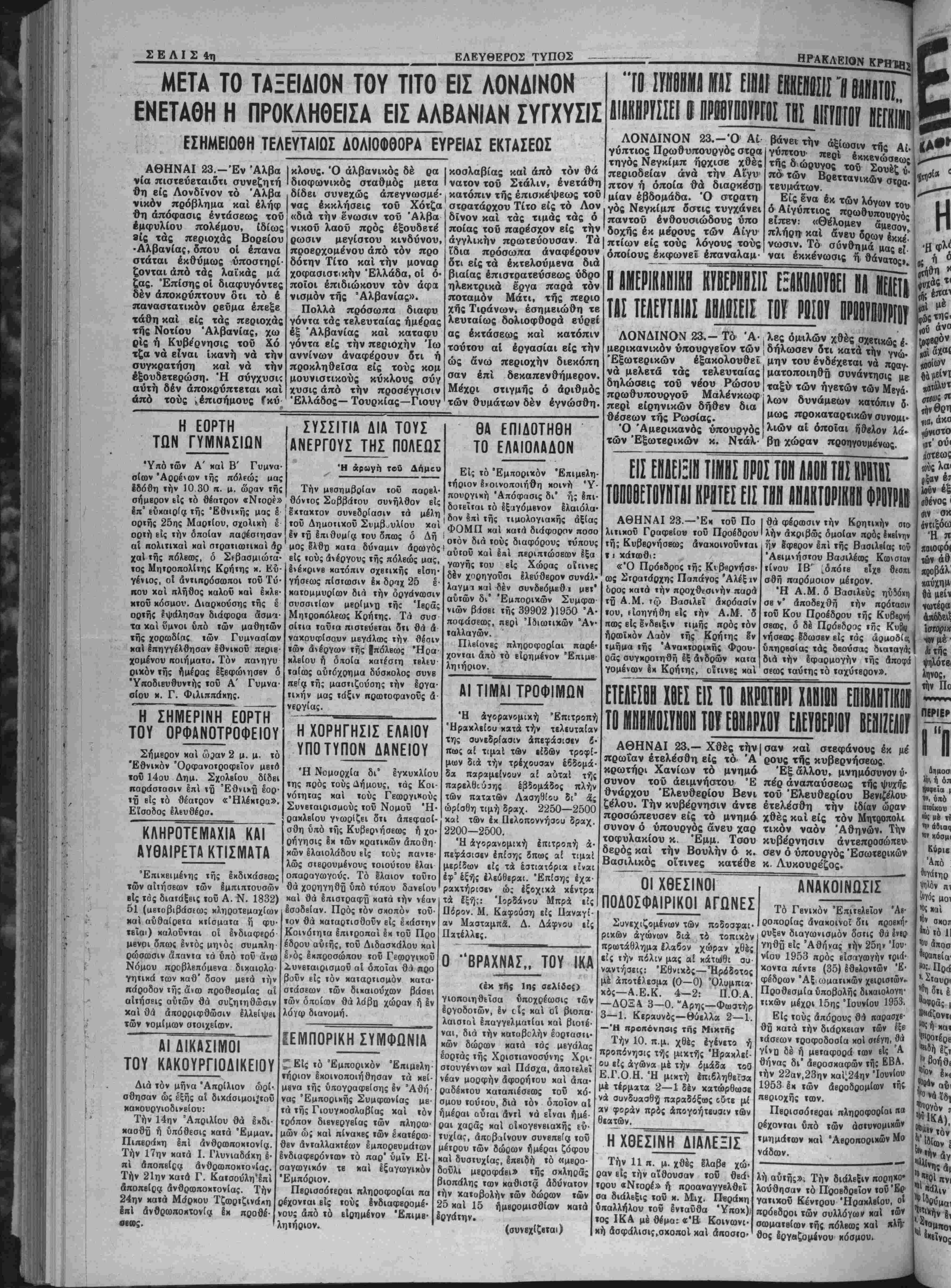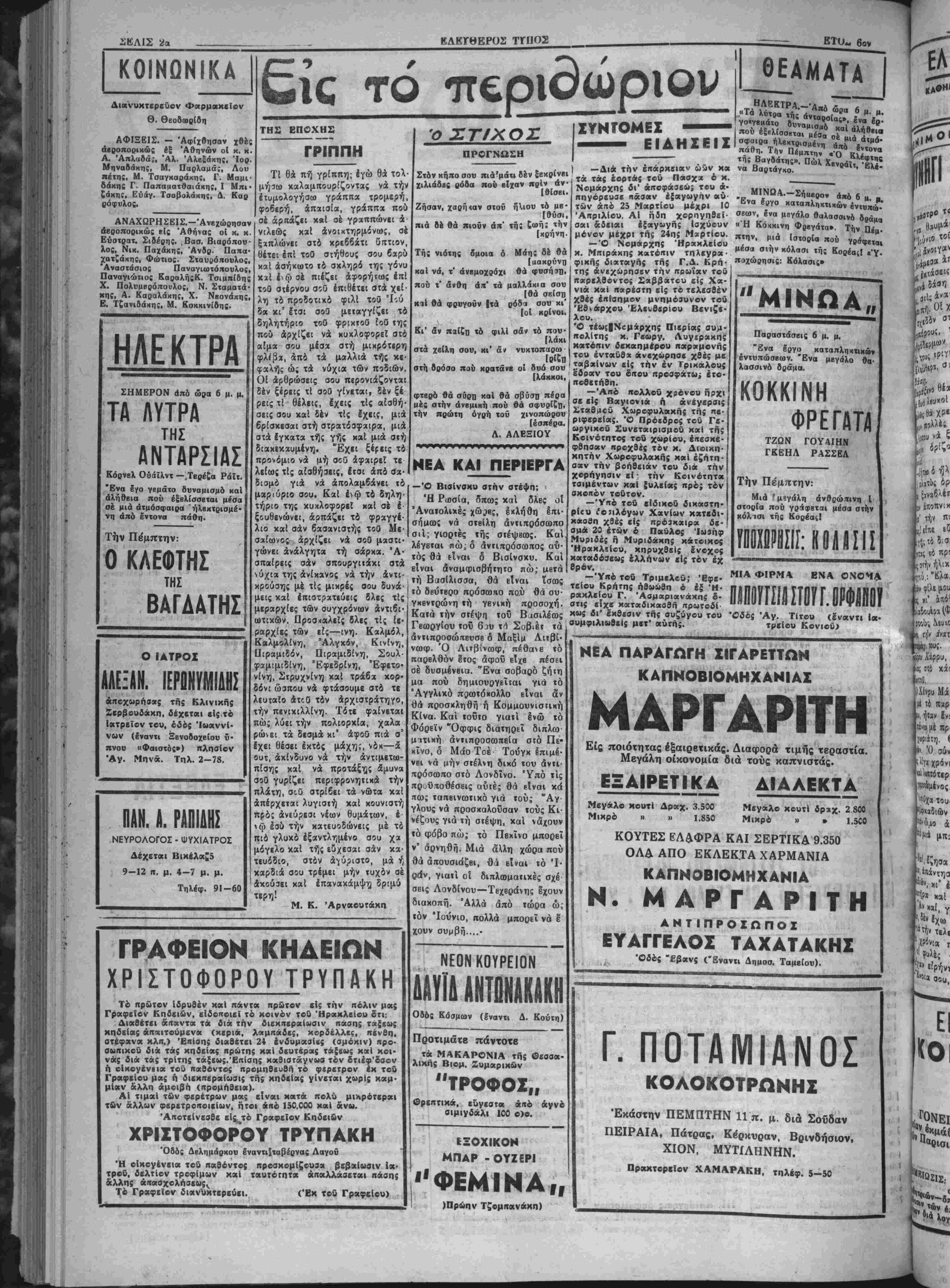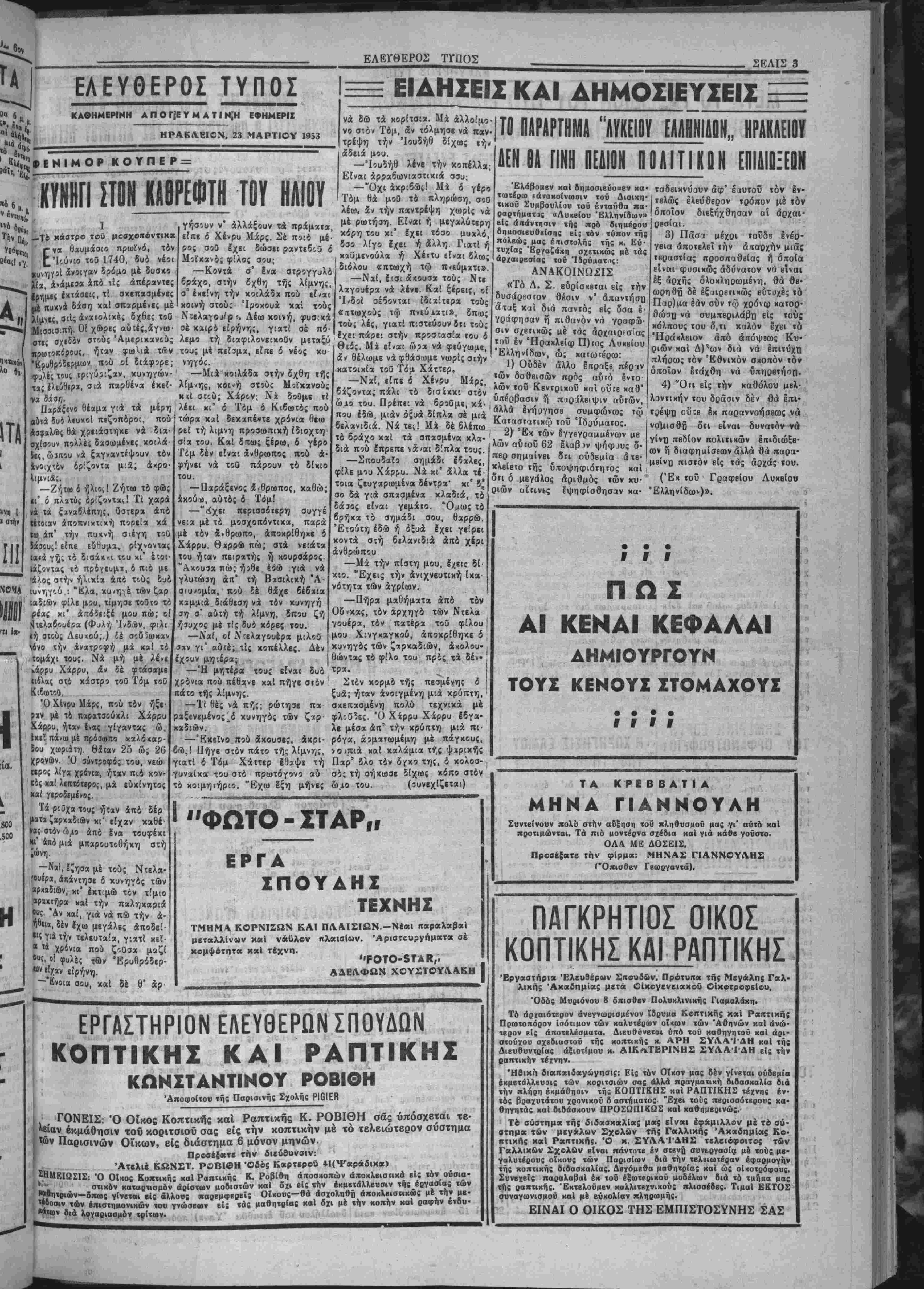 νά συνδυασθς παραδόξως ιδτε μ< αν φοράν πρός απογοήτευσιν «ών θεατών. ιΓχθΕΣΙΝΗ ΔΙΑΛΕΞΙΣ Την 11 π. μ. χθές έλαβε χώ¬ ραν ε!; την αίθουσαν τοϋ θεά· τρου «Ντορέ» ή προαναγγελθεΐ σα διάλεξις τοΰ κ. Μιχ. Περάκη ύπαλλή"λου τοί ενταύθα Ύποκ); τος ΙΚΑ μέθέμα:«'Β Κοινωνι- κή άσφάλισΐί,σκοποί καί άηοσιο· ΑΝΑΚΟΙΝΩΣΙΣ Τό Γενικόν Επιτελείον Άι· ροπορίας ανακοινοί δτι ποοΒχη· ρυξβν διαγωνισμόν όστις θά ενβα Ί γμ ϋ είς Αθήνας την 25ην Ίου νίου 1953 πρός βϊσαγωγήν ί ρς γή κοντα πέντβ (35) ίθβλσντάν Έ· φέδρων Αξιωματικών χβιρισιών. Προθβσμία ύποβολής δικαιολογη· τικών μέχρι 15ης Ίουνίου 1953. Είς τούς απόρους θά θβ κατά την διάρκειαν των ϋ« «άσεων τροφοδοσία κοί σϊέΥΠ. ®<* γίνη δέ ή μβταφορά των είς Α θήνας δι' άβροσκαφών της ΕΒΑ. την 22αν,23Πν καί!24ην ΊουνΙοι» 1953 έκ των άβροδρομΐων <η( «βριοχίϊς τοον. Πβρισσόιβραι πληροφοοίαι πά ρέχονται υπό των άσιυνομιχδν τμημάτων καί Άβροηορικών Μο νάδων. ίημοσ !(», ή όπ ΚθφΕΪα ι «ν, ύιτό ιιοίχαυ ώ; μβ τί ")< άβιας ιο* κόσμι Κύριβ 'Α-δ ηι !ηός μοί Ό{ χαί ΚΟί *ηό τό II *·άποσ *>«· Πρά