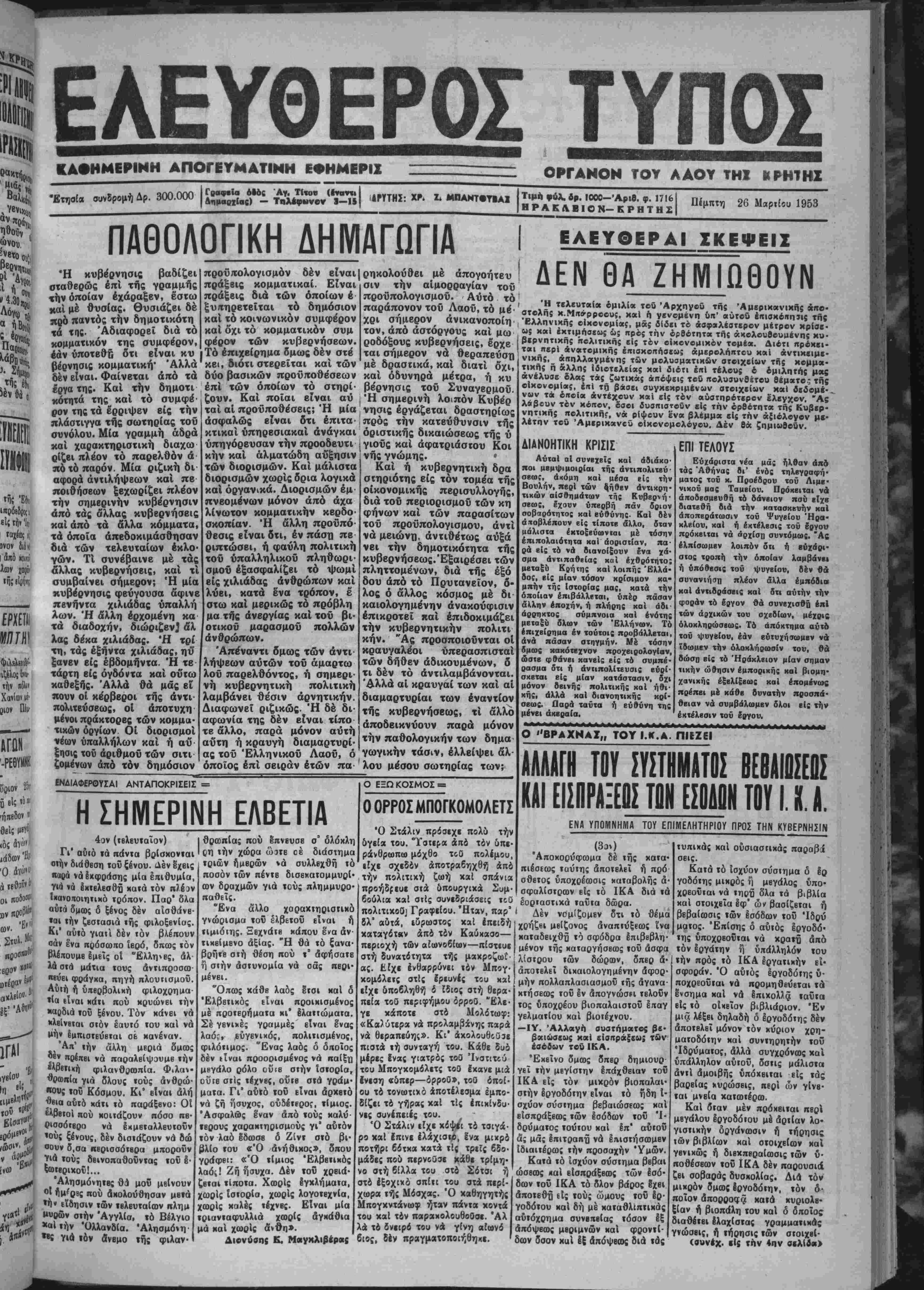 χηγοΰ των Φϋλελβυθέρων η. Β<· νιζβλου. η τιμητηιΓχρυσ;ησ»-ΛΙΡΑ8· Ήι ΑΘΗΝΑΙ 26-- Τή» οήμβρονή τ«μή της. ϊββσήί1 «| ■«. Βοαχιιάβ 189.000