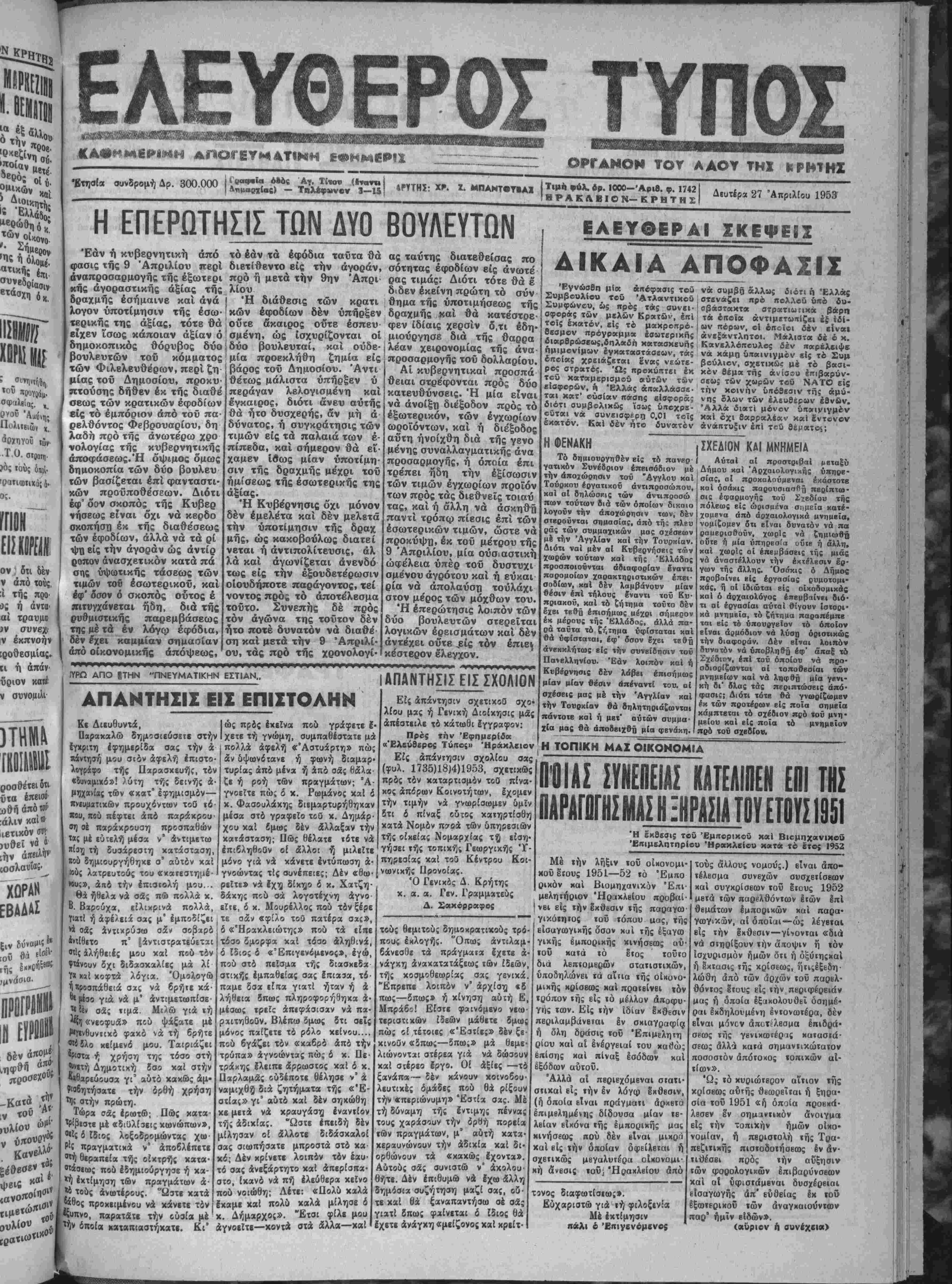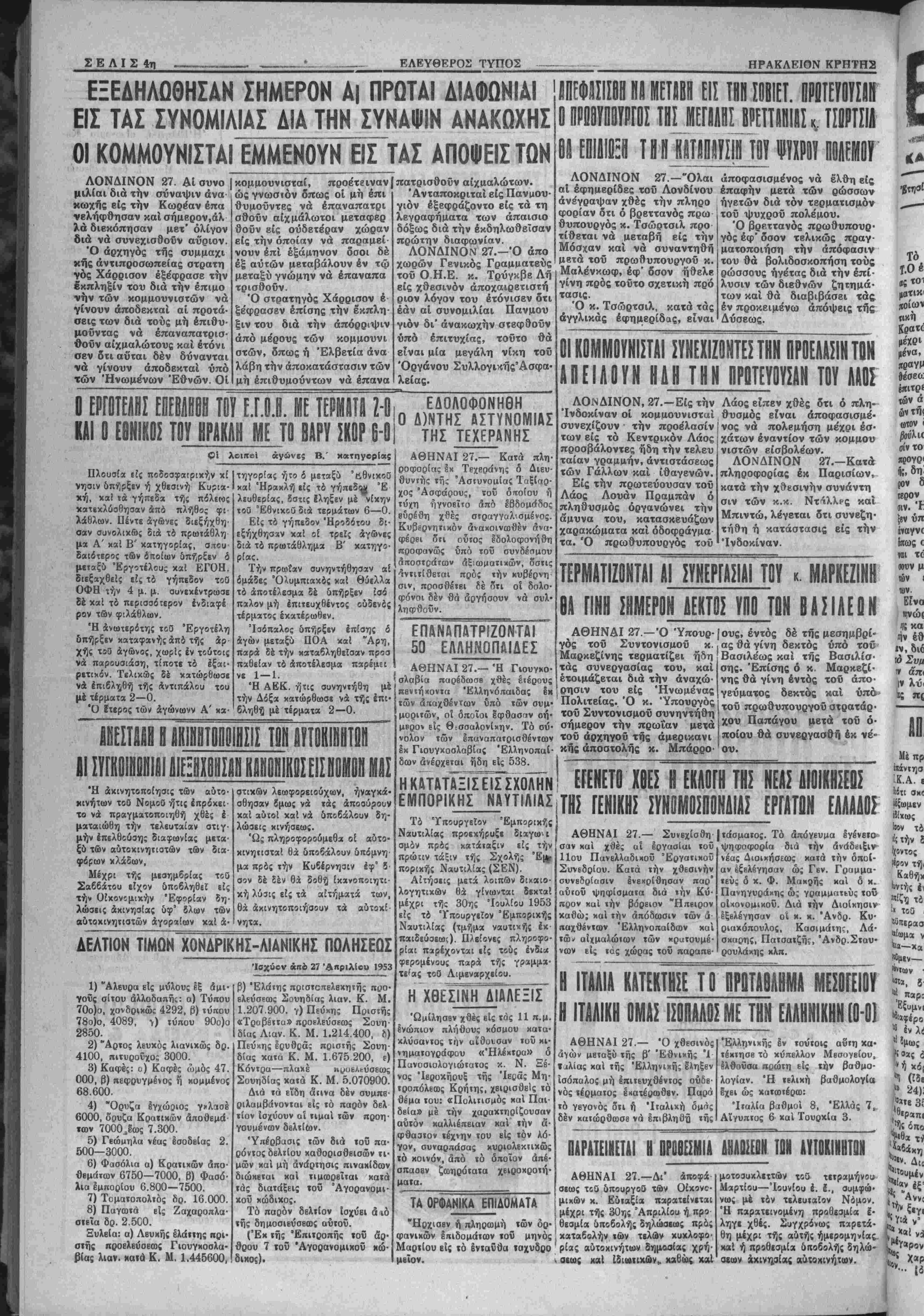 Δευτέρα 27 Απριλίου 1953