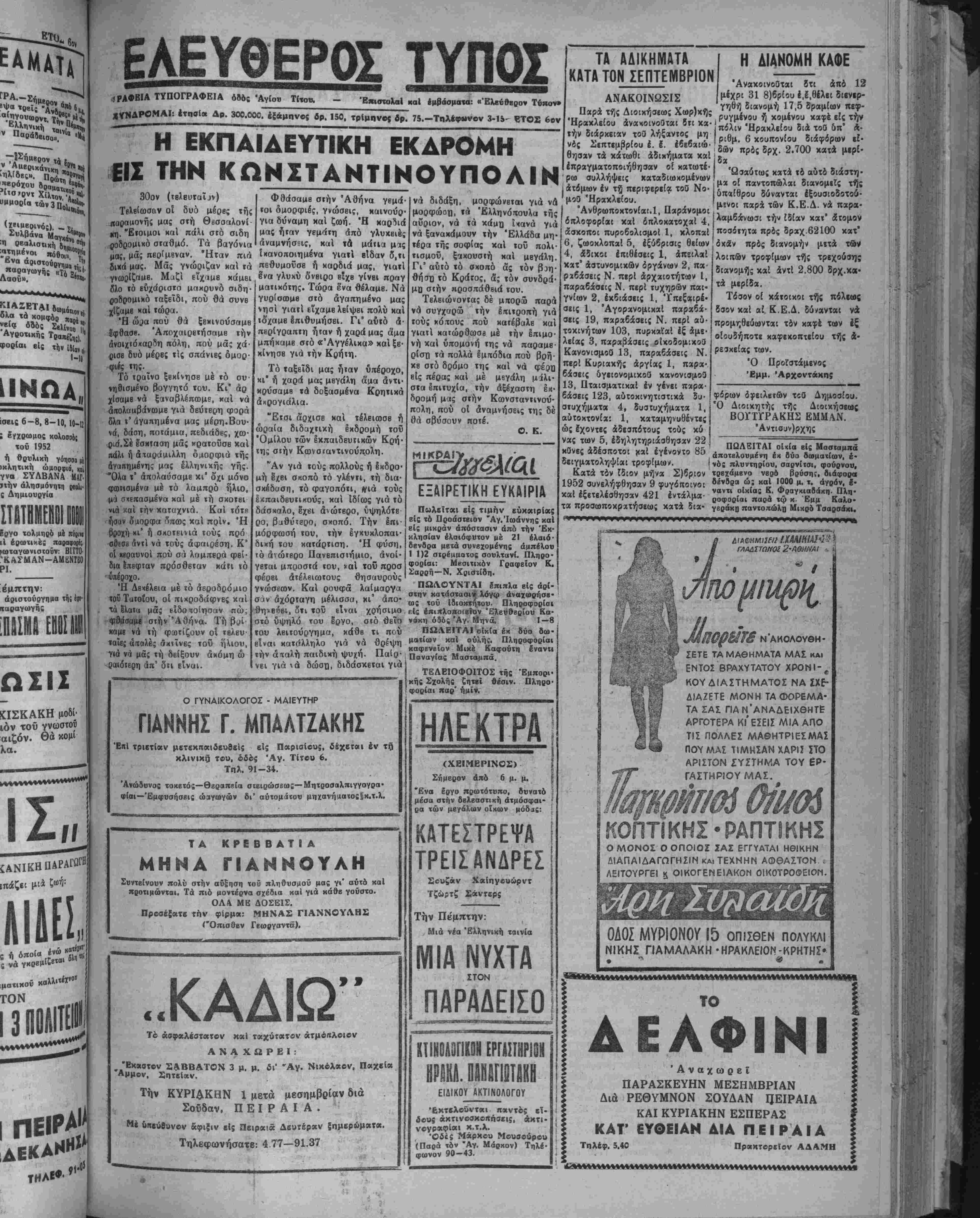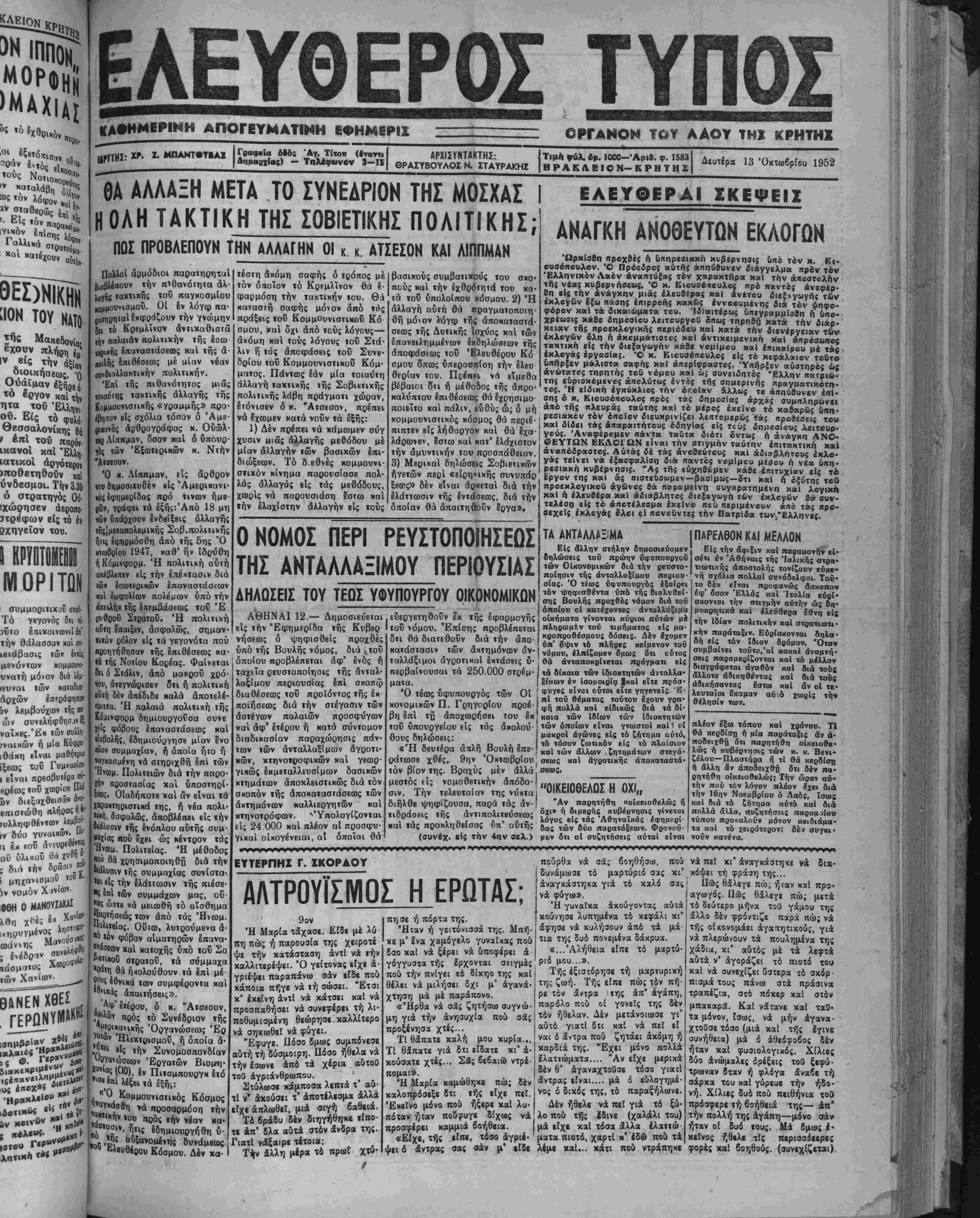 Δευτέρα 13 ΌχτωβρΙΌυ 1952