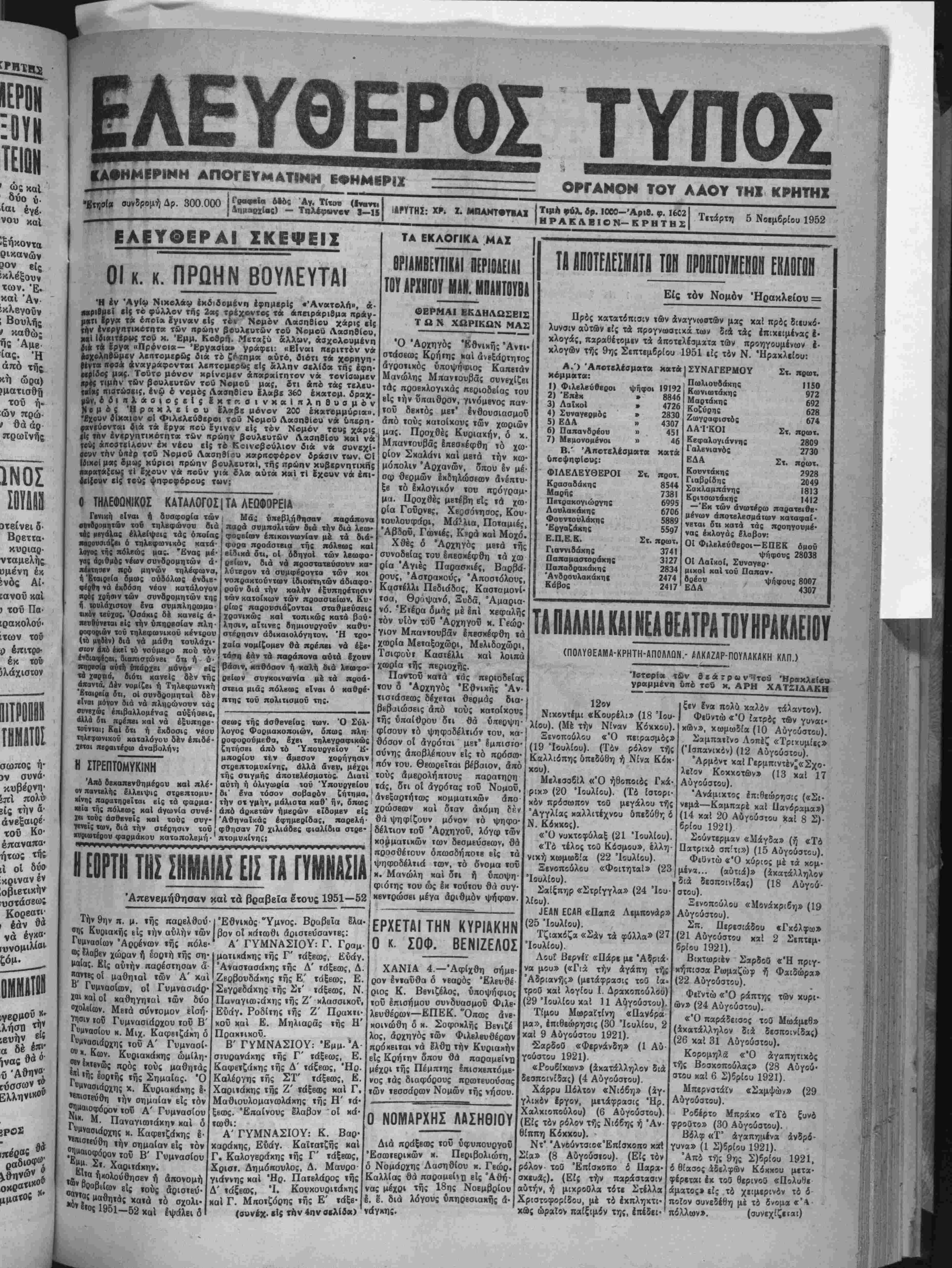 ΗΡΑΚ Α ΒΙΟΝ- ΚΡΗΤΗΣ Τΐτάρτΐ» 5 Ν»*6^» Ι952