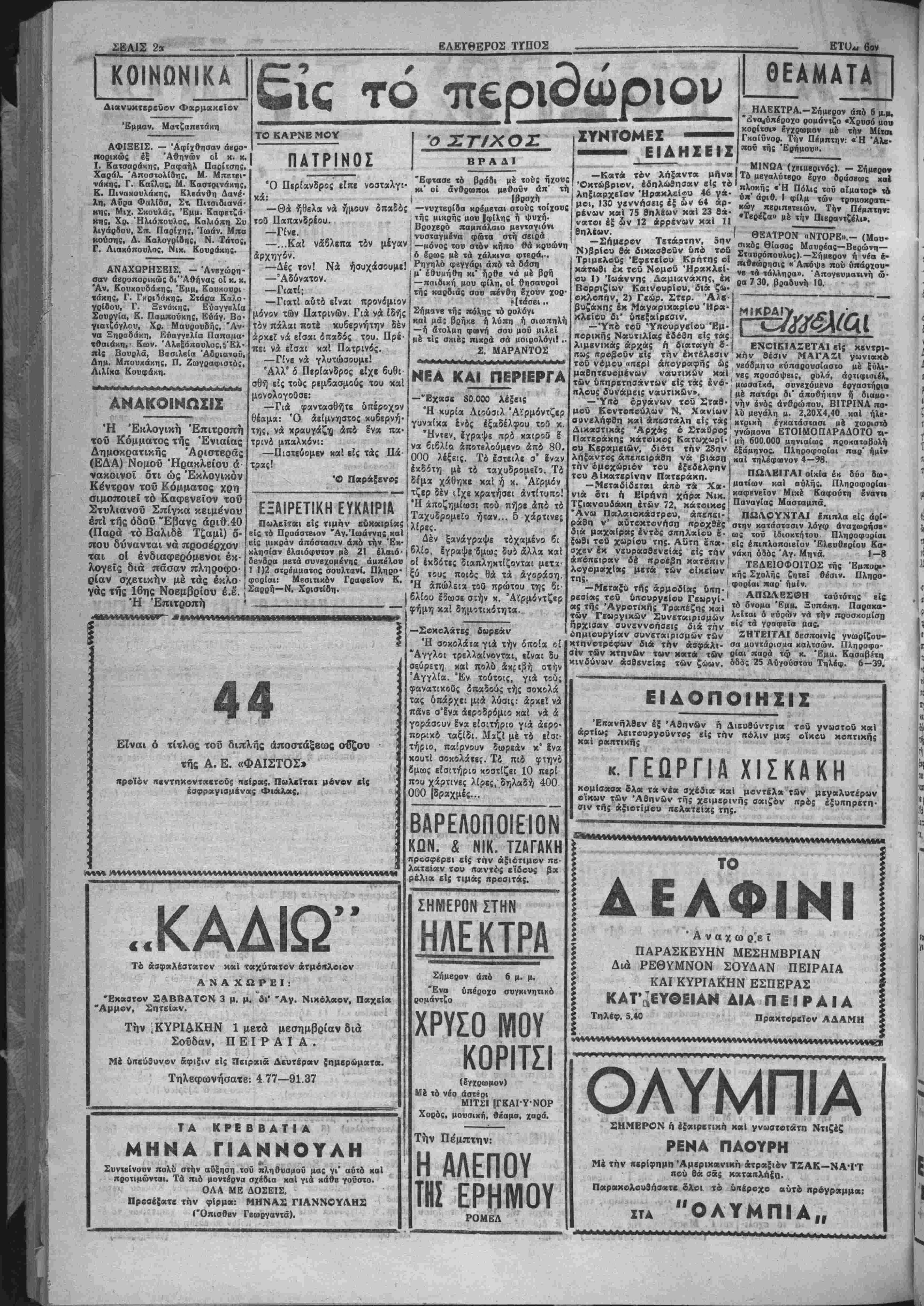 •Ιντα "β3* άναγραφονται λβκτομερ&ις είς άλλην σελίδα τής έφη-
