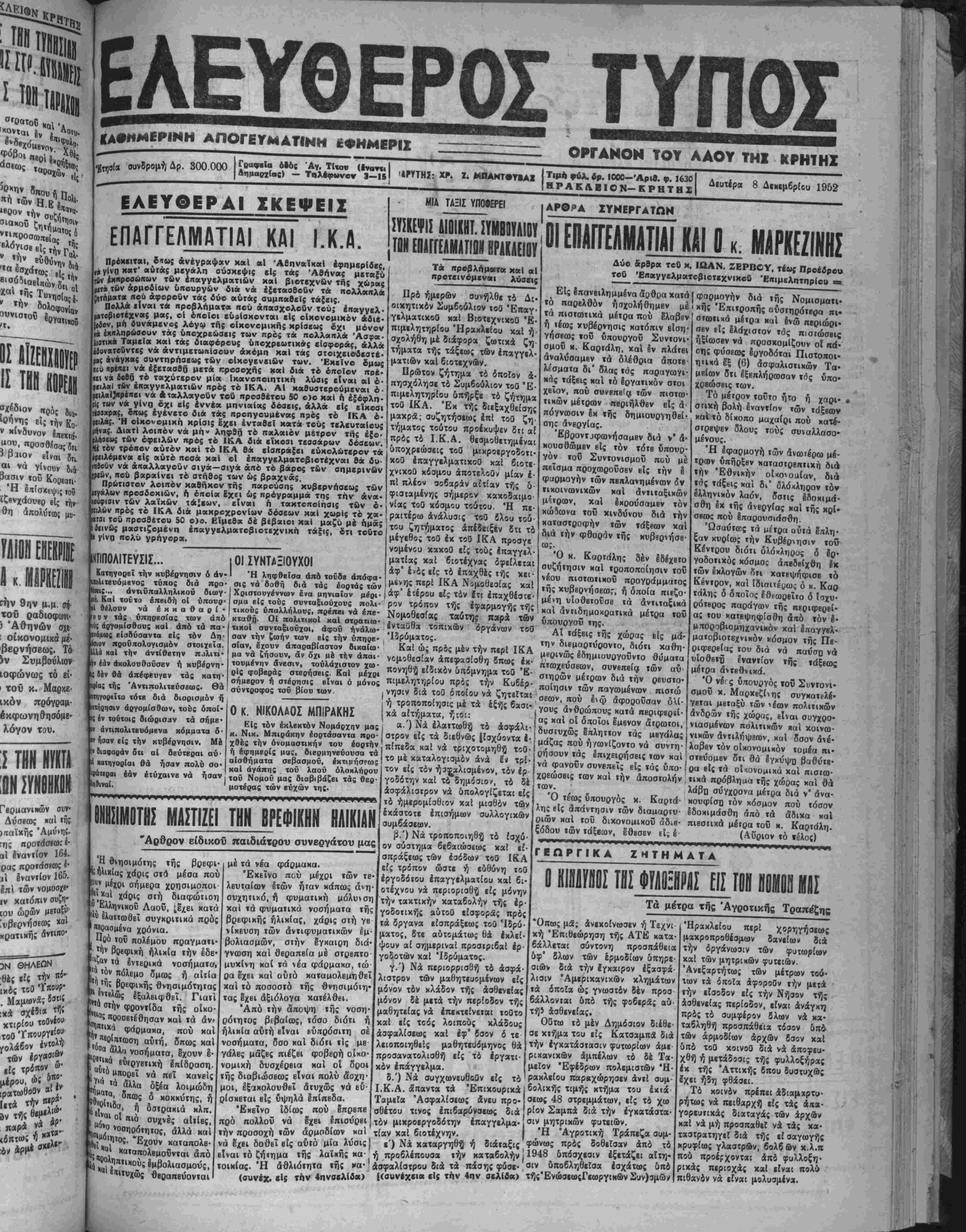 Δευτέρα 8 Δεκεμβριού 1952