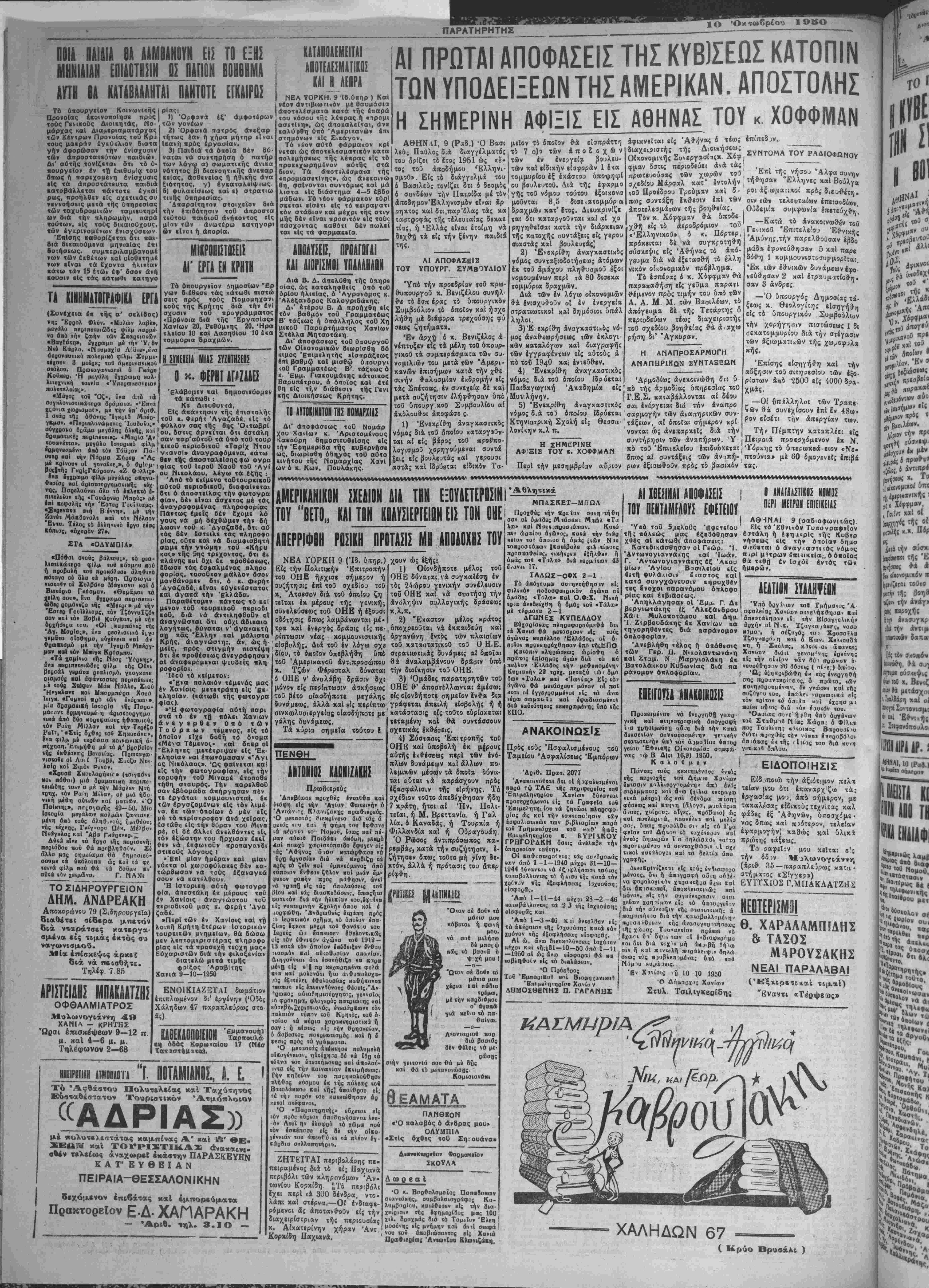 <ϊΐα είς την Κοιναινίαν {κιιμήσεωί. Γήν ϊηϊείιν «οο ηαΐ;η«ολονθΐ|θ8 ιλήθος κόομοα ·κ τή; πόλεως «οί (θλάΝΜθυ καί «ής; ϋπαίθρου εί. «ήν αοαόν ιοο «αιειίθηααν αρ «ε«οΙ πιέφανοι, Ο «Παραΐηρηιής» Εδχκσι είς (όν παόε κύριον απυαημήσανΐα λβυ· όν Λενΐ ην ελοφοό «ό χώμα ποϋ «ό» Ιακέπσσε είς βε «ήν ο(κο< γένβιάν «ο« άϋβοίύ εί τα πλέον ίγ- ΖΗΤΕΙΤΑΙ ηεριβολάρη; πε¬ πειραμένος διά τδ εί; Οαχΐανά περιβόλι χών κληρονόμων Άν- χωνίου Κορχίδη ;Τό περιβόλι ίχει περί ι-ά 300 δένδρα, ντο· λάπι χαί στέρνα.—Ο* ένδιαφε- όμενοι άς άποτανθοΰν είς την διαχειρίσΐριαν τή; περιουσίας χ. Αικατερίνην χήραν Άντ. Ιορχβη Παχιανά. τοθ τΐταμένη καί θά συντάσσουν σχετικάς εκθέσει;. 4) Σύστασις Έπΐτροπής ΟΗΕ καί υποβολή εκ μ{ αυτής εκθέσεως περί των ένό- πλων δυνάμεων καί άλλων πό λεμικών μέσιον χά δποΐα δόν» ται αυται νά παράσχουν πρός εξασφάλισιν τής ειρήνη;, Τό σχέδιον τοθτο απεδέχθησαν ήδη 7 κράτη, ήτοι αί Ήν. Πολι¬ τειαι, ή Μ. Βρεττανία, ή Γαλ λία. 4 Καναδάς, ή Τουρχία ή Φιλλανδία κ αί ή Ούραγουάη Ό Ρώσος αντιπρόσωπος πα< , κατά την συζήτησιν, ε¬ δ ί μβ, η ζήη, ζήτησεν διτως τουτο μή γίνη δε¬ κτόν, άλλά ή πρότασις τού απερ ρίφθη. Ι™ Μ 4ϋϊΙΝΑΙΕΣ Ό«αν σέ Βοίν «ά μά«ισ μο« κόβε«οι ή φανή μοο νά οον μιλήσα) ίέ μποιφ πάς «ό βαστά Α ψ χή μου 1 —ο — "Οίον σέ δονν «ό μά«ια μου χίβΐα (αί πόαια «ρέμαι, μέ την καβοιόμου ο' αγαπώ γιά κ«Ινο τό πα· θαίνω, —ο— Λβονταοιοβ καο διά βααΐας Βέν θίλεις νά με· θϊήν γειΐονίά οοο Θά μέ 85ς καί θά τό μειανοιώοχις. Καμισιανάπι Θεαματα ΠΑΝΘΒΟΝ α'θ παλοβός ό άνδρας μου» ΟΛΥΜΠΙΛ «ΣτΙς δχθες τοθ Ση:ουάνα» Λιαννκΐερεϊον Φαομαβεϊον ΣΚΟΥΛΑ. ΔωρεαΙ Ο κ. Βαρθολομσϊος ΠαηαΒοκων σιανΐάκης, αυμβολαιογοάφος Κο- χαΐέθειεν είς την Βια- χεϊαιοιν «ής ίφημεοίίος μας 100 χιλ. Βοαχμά; ίιά τό Ταμείον Έλεη μοοννη; εί; μνήμην κσί ά»ιΙ αιβφά νού ιοί άποβιάοανΐα; εί; Χανιά Άνιανΐοα Κλωνιζάκη, Άθλητικά ΜΠΑΣΚΕΤ-ΜΠΩΛ Ποοχθέ; «ήν τίοαϊϊν συνη 'ΐήθη σαν αί όμιΒε; Μιάοιε. Μ,ιώλ «Τα λω» καί Μαο« ιποοο ίθηϋν. Κακο ηΐ' ώααΐοο αγώνος, καΐά την Λιάο ΜΒΙαν «ο3 ά.13100 ή ομάς 'ιών Νια τοπαοαιόΐΐΦν |ια«έβαλε φιλιΐίμοο; «^ασταθείας, νκήιυυ {ξήλθβν ή ομάς ιο« αΤαλα>» βιά (βυμίτω* 43