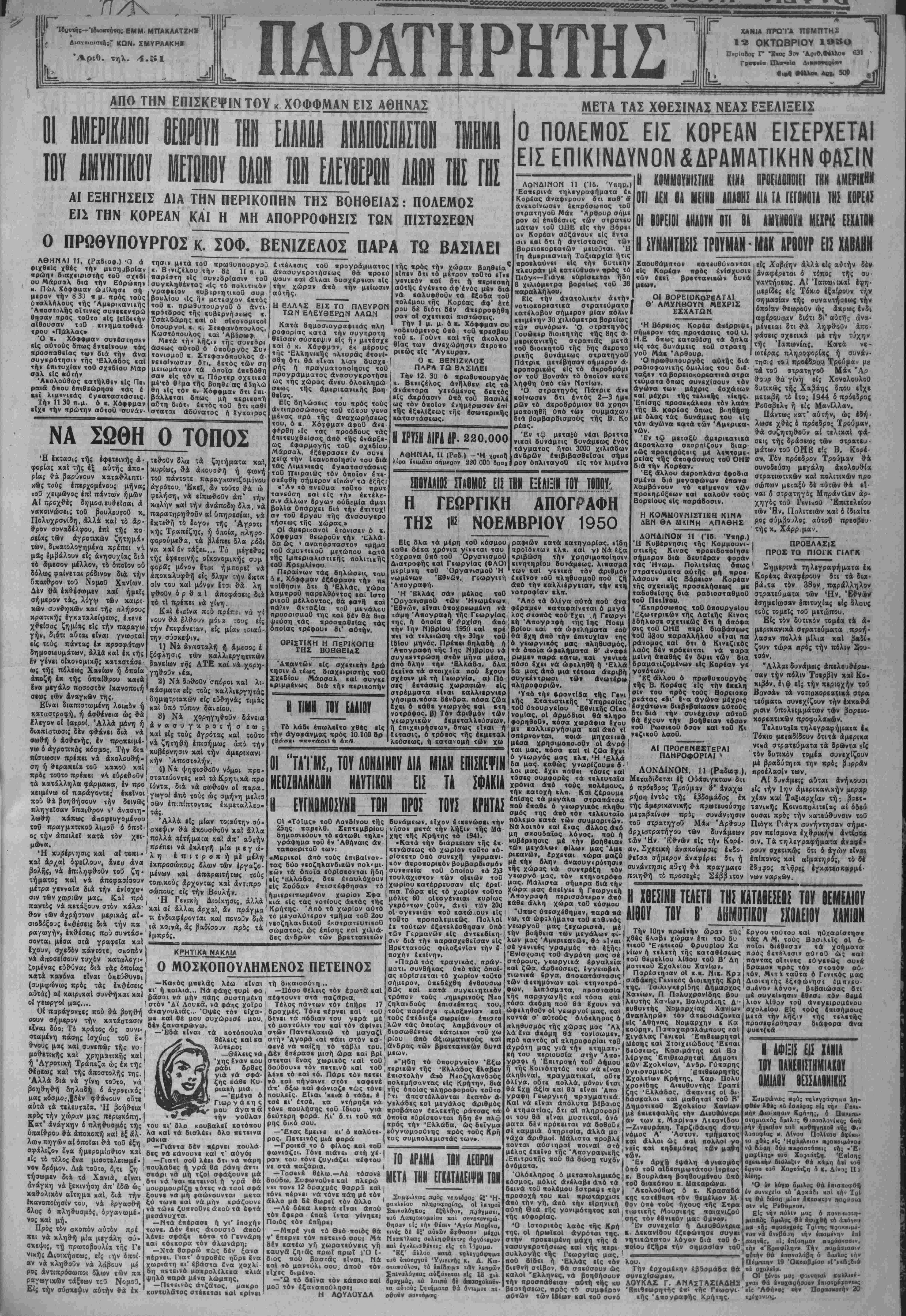 Χανιά τί} 10 'ΟκτωΒρΙου 1950.Τ (*Ρΐ* «·5— παραπλίυρως κατα-