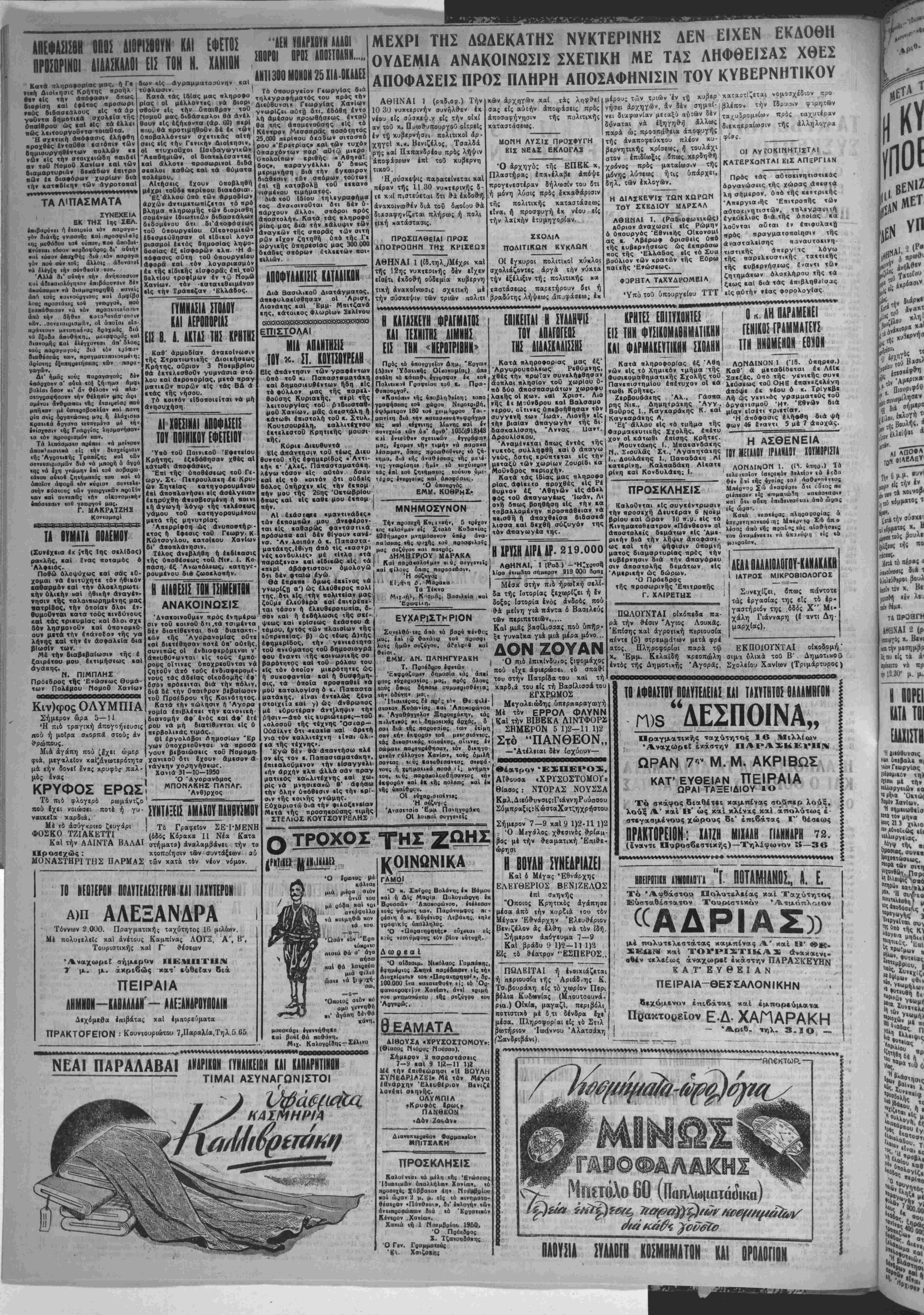 ΑΘΗΝΑΙ, 1 <ρ*δ.)-Τήν 13·* μ.μ. συνήλθον «Ις σύσκεψιν «ά! ■οινοβσυλευτικά μέλη τοϋ Λαϊ- κοΰ Κόμματος Ο τι ό την προεδρΐ αν ιοθ κ. Τσαλδάρη. Μετά «6 πέρας τής συσκέψι ήτις παρετάθη μέχρι «αί τής 3ης μ μ. 'έξοδόθη ανακοίνωσις είς «ήν οποίαν Αναφέρεται δτι οί βουλευταί τοθ ΛαϊκοΟ κόμμα τος Αναβέτουν έν λευκώ ΐΐς τ«ν κ. Τσαλδάρην την διαχεί- ρισι» τοθ πολιτικοθ ζητήμα- τος·. Ωσαύτως εαΙ*α«ά «ήν συ>κρο-