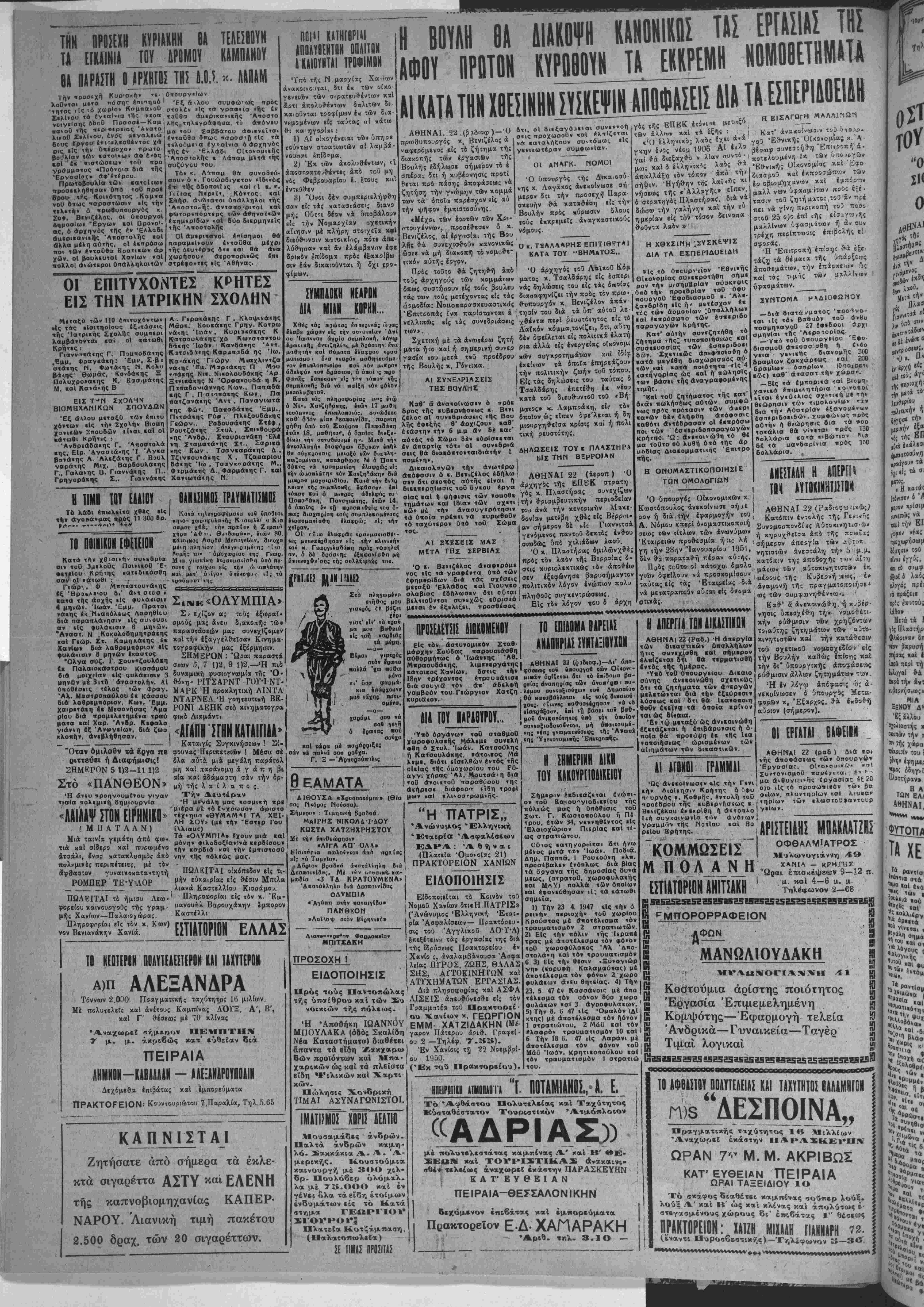 Ώραι έπιο<ίέφβων 9—12 π. μ. καί 4—6 μ. ιι. Τηλέφωνον 2—68 Ι» Κ Κ ΰ 18 Κ Κ Κ Β Κ ρ ΜΤΤΟΡΟΡΡΑΦΕΙΟΝ ΜΑΝΩΛ1ΟΥΑΑΚΗ λΙΥΑΙϊΝΟΓΙΑΝΝΗ Λ Κοστούμια αρίστης ποιότητος Έργασία Έπιμεμελημένη Κομψότης—Έφαρμογή τελεία 'Ανδρικά—Γυναικεία—Ταγέρ Τιμαί λογικαί ΗΒΕΙΡίϊΙΙΗ ΑΤΜΟΠΑΡΙΑ "[. ΠΟΤΑΜ1ΑΗΟ-., ■ ϋ. Ε. Τό Άφθάστου Πολυτελείας καί Ταχύτητος Εύσταθέστατον Τουριστικόν Ατμόπλοιον «Α ΔΡ Ι ΑΣ)) μέ πολυτελεστάτας καμπίνας Α' »αΙ Β' Ε ΣΕΩΝ καί ΤΟΥΡΙΣΤΙΚΑΣ άνακαινι- σθέν τελείως αναχωρεί έκαστην ΠΑΡΑΣΚΕΥΗΝ ι ΚΑΤ' ΕΥΘΕΙΑΝ ΠΕΙΡΑΙΑ-ΘΕΓΣΑΛΟΝΙΚΗΝ δεχόμενον επιβάτας καΐ έμπορεύματα Πρακτορείον Ε·Δ· ΧΑΠΑΡΑΚΗ — Αριθ. τ»)λ. 3.10 — ΤΟ ΑΦΒΑ110Υ ΠΟΑΥΙΕΑΕΙίί (II ΤΑΧΥΤΗΤΟΣ 8ΑΑΑΜΗΓ0Η π)δ Πραγματικής ταχύτητος 1β 1%1ιλλ£ων Αναχωρεί εκάστην ΗΑΡΛΣΚΕΥΗΝ ΩΡΑΝ 7^ Μ. Μ. ΑΚΡΙΒΩΣ ΚΑΤ' ΕΥΘΕΙΑΝ ΠΕΙΡΑΙΑ ΩΡΑΙ ΤΑΞΕΙΔΙΟΥ 1Ο Τό σκάφος διαθέτει καμπίνας σούπερ λούξ, λούξ Α' καί Β' ώς καί κλίνας κ** απολύτως έ- ατεγασμένους χώρους Βι' επιβάτας Γ' θέσεως ΠΡΑΚΤΟΡΕΙΟΝ: ΙΑΤΖΗ ΜΙΧΑΑΗ ΓΙΑΗΝΑΡΗ η. (έναντι Πυροσβεστικής)-Χηλ4φωνον 8-36