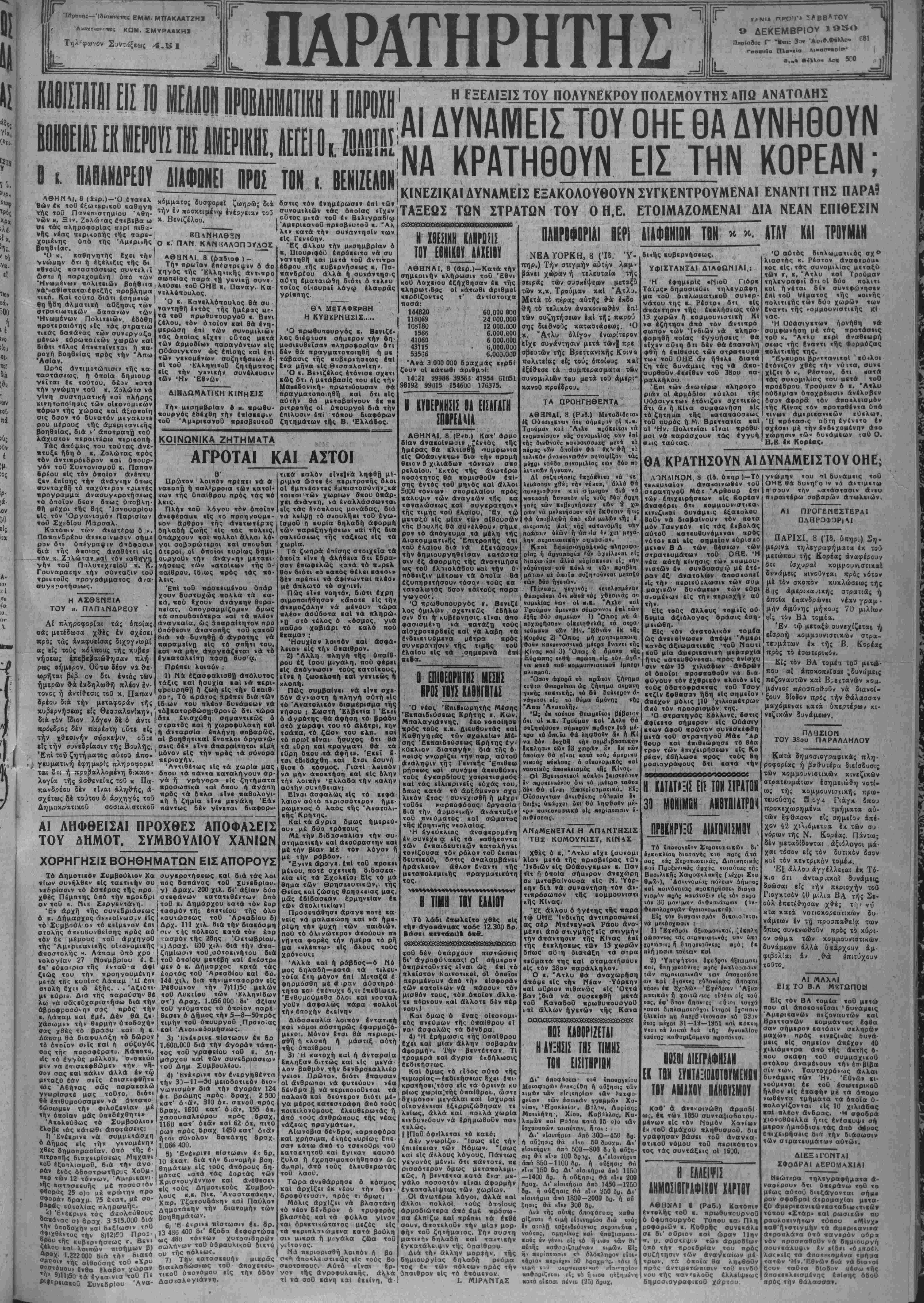 Β ι. ΠΑΠΑΝΔΡΕΟΥ ΑΙΑΦΟΝΕΙ ΠΡΟΣ ΤΟΝ ι. ΒΕΝΙΖΕΛΟΝ