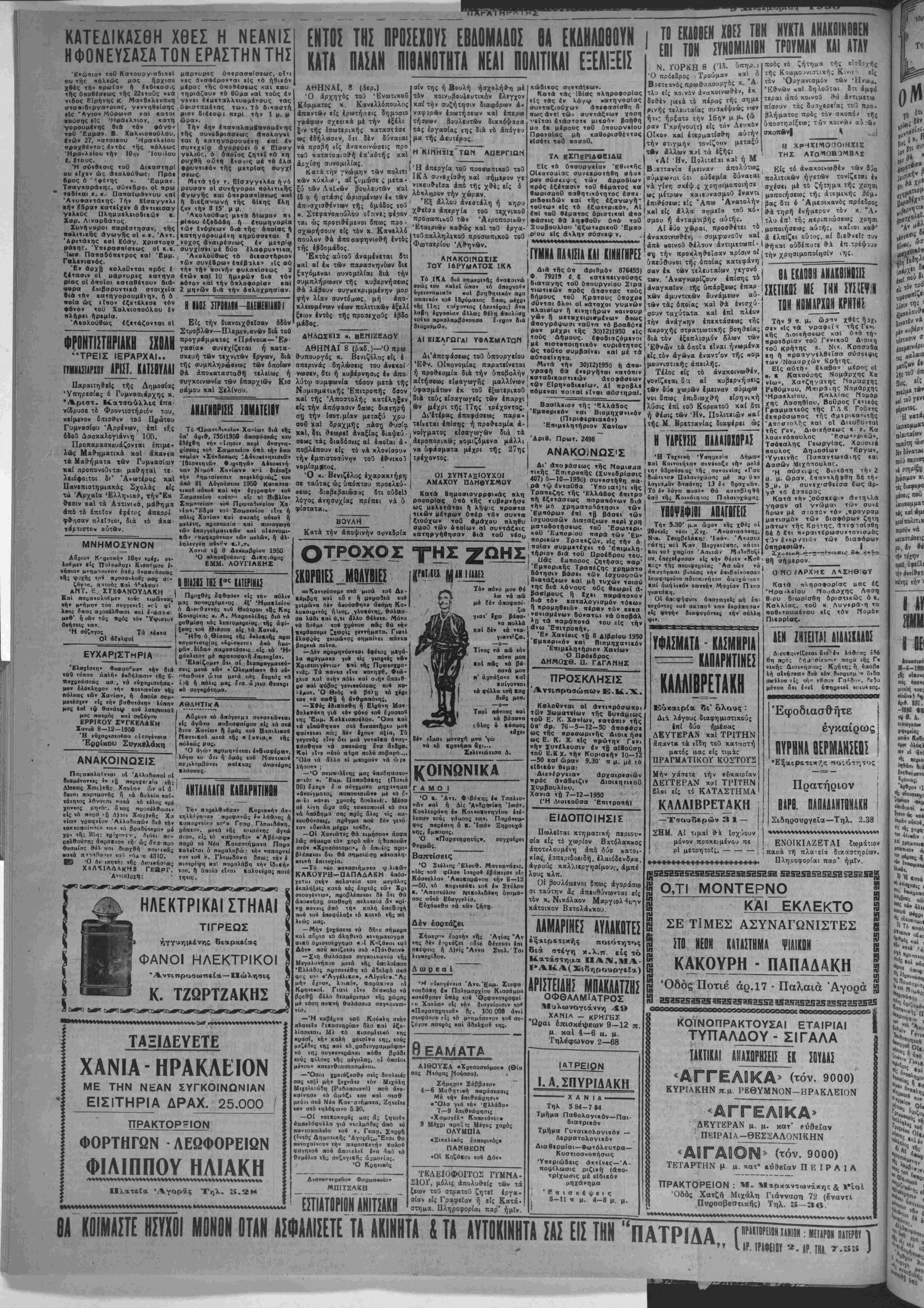 ■αιόθδθβν ύτιβο «οβ Όο<ρανο«ο.οφβ( π) Χανίων είς «ήν θ'πγβίοιαιν ιο* αΠαοαΐηοηιοΰ» 8γ. 100 000 άνιί σΐΒφάνοα (Ι- «6 μνημόσυνον «οβ ου· ζύγοο παιαός «αί άοβλφοά ιης. θΕΑΐνΐΑΤΑ ΔΙΘΟΥΣΑ «Χραοοσιόμοΐ» (θία αος Μιόοας Νονσσα). · Σήμεαον Σάββατον 4—6 Μαθητιιιή ηαράαιαοι; Μέ «ήν ΙηιθΒΟοησιν «Όλα γιά «ήν ΈλλάΒα» 7—9 ίπιθβώοησις «Χαμογέλ'· Καπετάνιο» 9 Μίχοι ποαιϊκ Μέγα; χοοίις ΟΛΥΜΠΙΑ «ΣικβλΐΜΟς έσπβοινός· ΠΑΓίθΕΟΝ «ΟΙ ΚοζάΒοι «οβ Δόν» ΤΕΛΕΙΟΦΟΙΤΟΣ ΓΥΜΜΑ. Σ1ΟΥ, μόλις άπολυθείς των τα ξεων τοΰ στρατοϋ ζητεί εργα¬ σίαν είς Γραφείον ή είς Κατά· στημα. Πληροφορίαι παρ' ημίν. ΠΡΟΣΚΛΗΣΙΣ 'Αντιπροσώπων Ε,Κ.Χ. Καλοβνται οί άντιπρόσωηοι των ΣωματκΙων τής δυνάμεως τοθ Ε. Κ. Χανίων, κατόπιν τής ΰπ' άβ. 76-5—12—50 άποφβσε ως τής αροσωρινής Διοικ ήβ· ως Ε. Κ. Χ. είς πρώτην Γενι κήν Συνέλευσιν έν τ| αΐθούστ] τοθ Ε.Κ Χ. την Κυριακήν 10—12 —50 καί ώραν 9.30' η μ. μέ τό εΐδικόν θίμα: Διενέργειαν αρχαιρεσιών πρός άνάδβιζιν ΔιοιιητκοΟ ΣυμβουλΙου, Χανιά τΒ 7-12-1950 (Ή Λιοικοθσα Έπιτροηή) ΕΙΔΟΠΟΙΗΣΙΣ ΠωλεΙται κτηματική περιου- σία ε!; τό χωρίον Βατόλακκος αποτελούμενη άπο δύο χατοι- κίας( Ιαπεριδοειδή, ελαιόδενδρα, άγρούς καλλιεργηαίμοιοί, άμπέ λους κλπ. (,)ί βουλόμενοι ίπως ά-ι/οράαω σι ταύτην &ς άπευθύνωνται είς τον κ. Νικόλαον Μαρ κάτοικον Βατολάχκου. ΛΑΜΑΡΙΝΕΣ ΙΥΛΑΚΟΤΕΣ έξαιρετικής ποιότητος διά στέγη κ.λ.π είς τό Κατάστημα ΠΑΝ.Λ1Α- ΡΑΚΑ(Σιδηρουργεία) ΑΡΑίΤΕίΛΗϊ ΜΠΑΚΛΑΤΖΗ5 ΟΦΘΑΛΜΙΑΤΡΟΣ Μυλωνογιάννη 49 ΧΑΝΙΑ - ΚΡΗΤΗΣ τΩραι έπισκβψβων 9—12 π. μ. καί 4—6 α. μ. Τηλέφωνον 2—68 ΙΑΤΡΕΙΟΝ 1ΑΣΠΥΡΙΔΑΚΗ ΧΑΝΙΑ 5 84-7 «4 Τηλ Τμήμα Παθολογικον—Παι¬ διατρικον Τμήμα Γυναικολονιΐόν — Δερματολογικον ΔιαθερμΙαι—Φωτόλουτρα— Κυστιοσχοηήσεις Ύηκριώδεις ά«τϊνκς—Ά- ηοψΐλωσις ριζι«ή (άπο- τρίχωσις μέ «Ιδικόν μηχάνημα 'Επισκέψϊΐς 8—11 π μ. 4—8 μ. μ. Την 5.30' μ.ι» ώααν «ής χθές οί 2θβ«8ΐ; νεαι ,Ζιχ. ΆνααιασΐΗης, Νικ. Τ·βοβ8λ(ϊκη; Ίοά». Άνααΐα «οί Καβν Β3αγι;!ίκη:, κάΐοι χ<οο!οιι Άσιιιϋν IV] ιλβΓΐθζ· έπβχεΐβαααν είς «ήν θβοΐν «Κο3 ι κος» τή; πβοιφβοβίας Άσ «ών νά | άπιγπγα>σι βιαίαις «ήν ίηιβαίνποοαν