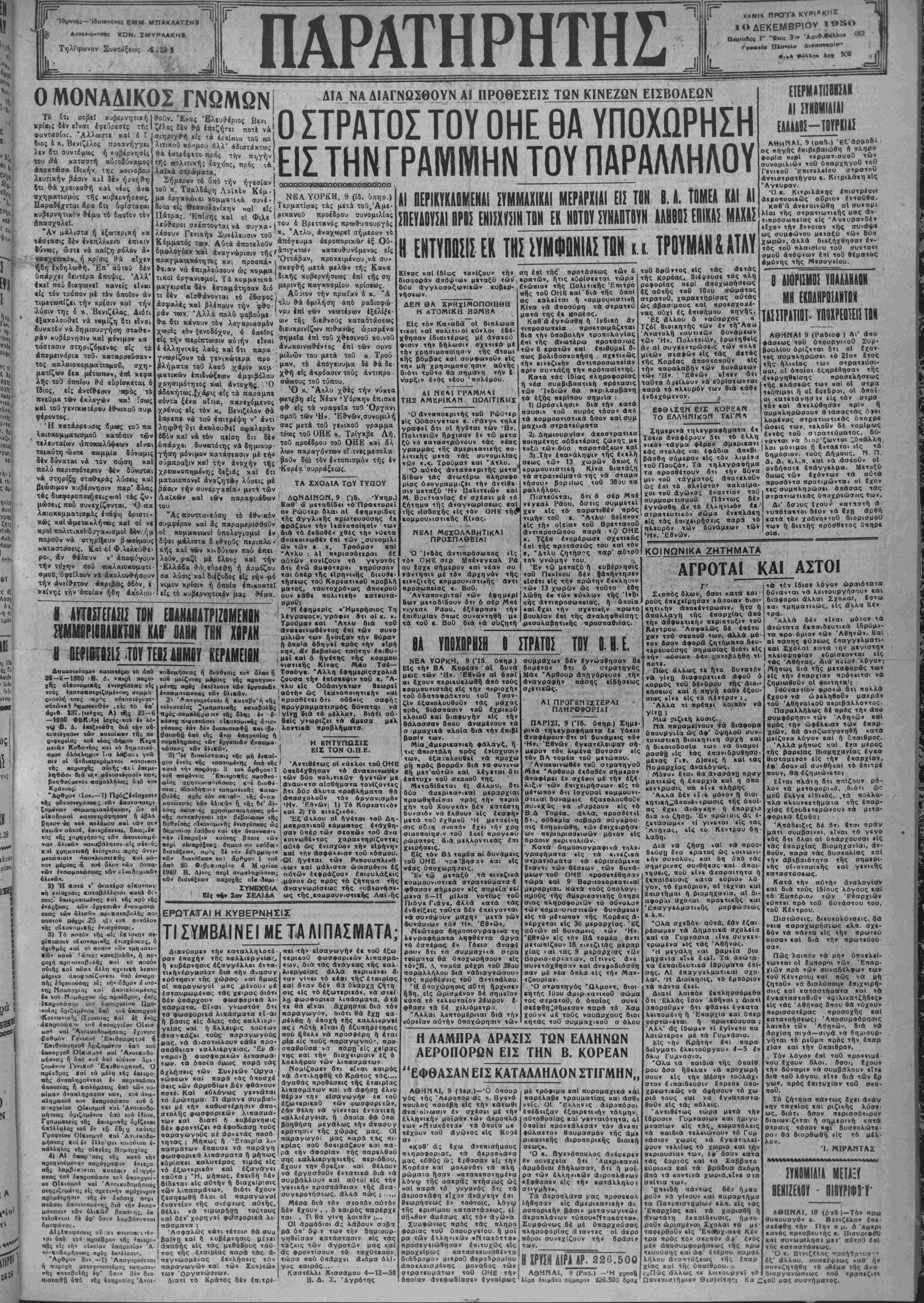 ίξαίοΒ ι< ό μιαθός «ών Κοινοιΐκών Βιοαβκαλαιν ΐοή |>η<ός ΔΒί ί ε. κκαβληθη αύιοϊ; την 20 τοε χονιος μηνός. ■■ΘεΙς, έφονβύθη ♦ύλας. Η ΑΠεΡΠΑ-ΤθΥ ΙΚΑ Συνεχισθή (αί σήμερον ή ά- «εργΐα τοθ έπιστημονικοΰ προ οωπΐΜθΟ τοθ ΙΚ Α επεκταθεΐσα είς δλα τα ϋποκατοιστήματα τής χώρας παρά τάς απειλάς ι τοθ ΔιοικητΐϊθΟ ΣυμβουλΙου τοθ Ίδρύματος περι άπολύσι ως δλω» των Ιατρών καί διορι σμοθ νέων. ι Η ΕΞΛΓΩΓΗ ΣΤΑΦΙΔΟΣ Κατ' ανακοίνωσιν Ικ τοΰ ΰπουργβίου Έ^νικής Οικονομ!· άς, συνεφωνήθη ή εξ*γωνή~ είς Αγγλίαν 4 χιλ. τόννων αουλτανίνας ηρος 110 €ψίμπ» χατά τόννον. ΤΑ ΚΛΤΟΧΙΚΛ ΔΙΛΤΑΓΜΛΤΑ Εί; «ήν εφημερίδα τή βερνήσεως εδημοσιεύθη τό διά ταγμχ διά τού δποίου παρατεί· νεται μέχοι τέλους Δεκεμβριού 4 ϊ. ή Ισχύ; των επί έκδο8·έντων διαταγ/μάτων. λ'ρβς κι>