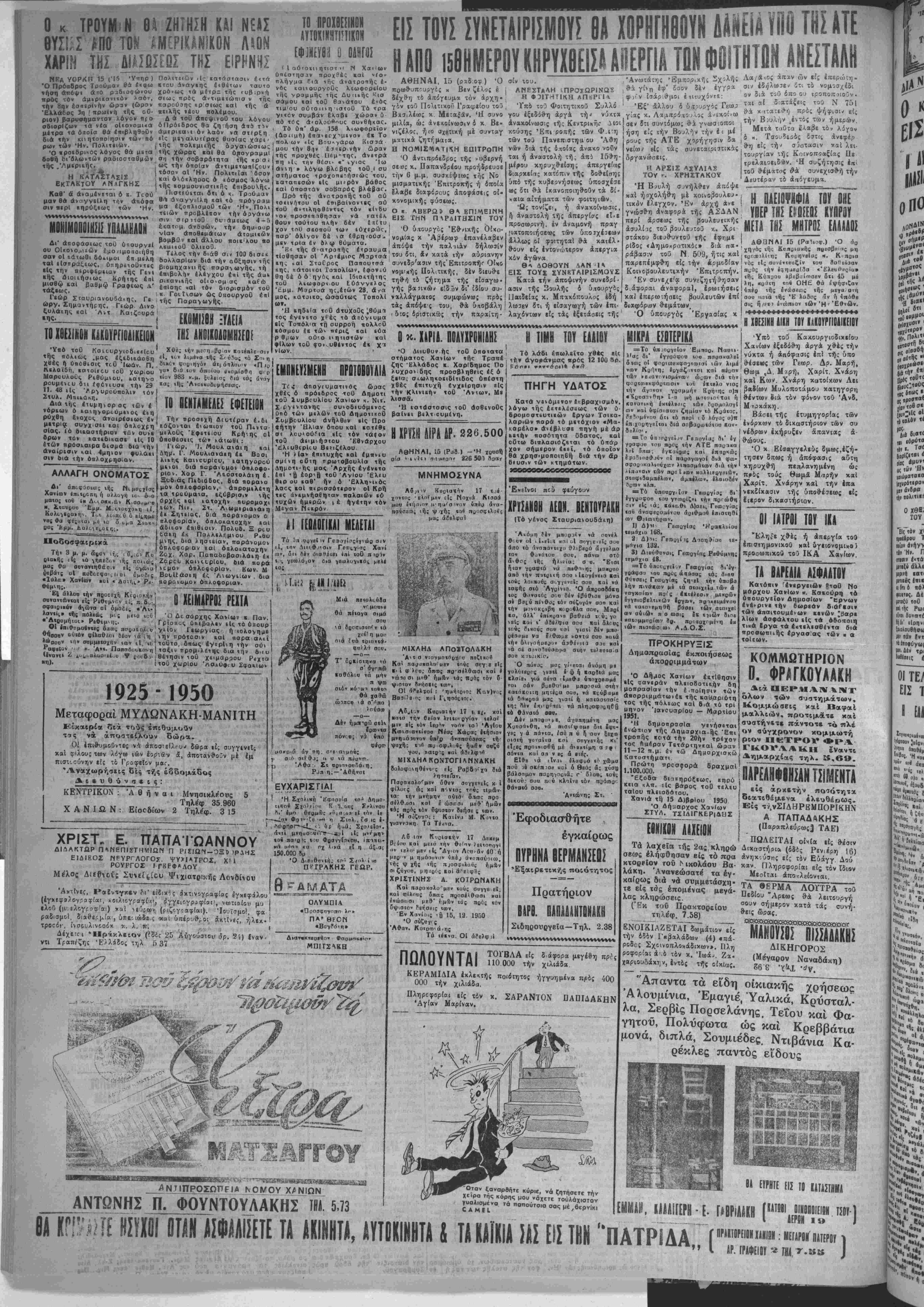 Καί πΐαπΜολο'μβν <αύς ουγγβ ε!, καί (ρΐληνς όΐκις ποοοέλθιοθι καΐ ίνώθβ/θι μεθ' ι')μ<ίν «ύς ηρθ; «Ον ύψιοιον ?* β *; α η ι ς ιων, •Εν Χανίοις -8 15, 12. 1950 Ό σΰζαγι ς Αθαν, Κοΐοαχάης Τα ιβκνα ΟΙ ά?8>φ>ί