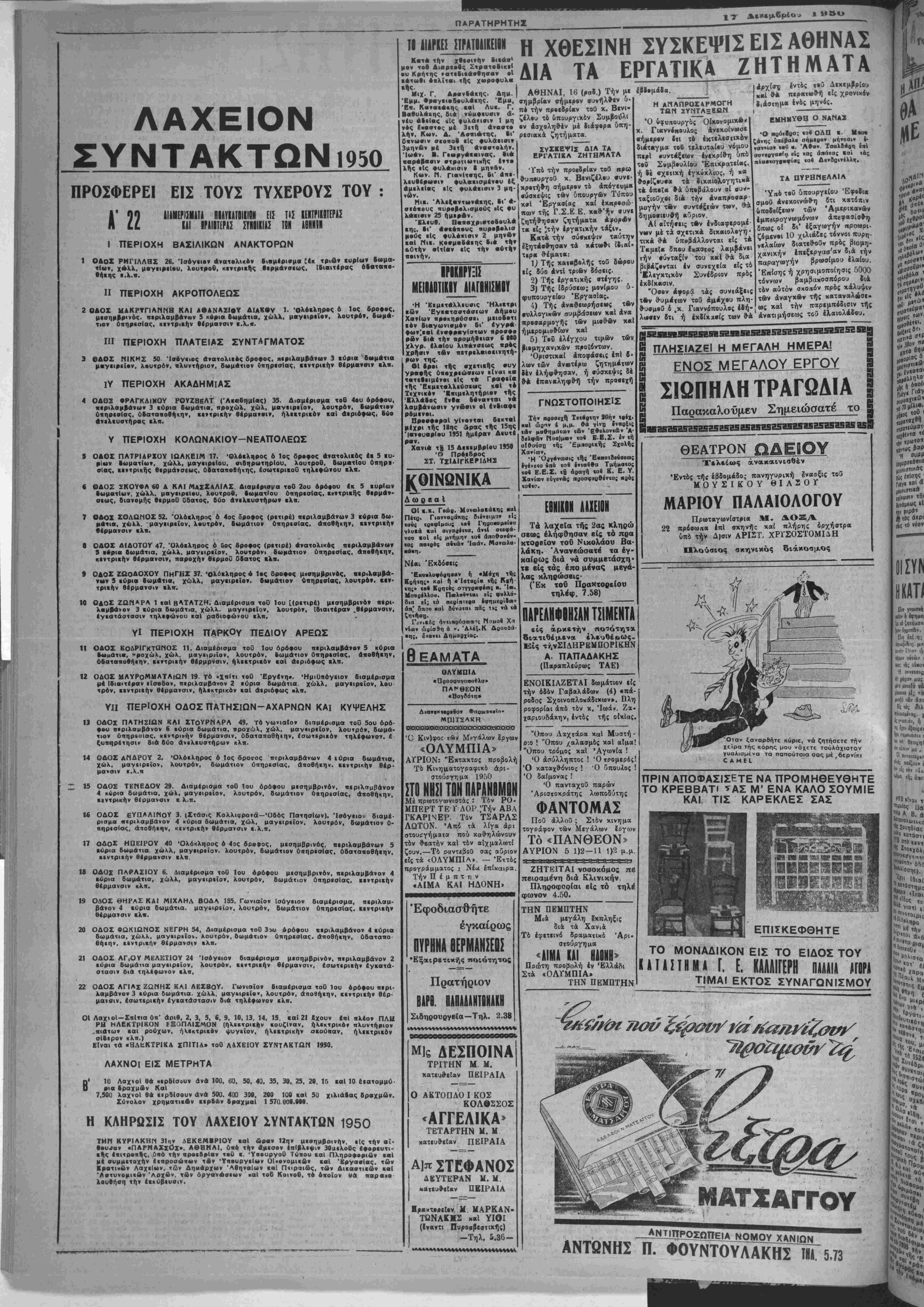Τή* (ΐβοοβχή Τειοοΐην 3(1ή* <|έχ. ΜβΙ ώαην 4 μ,μ. Θά γίνυ ίνβοξις ιΛν μβθημικιον (άν Έθβλανΐ&ν 'Α· οελβϊάν Νβο)μειν «ο« Κ.Ε,Σ. ·ν τή αΐθούοΐ] της Έμποοΐκής Σχολής Χανίων, Ή Ό^γονωβι: τής 'ΕιιποιΒεναεΐΒ; ίγίϊΒϊθ «πό (Π« ί*«ο6#α Τμήμαιος <β« Ε.Ε.Σ. «ά άοοογή «οί Κ. Ε. Υ Ζανΐον ευγενεί; πβοσιρΒοθένΐος πβθ Ό ύφυΐτουργδς Οικονομικωσ χ. Γικννέκουλος ανεκοίνωσε ήμερβν (τι τό εκτελεστικόν διείτβγμ* τοβ τΐλιυταίβυ νόμου πε·ι «υντίξεων ενεκρίθη υπο τοθ ΣνμβουλιΌυ Έπικρατείας ή οί «χετική έγκύκλιος, ή κα >ο·£ζβυ·« τα <ικαΐολογητικ« τέ. δποΐκ »ά ύποβάλουν οί συν· ταξιοθχοι δι« την άναπροααρ μογήν τ#ν αυντόξΐών τ»ν, θ·£ δημοοιευθί) «όριον. Αί «Στήσεις τ#ν ενδιαφερομέ¬ νων μέ τα σχετιΧΛ δικαιολογη ■ τικα θ·« ύπββαλλονται είς τ« Τ«μεΙ« ϊπου Ικαστος λαμ|5άνε την ούνταξίν τού χειΐ θ·« δια βφάζονται έν συνεχεία είς τ Έλεγχτιχον Συνέδριον προ έκδίχεισιν. Όσον άφορά τας συνΐάξειι τδΐν θ·υμ«των τού άμάχου πλη θ·υβμ·0 έ ,κ. Γιαννόπουλος έίή λυε·εν δτι ή ΐκδίκχοίς των θ·ά Δωρεαι ι ΟΙ Κ.Κ. Γ.ώβ. Μίνβλακάκης καΐ Πέτρ. Γιανναβάκης βιινΒΐμο» ε(; ιβνς ταβφίμους ι·ί Ι'ηοο»ομ·(·α νλυκά καί αιγαβέΐτα, άν«1 α«β»ο· νβο καί είς μνήμην »οϊ άπαθανίν- «βς πβ«β*ς α·«ώ» Ιωάν. Μανωλα· ■ά«η. ________ Νέαι Έχδοβεις 'ΕκβΜλοσόβηααν ή αλΐβχη τής Κθήιης» καί ή α'Ιβτβοίβ «ή; Κ|ή- της» ιβϊ Βοη<·ς σΐγγββφέαις Μ. Ί·. πΐοοοέλλοα. Π·λ·ί«»ι βϊ; «ολλα- 8ια βΐ; (ά πεςΐπΐεία ΙφημΕοίϊ«« Α»' όπαυ «αί ούναιοι πάς τις νά (β ζη«ήου. Γ<ινι«6ς ^νιιηοόοαιη^ς Ν ο μοί Χπ νΐαιν ώβΐαθη ό ·. Άλέξ.Κ Δοοοθα- «ής. ενανΐι Δημαοχΐας· ΕΒΝ1ΚΙΝ ΑΑΧΕΙΟΗ Τά λαχεΐα τής 2ος κληρώ σεως ελήφθησαν βίς τό πρα κτορείον τού Νικόλαον Βα- λάκη. Άνανβώσατέ τα έγ καίρως διά νά συμμετάσχη τε βίς τάς έπο μένας μεγά¬ λας κληρώσβις- (Έκ τοΰ Πρακτορείον τηλέφ. 7.58) Θ ΕΑΜΑΤΑ ΟΛΥΜΠΙΑ ■ Ποοσφυνππα«λα>