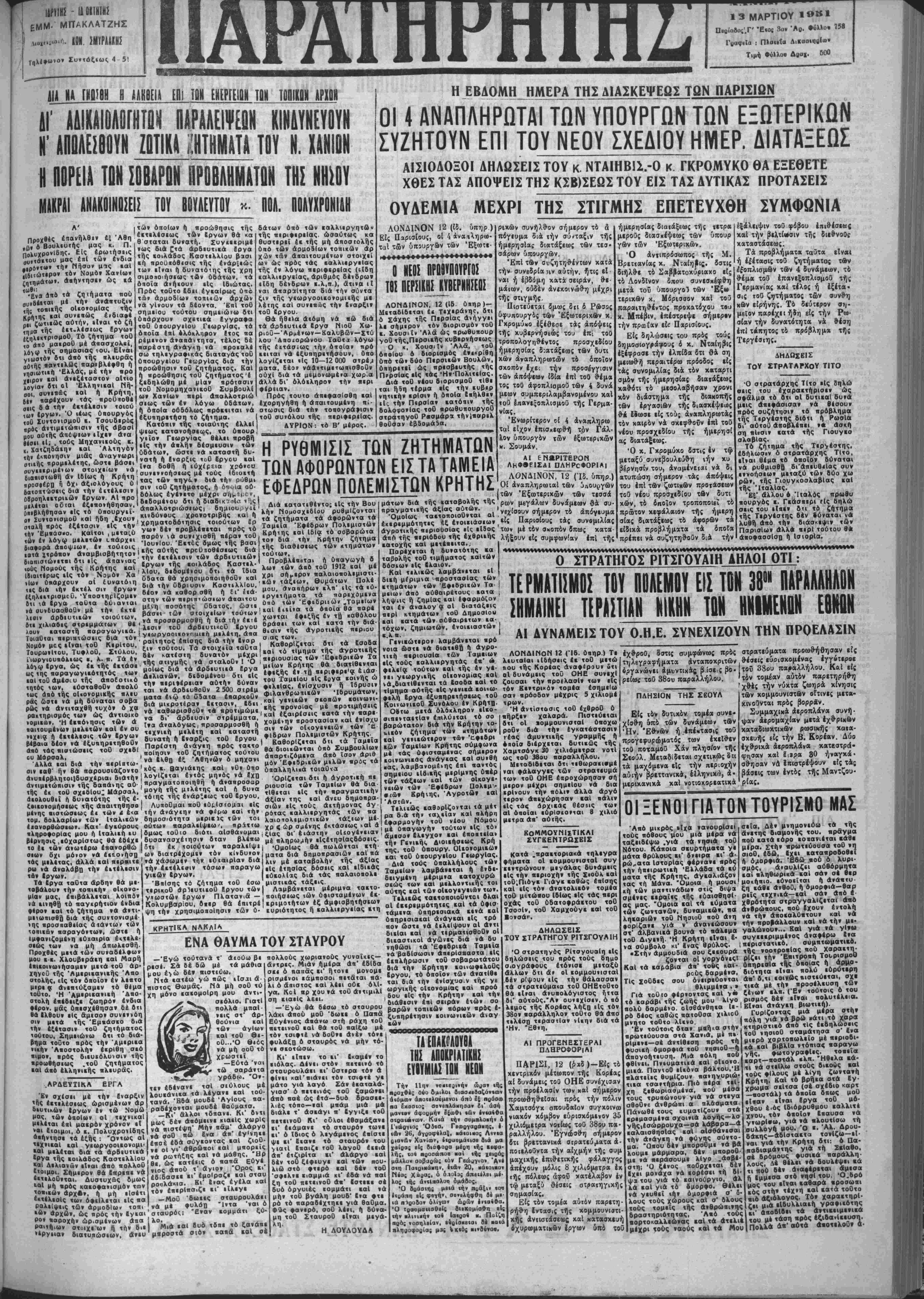 Τηλ1βω*ο» Συ»τάξ.ω<. 4 5! 13ΜΑΡΤΙ0Υ Ι®»1 Πβοίοδος'.Γ' Έ«ος 3αν Άο. ·»λλο· 15» : ΠΧομΙο ΔιΐαοιυοΙο»* Τιμή Φύλλϋο Δβαχ- 60° ΑΙΑ Ι» ΤΙΟ1ΟΙΙ Η «ΑΗΙΕΙΑ ΕΠΙ ΤΡ» ΕΙΙΕΡΤΕΙίΙ ΤΟ» ΤΟΐΊΐΊΙΙ ΑΡ1ΟΙ ΔΙ' Α&ΙΚΑΙΒΛΟΓΗΤΩΙΙ ΠΛΡΑΛΕΙΨΕΩΝ ΚΙΝΔΥΝΕΥΟΥΝ ί ΑΠΟΑΕ.ΒΟΥΝ ΖΟΤΙΚΑ ΗΤΗΜΑΤΑ ΤΟΥ Ν. ΧΑΝΙΒΝ Η ΙΊΟΡίΙλ ΤΩΝ ΣΟΒΑΡΟΝ ΠΡΟΒΛΗΜΑΤΩΝ ΤΗΣ ΝΗΣΟΥ ΜΙΚΡΑΙ ΑΝΑΚΟΙΝΟΣΕΙΣ ΤΟΥ ΒΟΥΛΕΥΤΟΥ >··· ΠΟΛ. ΗΟλΥΧΡΟΝΙΑΗ