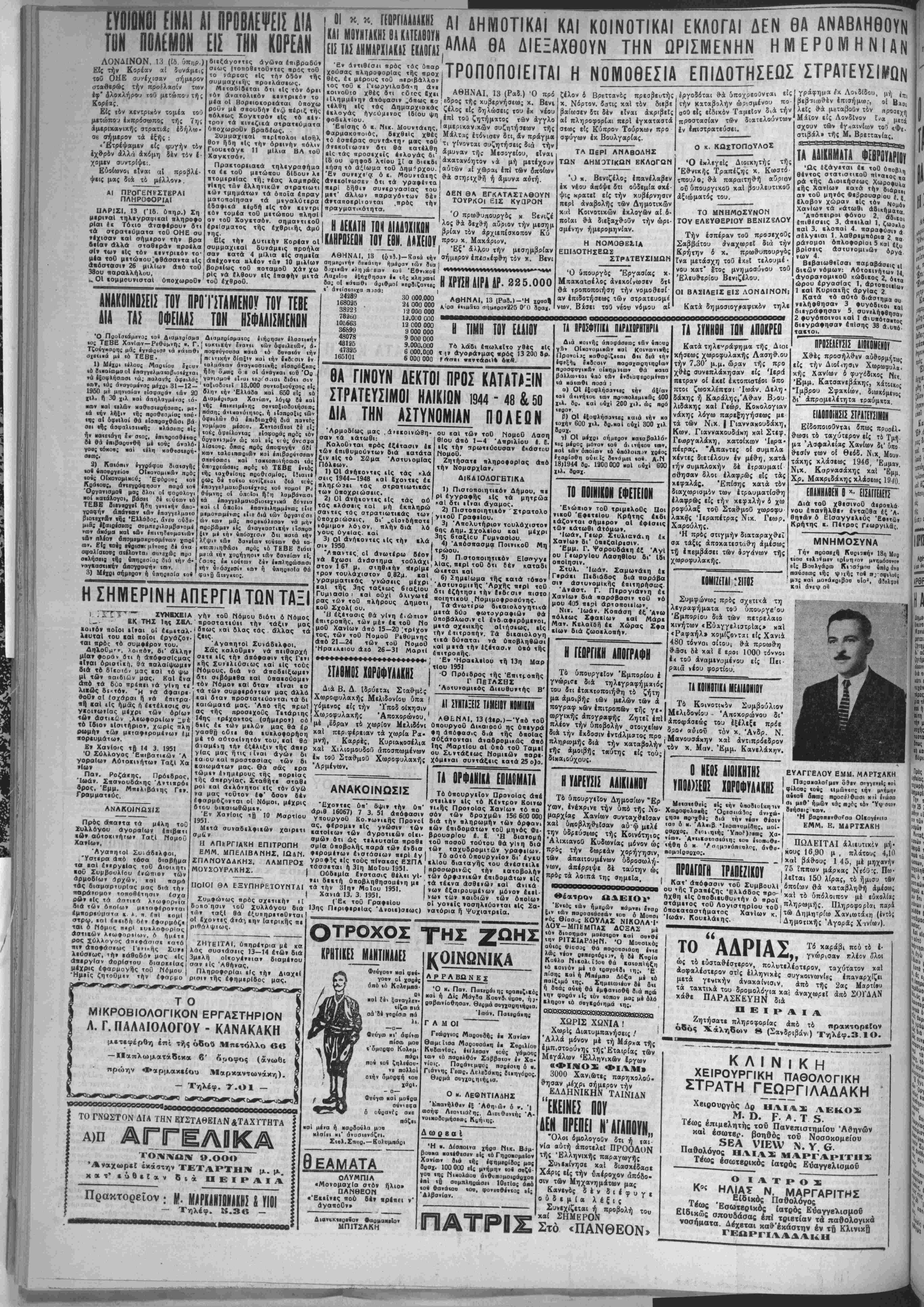 του, λόγω τοθ οισταγμοθ μ«< ' ΑΘΗΝΑΙ, 13 (Ραδ) Ό πρω θϋπουργός κ. Βενιζίλος άναφε ρόμΐνος είς τας δημοσιευθείσα; πληροφορίας περί ϋααναχωρή· οεώ; τού είς τ4 ζήτημα των δή μοτικών καΐ κοινοτικόν εκλο¬ γήν κα1. ίτι πρό*ιιτ«ι ν υπο δειχθ·ή ότι" αύτοΰ ίδιος ύποψή φιος δήμαρχος ε'ς Ά9·ήνα,', ε¬ δήλωσεν δτι ή κυβέρνησις εμ¬ μένει είς τάς άντιλήψεις της δπως μή τεβή πολιτικόν ζήτη μα κατά τάς δημοτικάς ίλ η χ-χΐ έν προκειμένω κυρερνηιΐκής ταβολώ' είς την δνωτάτην ήγε· .τής Μάλτας κατα την όποιαν ταΛΠχής. | οίαν τοϋ Π. Νχυτικοϋ χαΐ τής' θα συζητηθ·βθν προβλήματα -Πέραν τούτων δμως, έξηκο · Β. Άεροπορίϊς, δηλώσας δχΐ δ σχετικα μέ την άμυναν %%1 την λού9·ι?πΐν, δ κ. π,ίωθ-υπουργός, άρχιστράτηγος κ. Οαπαγος είς πά; "Ελλην είναι έλεύθχρος ουδεμίαν «ϊσήγηοιν προέβη άχι καί έ'χει τό δικαίωμα έ*ν νομί τ-κως επί τοθ βέματος τούτου. ζή δτι είναι ίκανδς να κατέλ Ι ΛΙ.ΓΙ{Ιί«,ΐΓ "τη* μ θΐ, είς τάς εκλογάς καί ναζη. Η ΔΙΑΣΚΕΨΙΣ ΤΗΣ Μ χήν ψήφον τοΰ λαοθ». Κατα δημοσιογραφικόν πλη ροφορίας ό βουλβυτής το3 Λχ Η ΗΓΕΣΐλ ΤΟΥ ΝΑΥΤΙΚΟΥ ΚΑΙ ΤΗΣ ΑΕΡΟΠΟΡΙΑΣ φ βή ϊκοθ χόμματος κ. Ροδόπουλος προτίθεται κατά την έπανάλη· Ό πρό^δρος τής κυ£ερνήσε ' ψιν των εργασιών τής Βουλής ως κ. Βενιζέλος ίί; σημερινήν νά ζητήση άπδ την κυβέρνησιν λί 5' λί έ έ έ Κατα συνέπειαν, προσέτι- συνομιλίαν τού μετα των δημο ' πληροφορίας έν σχέσει μέ την σεν δ κ. Βενιζέλος, δίνπρόχει· σιογράφων έχαραχΐήϊΐσεν ώς στάσιν της κατόπιν τής μή προ ται νά σημειωθή" οϋδεαία ύπα προώρους ταςάναγραφβίσας πλη θελήσεως τή ί Ελλάδος είς την διάσκεψιν οΔΟΠΟΙΙΑΕ Διιστυχ&ς συνεχΐζεται ή έκ λόγων άδυναμΐα νόρηνήσι'ως ηισΐώσεων διά την βιραπιΐαν των έπιτακτικων ά- > αγ ιω ν «ής όδοποΓιας μας.