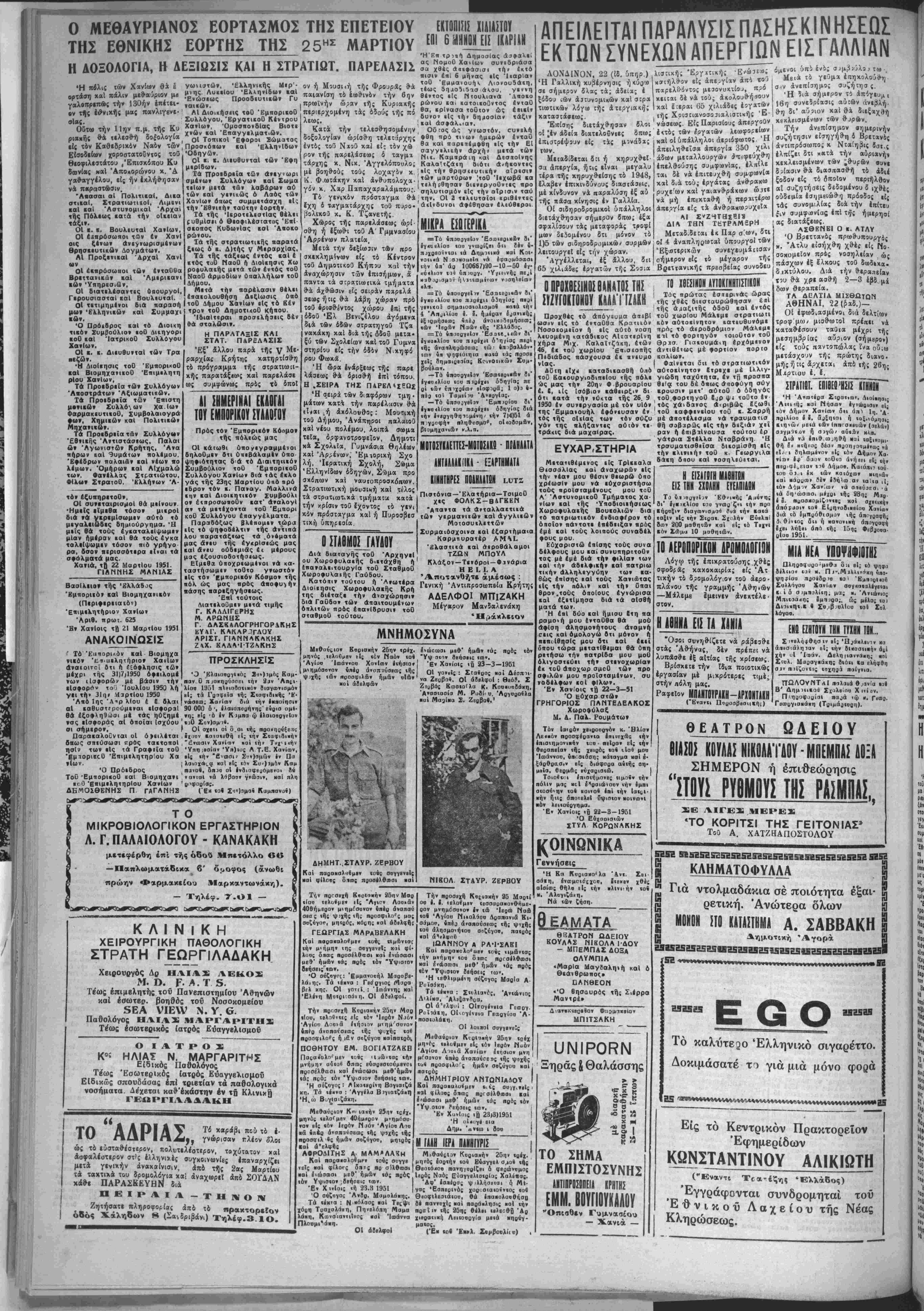 Ή πΙ·< γι εισ Δημ. 'ανιω ι 9ου Μ ίΑΑΗ ΙίΡΑ ΠΑΗΗΓΪΡΙ^ | Μοθαθςΐαν Κυριακήν 25η» (ρέχ. μηνός έορ(ήν «οό ΕΟαγγβλ σμο» (ής Θβο«ό/ΐοο πανηγυοΐζβι ό φβοώνομος Ιβοό; Ναό; Εϋαγγβλισιρία; Χαλβπας. Άφ' ίαιίοος ψ ιλλήσβιαι δ. Μί· γσς Έοηβοινός χοο,ι αιαιοίνιος ιο« θβοφιλευιάίου, θά ιηαπολοοθιίσιι Β) παννυχΐς Ηαί ηαράιληαι; «οί (ήν ποοϊιν τής 25η: Θέλει ιβίεεθβ 'Δρ χιΐραιιιιή Λβκοαογία μεΐά Μηρύγ· μα«ος. (Έν (οί Έ··»λ. Συμβουλαί)) , Ή Κα Κυοια«η:λα Άντ. οάιη, ένοομοισ(χον, ίΐβΚΒν αΐοίως θήλα ε Ι; «ήν «λΐνιήν «οί Μ. Άλογιζάίη, Νά «ών ζήαη. Θεαματα ΘΒΑΤΡθΝ ΩΔΕΙΟΥ ΚΟΥΛΑ2 ΜΙΚΟΛΑ ΙΔΟΥ - ΜΠΕΜΠΔΣ ΔΟΞα ΟΛΥΜΠΙΑ «Μαρία Μαγβαληιή καί 6 θεάνθρωποζ» ΟΛΝΘΕΟΓι «Ό θησαυρδς τής Σ,ερρο Μαντρέ» ΜΠ1ΤΣΑΚΗ υΝΙΡΟΡΝ Ξηράς & Θαλάσσης ΤΟ ΣΗΜΑ ΕΜΠΙΣΤΟΣΥΝΗΣ ΑΗΤΙΠΡΟ-.ΠΕΙΑ ΚΡΗΤΗΣ ΕΜΜ. ΒΟΥΓΙΟΥΚΑΑΟΥ "Οπισθεν Γυμνασίου — Χανιά — Ν ΕΙΣΑΓΙΙίΗ ΜΑ8ΗΤ9Ν ΕΙΣ ΤΗΝ ΗΟΑΗΝ ΕΥΕΑΠΙΔΙ1Ν Τι) ύι.ο^γβϊ.ιν Έθ»»·ής Βι' έγκ ικλίοο «οο γνωο ζ" <ή* "0° κήρυξιν βιαγωνισμού Ρια «ήν κα«α «αξιν ίΐς «ήν Σΐβα·, Σχολήν Εΰβλπ' Βίον 200 μαθητόν καί είς «ό Τεχνΐ ■όν ΣΑμα 10 μαθη«ών, ΙΩ ΑΕΡΟΠΟΡ1ΚΟΝ ΔΡΟΜΟΛΟΓΙΟΝ Λόγω τής επικρατούσης χθ-ές σφοδράς καχοκαιρία; είς Άτ τικήν τί δρομολόγ.ον τοθ άερο· πλάνου τής γραμμής 'Αθη.ων —Μάλεμε έμεινεν άνεχτέλε- στον. Η ΑΘΗΝΑ ΕΙΣ ΤΑ ΚΑΝΙΑ "Οαοι συνηθΐζετε νά ράβεσ9·ε στάς Αθήνας, δέν πρέττει νά λυπΛσθε έξ αΐτίας τής κρίσεως Βρίσκετε την Ιδία ποιοτικως εργασίαν μέ μικρότερΐς τΐμέ, στήν ΛΟλη μας. ΜΠΑΝΤΟΥΡΑΚΗ—ΑΡΧΟΝΤΑΚΗ ( Εναν«ι Πβ) 'Η Άνωτιρα Σ<ρα(ιοοτ. Λιοίιηο,ς ΆκΜή; «αί Νηοα>ν ιγνωοιθΒ» βΙ-