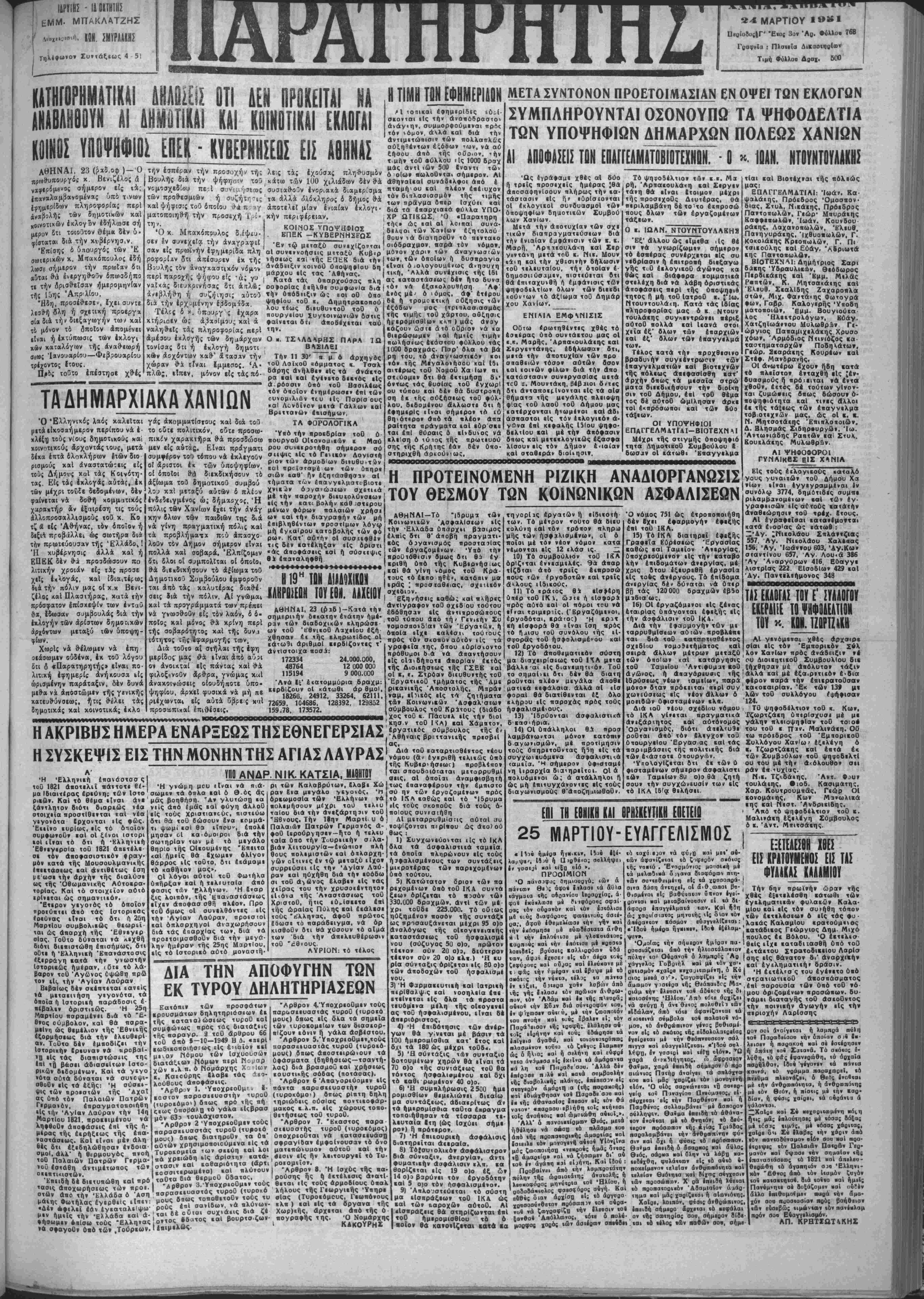 ~<*ΜΑΡΤΙΟΥ Π«ρ1ο8ος|Γ' Έιος 3ον Άο. Φύλλον 768 : Πλοιβϊα ΔιΒαοτιΐοίαϊν Τιμή Φύλλοο Δοοχ. 600 ΚΛΤ ΑΗΑ ΛΗΘ 1ΡΟΧ ΤΙΚΑ ΊΤΑΙ ΝΑ ΙΤ"*" Τ^ εΕΦΗΜΕΡΙΔΡΗ ΜΕΤΑΣΥΝΤΟΝΟΝ ΠΡΟΕΤΟΙΜΑΣΙΑΝ ΕΝ ΟΨΕΙ ΤΟΝ ΕΚΛΟΓΩΝ ΕΚΛΟΓΑΙ Κ01Ν0Σ ΥΠΟΨΗΦΙΟ. ΕΠΕΚ - ΚΥΒΕΡΝΗΣΕΩΣ ΕΙΣ ΑΘΗΝΑΣ ΑΘΗΝΑΙ. 23 (ρ"*δ.οφ )-Ό ό Βζέλ ά ρφ ) χ Βενιζέλος ά νφρμ σήμερον? είς τ4; ,πανάλαμβανομένας υπό τ>νων