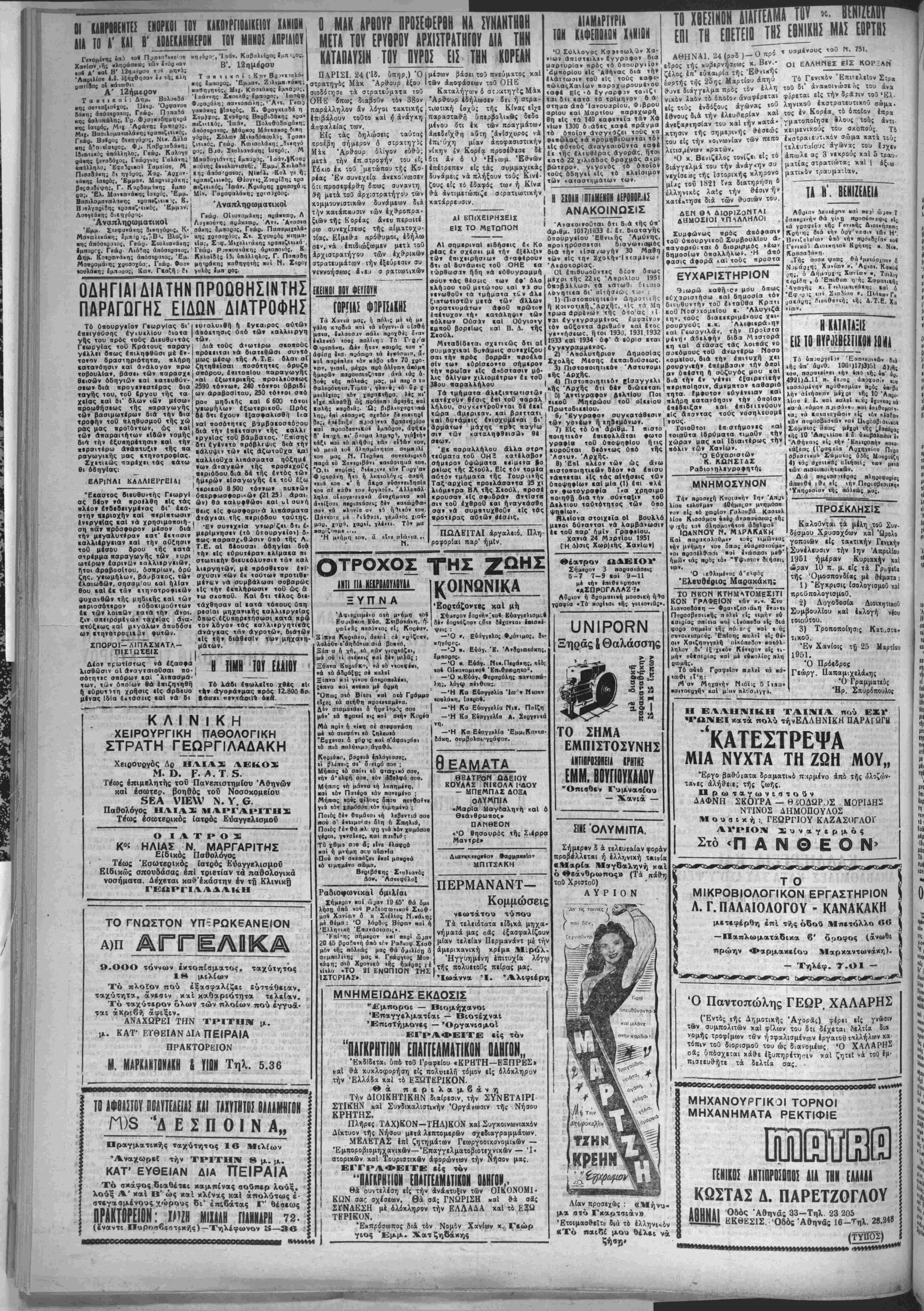 Έργο βαθύΐατα δραματΐιιό π-<ρμένο άπο τής όλίζών- τανες άλήθειε; τής ζωής. Πρωταγωνιστοΰν ΔΑΦΝΗ ΣΚΟΥΡΑ —Θ£ΟΔΩΡ,)Σ ΜΟΡΙΔΗΣ ΝΤΙΝΟΣ ΔΗΜΟΠΟΥΛΟΣ Μ ο υ σ ι κ ή :. ΓΕΩΡΠΟΥ ΚΑΖΑΣΟΓΛΟΓ ΑΥΡΙΟΝ Συναγερμός Στό <π Α Ν 0 Ε Ο Ν» ^ Τ Ο Ι ΜΙΚΡΟΒΙΟΛΟΠΚΟΝ ΕΡΓΑΣΤΗΡΙΟΝ Λ. Γ. ΠΑΛΑΙΟΛΟΓΟΥ - ΚΑΝΑΚΑΚΗ μετεφέρθη επί τής όδού Μπετόλλο ββ —Παπλωματάδιχα β' δροφος (άνωβι - πρώην Φαρμακείου Μαρκαντωνάκη). "_—Γ_ρ-ο^ί-(_—) - Τηλέφ. Τ.Ο1 - |_—_—3 Ό Παντοπώλης ΓΕΩΡ. ΧΑΛΑΡΗΣ (Έντός τής Δημοτικής 'Αγορας) φέρει είς γνώσιν των συμπολιτών καί φίλων τού δτι δέχεται δελτία δια νομής τροφίμων τδν ήσφαλισμένων έργατοϋΐ'τλλήλων χ» τόπιν τοΰ διορισμοΰ τού ώς διανομέως *Ο ΧΑΛΑΡΗΣ ο*; υποσχεται κά»ε εξυπηρέτηην χαί ζητεί νά τοθ ·>