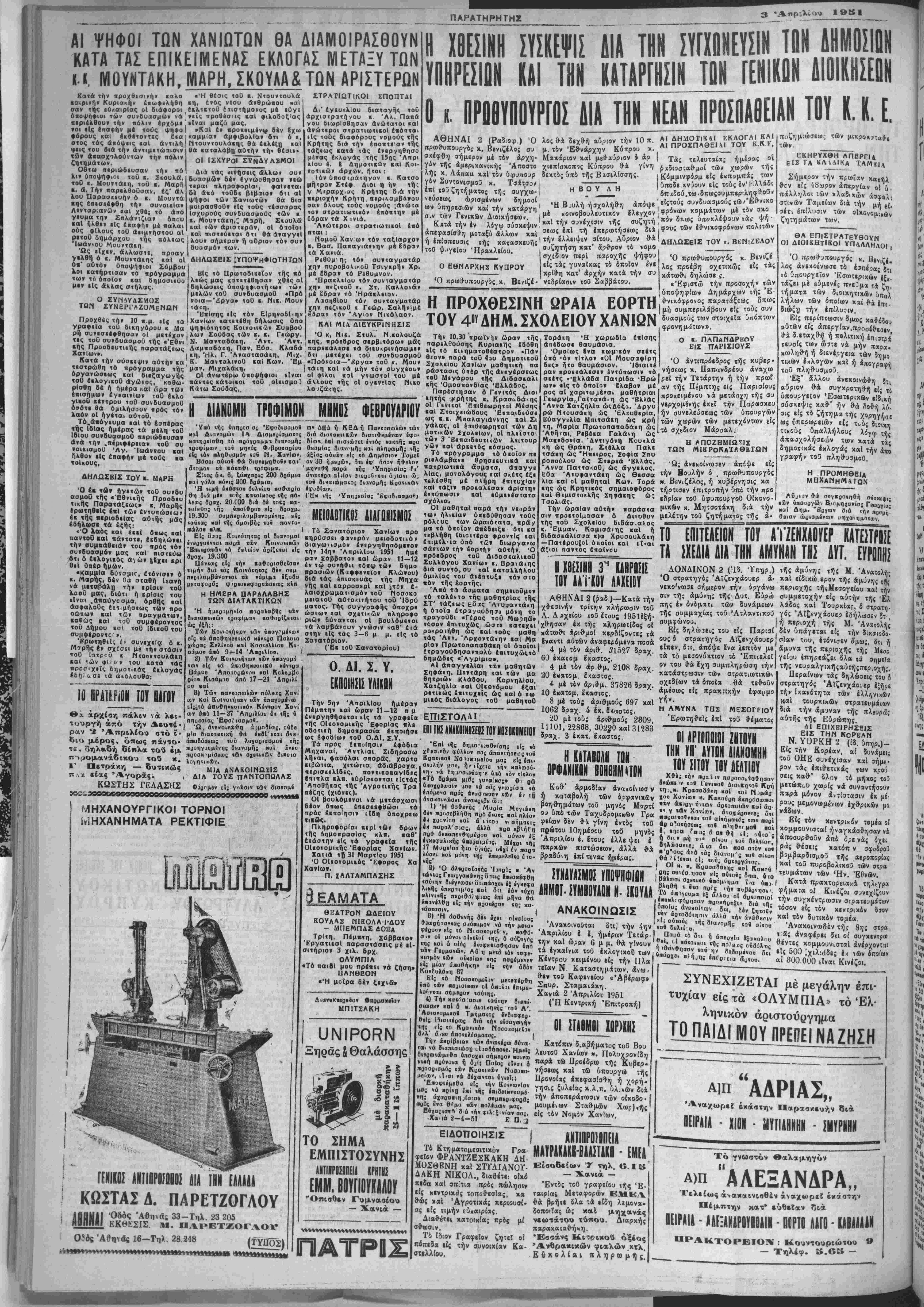 <αος η βΐϋν μή «οί 0|Ι0υ οηλησανιβ; ά ι α δι α· θί ι|, οθΐο'ε Ι .Π.. __- . Α / «')» 8ίλ«ίθΓ, οίον «ο« .·« ?ίί.« ίΐ' *» «»» οιυν ΐο· 'βί«?βάο β '°* °'ιοβ ΘΕΑΤΡΟΝ -ΔΕΙΟΥ ΚΟΥΛΑ2 ΝΙΚΟΛΑ1-ΔΟΥ - ΜΠΕΜΠΔΣ ΔΟΞΑ ΤρΙτη, Πίμπτη, Σόββανον Εργατιεαι ηαραστάσεις μέ ει¬ σιτήριον 3 χιλ. δρχ. ΟΛΥΜΠΙΑ «Τό παιδΙ μου πρίπιι νά ζήση» ΠΛΝΘΕΟΝ «Ή μοϊρα δέν ξεχιό:* Διαν«κιερε«ον ·αοι»α»εΙο» ΜΠΙΤΣΑΚΗ υΝΙΡΟΡΝ Ξηράς & Θαλάσσης ΓΕΝΙΚΟΣ (ΝΙΙΟΡΟίΟΙΟ! 1ΙΑ ΤΗΝ Ε1ΑΙ1Ι ΚΩΣΤΑΣΔ. ΠΑΡΕΤΖΟΓΛΟΥ 10ΙΙΙΙΙΙ '0δός 'Αθηνάς 33—Τηλ. 23 205 ετΡΠΠηΙ ΕΚΘΕΣΙΣ. Μ. ΠΛΡΕΤΖΟΓΛΟΥ 03θς Ά9τ|ά·ς 16—Τηλ. 28.248 ΤΟ ΣΗΜΑ ΕΜΠΙΣΤΟΣΥΝΗΣ λΝΤΙΠΡΟ»ΠΕΙΑ ΙΡΗΤΗ- ΕΜΜ. ΒΟΥΠΟΥΚΑΛΟΪ Οπισθεν Γυμνασίου 9) Ό άλοοοοΐσιής ΊιτρΛς * Άν ιώ»1ος Γίωογα»ό«ηςδηις Ιπβσχέφθη «αύιην Βιέγ»ωοε(διιπάσχίΐ ίξ ·ννειχα ||Ι1ΐηΤ ΐνΐΙθηνΐηΐΙ II τνη VI Α Μ.ής ϋπεο^ιμ'ας κοΐ δα εάν «ύχη εΙΗΜΙΙΙ· ΙΤΜΙΙΐΙΤΛΙΙΙΙ Π· 21.111ΑΑ »λινι«ής πεαΐθίί/ψ^αΐς ίπί μήνα θά ίηινέλθ)] εί; «ήν ποοιίραν «η; χα· <άο«ααιν. 3) Ή άοθβνή; δεν εχβι ο[«βίοος θΒοορήϋανιας σιόπιμον νά «ήν μ*«α· φέρουν είς «ό Νισαχομεϊ ν, «αθό· οί μόνοι οΐϋβϊιί ιης, ο σύζυγό; χ«ν χαΙ «ής «αί ό υιός αΊοφβεΐσθησαν υπό τώ» Γεομανων, Αΰ η μβ«ά «όν ΣΥΝΔΥΑΣΜΩ! ΥΠΟΨΗΦΙΟΝ ΑΝΑΚΟΙΝΩΣΙΣ Άνακοινοθται 8τι] την 4ην πριλίου έ ϊ ήί Τά>