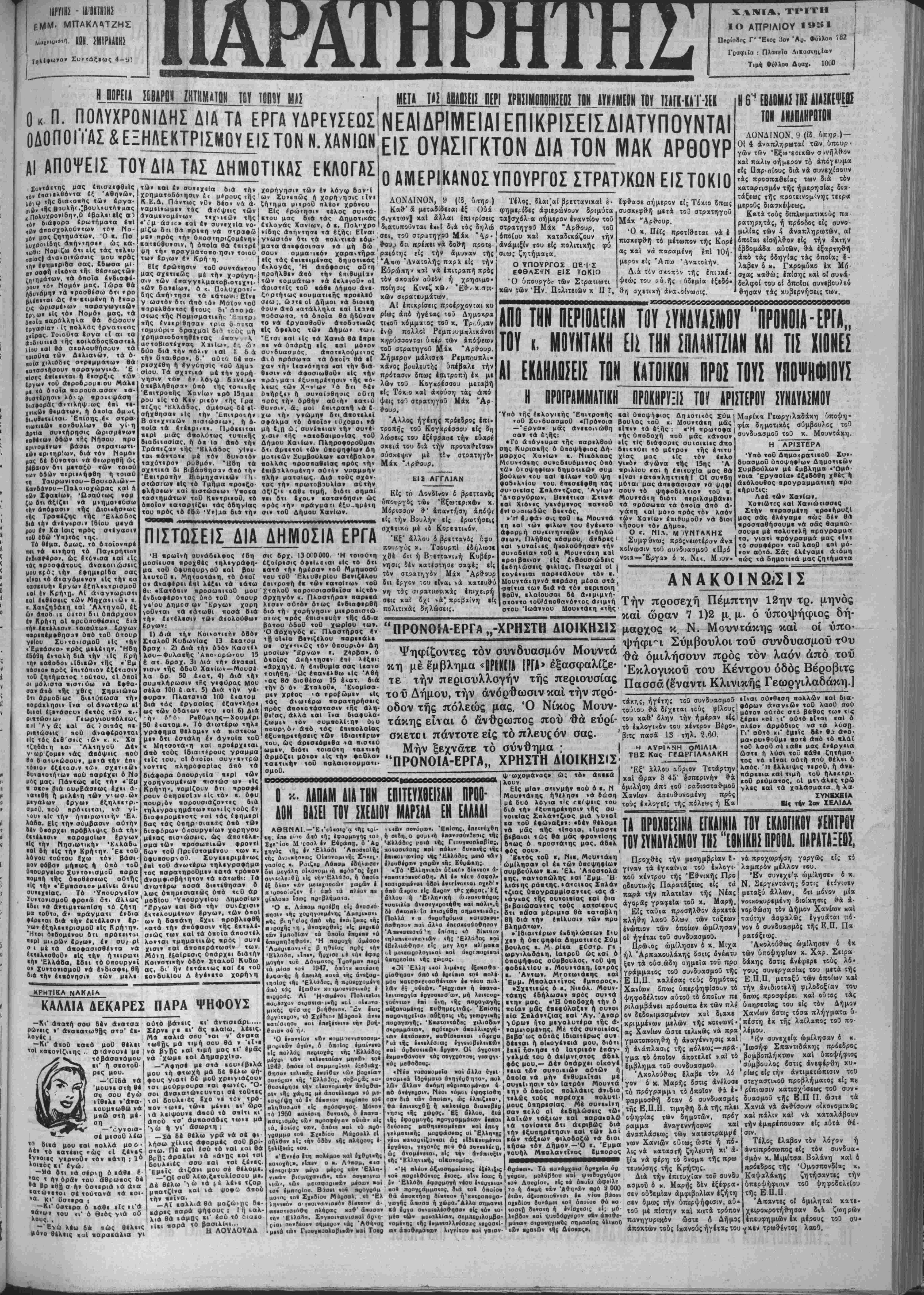 μΙζ« Λτι 8ά αρ*ηη νά σ<ρ3·ώ μβν ηρός «ή» ΰηοστηριζομενην «ατιύβυνσιν, ή όηοία θά «πιτρ* ψη «ή» ορογαατοπο ησιν «οιού των ϊρ,ω» £» Κρή η. Είς ερώτησιν «οθ συντά»«ου μας σχετικώς μβ «ήν χορηγή, σιν «ών ίπαγγιλματοβ.οτιχ»,. *Δ» 6αν«Ιων. ό «. Πολυχρον.'- δης άπή>τησε «ά κάτωΚΐ: Είνε