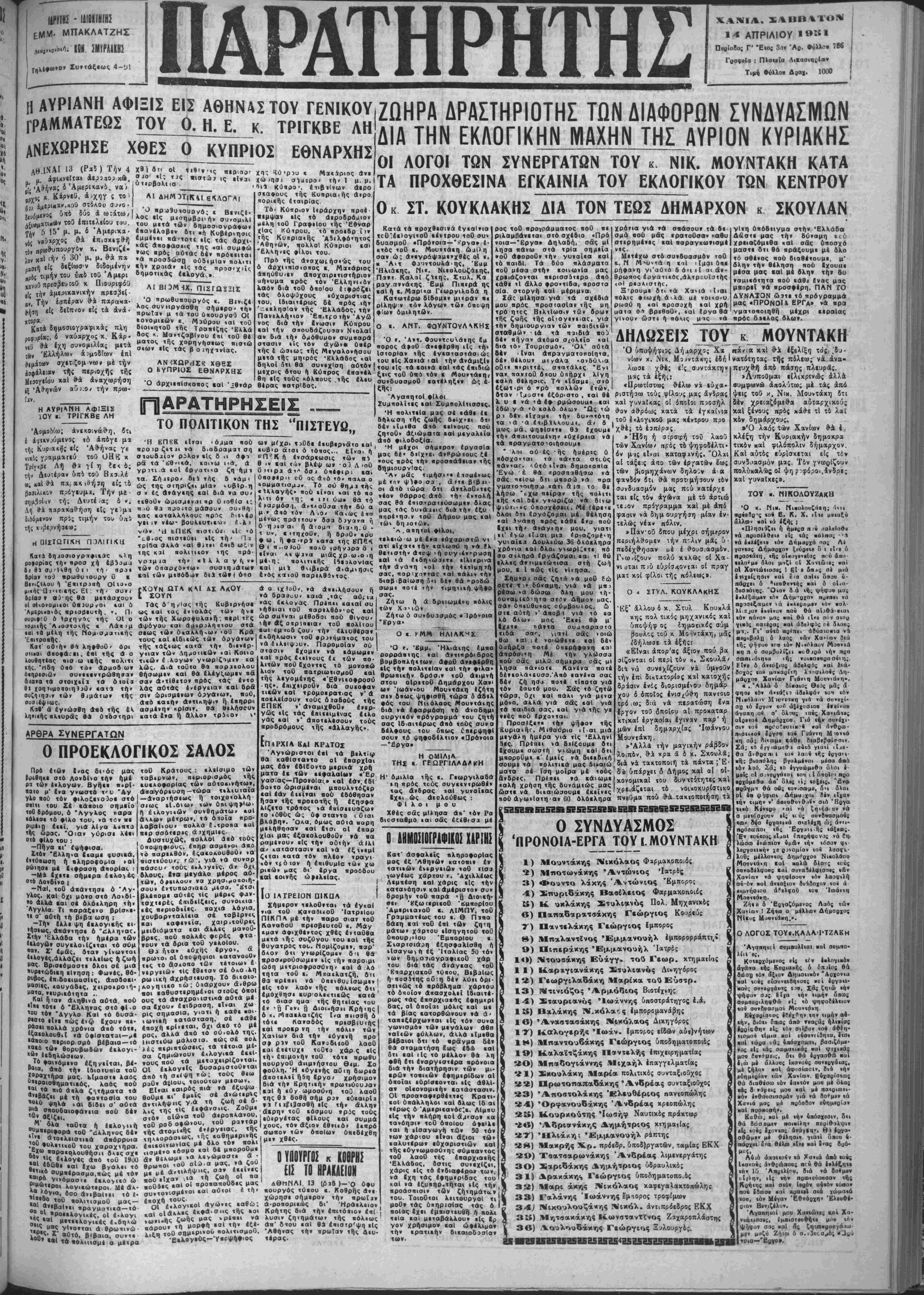 Τ?ίγ<ίϊε Λτ) θϊ γί η ?ε< ός την Διοτίραν ύαίι τού Βχσ.λέ (ο, «αί Η π%«κ«ϋή.») είς τδ μββιλικίν προγίυμί. Την με ■ 3ί;μ3'ίιν τή; Δϊυτέ-ας 4 ». Λ/) Η παρ-κ.ί,ήσϊ) είς γε'.μχ διήόμενον πρίς τιμήν του ύ τής φ ΓΠΛΙΠΚ.ΙΙ . · -- — .-γ.,, , Β ε ν ι ζ ί. *ος είς μίαημ3ο,,ήν συ»ομιΜ τού μ ε τα των δημοσ^ογράοω» ««ανέλαβε* βτι .ή Κυβίρ,η.,ς 6μμίν«ι πάντοτ* είς τας Λρχι· »ας απο»<_σ«<ς της .αί συμβώ »ως κρός αύτάς δ.» πρόιειται »α προσδώση ούδιμΐα* ηολιτι «Πν χροιάν «Ις τ_ς δημοτικάς " ΑΙ ΒΙ3Μ-ΙΧ. Π12ΓΩ.2ΙΣ Ό πρωθυηουρνός «, λος συνιιργάσβη σήμερο» την πρωΐαν μ τα τού ύπουργοθ ΟΙ «ονομιβών «. Μ.ύρου «αί τοθ διοΐιιητοθ της ΤραπΙζης Έλλά όος κ. Μαντζαβΐνου έκΐ τοθ θε ματος της χορηνήοεως πιστώ σ«ων είς τάς β ο ιηχινίας. Σκ ΧΘΕΣ Ο ΚΥΠΡΙΟΣ ΕΘΝΛΡΧΗΣ Ο αρχιεπίσκοπον ια( ^ _νε χώιη,σι ο)α»οοι τή» 1 μ, μ. δι. Κύιρο', έτιβτΐνων Λερο Ι 3«α»ους τής Κυπρια,ής ά»ρο κορκής έταιρίας Τό« ΚΟ<τρ»ον Ιιράρχην προί ■εμψαν είς τό αεροδρόμιον μίλη τοθ ΓραφεΙου τής Έθναρ χΐας Κύτρου, τό προιδρ ϊιν τής Κυΐιρια·ής Ά5<λ*ό'ητσς Αθηνών, ηοΧ,λοΙ Κύηριοι «αι *£λκηνες φίλοι τού. Πρ6 τής α»σχ_κήσ·_ς τού ό άρχιιπΙσ<οπος «. Μαιάριος <*πη_6υ<«ν -ποχαιριτισΐΓ)ριον ιιή*υμα «ρδς τΰν 'Ελληνι.όν λαόν διά τοθ όπο'ου έΐφθόζει τας όλοψύχους ευχαριστίας τού. Ιδιαιτέρως δέ πρός «ήν "α««λησ!αν τής Ελλάδος, την Πανελλήνιον 'Επιτρο την Άγώ νος διά την Ενωσιν Κύπρου «αί την σ.ουδάζουσον ΝιολαΙ αν δ«α την ομόθυμον συμηαρά στάσιν ιίς τόν αγών· υπέρ τής έ ώσιω; τής Μεναλονήσου μετά τής μητρός Ελλάδος καΐ δηλοί ότι θά συνεχίση αυτόν μέχρις βτου ή Κύαρος £«_*_λ βη «Ις τούς κόλβους .ιής έλευ θιρας πατρίδος. ΟΙ ΛΟΓΟΙ ΤΩΝ ΣΥΝΕΡΓΑΤΩΝ ΤΟΥ «. ΝΙΚ. ΜΟΥΝΤΑΚΗ ΚΑΤΑ ΤΑ ΠΡΟΧΘΕΣΙΝΑ ΕΓΚΑΙΝ1Α ΤΟΥ ΕΚΛΟΠΚΟΥ ΤΩΝ ΚΕΝΤΡΟΥ Ο κ ΣΤ. ΚΟΥΚΛΑΚΗΣ ΔΙΑ ΤΟΝ ΤΕΩΣ ΔΗΜΑΡΧΟΝ κ ΣΚΟΥΛΑΝ Κατά τα αροχβεσινά ίγ«β(?ια τοθΊέ«>ογι«οΟ ιέντρου ταθ ου*