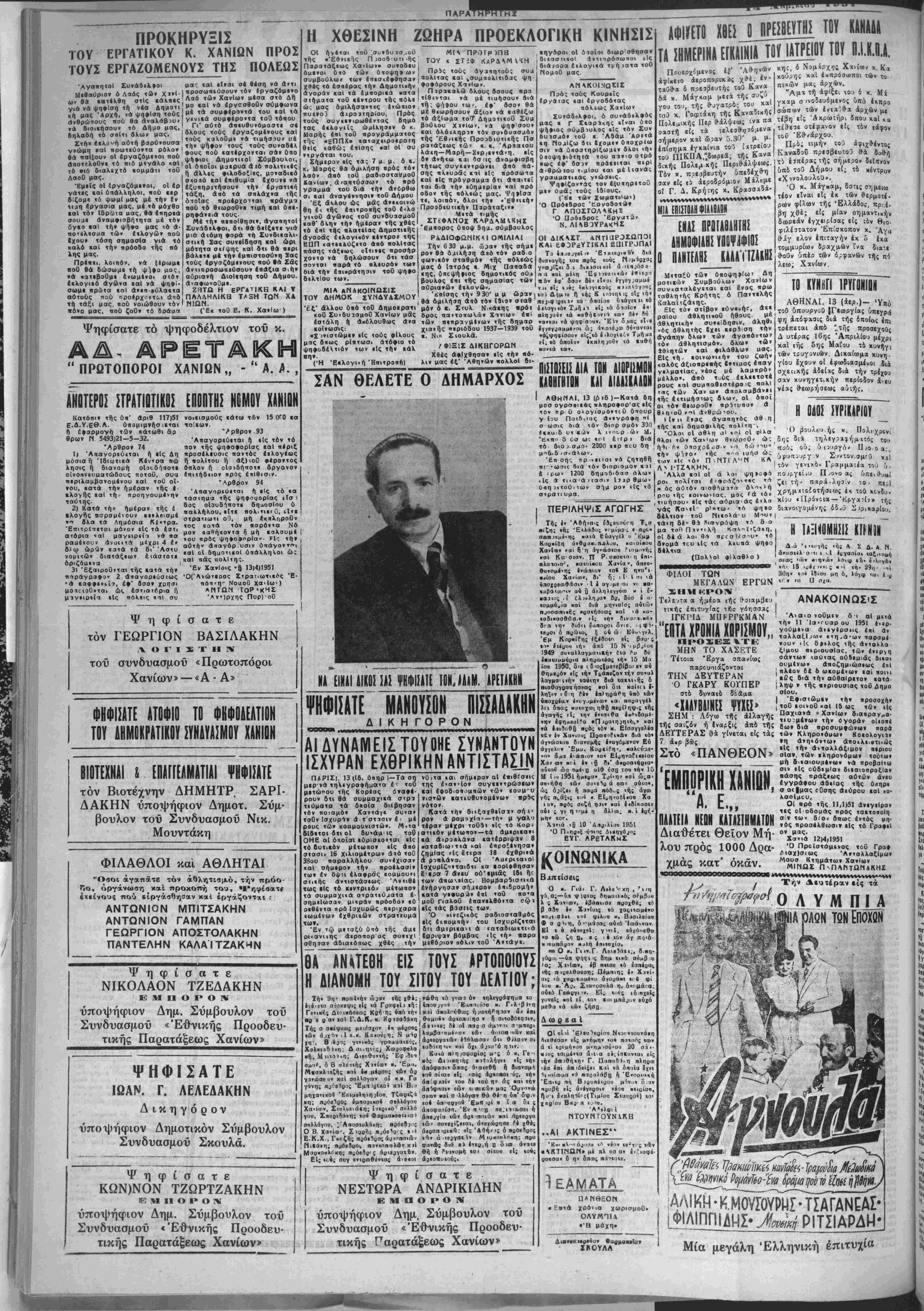 <αλός άξιοαρεβής ίντικος έηαν νελματΐας, νέος μέ λαμπρόν μέλλο», άπό τ.ύς έίλεετοτέ ρους «αί συμπαθιστέροις <ιολΐ τοις των Χαν ών άπολαμβάνει τής 6(τιμήιιω; δνων, οί όποί οί ιόν θεωραθν πρότυπον ά θλτ)το0 'ΐ| άνθρώ^ου. ι Εν ιι £νας άγαπητός άθ.η Τής καί δημοφιλης πολίτη". "Ολοι οί αθλη αί «"Ι οί φΐλβ Ολοι τ£ίν Χαν'ων Θκ.όοΟ' ώ", Ο, ν νΊι 6ώ ΜΙΙ' ίίς τί,ν ΐάφον τού Έθ·/άρχου. Προ; τιμήν ϊοΟ αφιχθέντος Κχναδοϋ πρεσβευτοΰ θα δοθ·ί) τ!) εσπέρας τής σήμερον δείπνον υπο τοϋ Δήμου εί; τό κέντρον Ό κ. Μχγχαμ, δσπς σημειω τέον είναι είς έκ των θερμοτί· ρων φίλων τής Ελλάδος, πρ,·,ί. βη χθές είς μίαν σημαντι,,ήν δωρεάν έγχειρίαας είς :ον Θ*ο· φιλέστατον "Επίσκοπον κ. Άγα ■θ·άγ ελον έπιταγήν έκ 5 έχα τομμυρίων δραχμών ί'να διατε θ·οΰν υπέο των ά;φανων τής πί λεω; Χχνίων, ΤΟ ΚΥΝΚΠ ΐΡΥΓΟΝΙΩΜ ΑΘΗΝΑΙ, 13 (άερ.)— «Υηο τοθ δπουργ^.0 |Γεωργίας ύΐιεγβίί φη απόφασις διά τής οποίας Ιπι τρέηειαι άπό 'τής προοεχοθς Δ υτέρας Ι6»}ς "Απριλίου μέχ— καί τής 5ης Μαίου τ4 κυνήγι των τρυγίνιών. Δικαίωμα κυνη- γ£ου ίχουν οί έφωδιασμένοι ίιΐ σχεΐικής αδείας διά την τρίχου σαν κυνηγετ*κήν περίοδον 4>ιυ