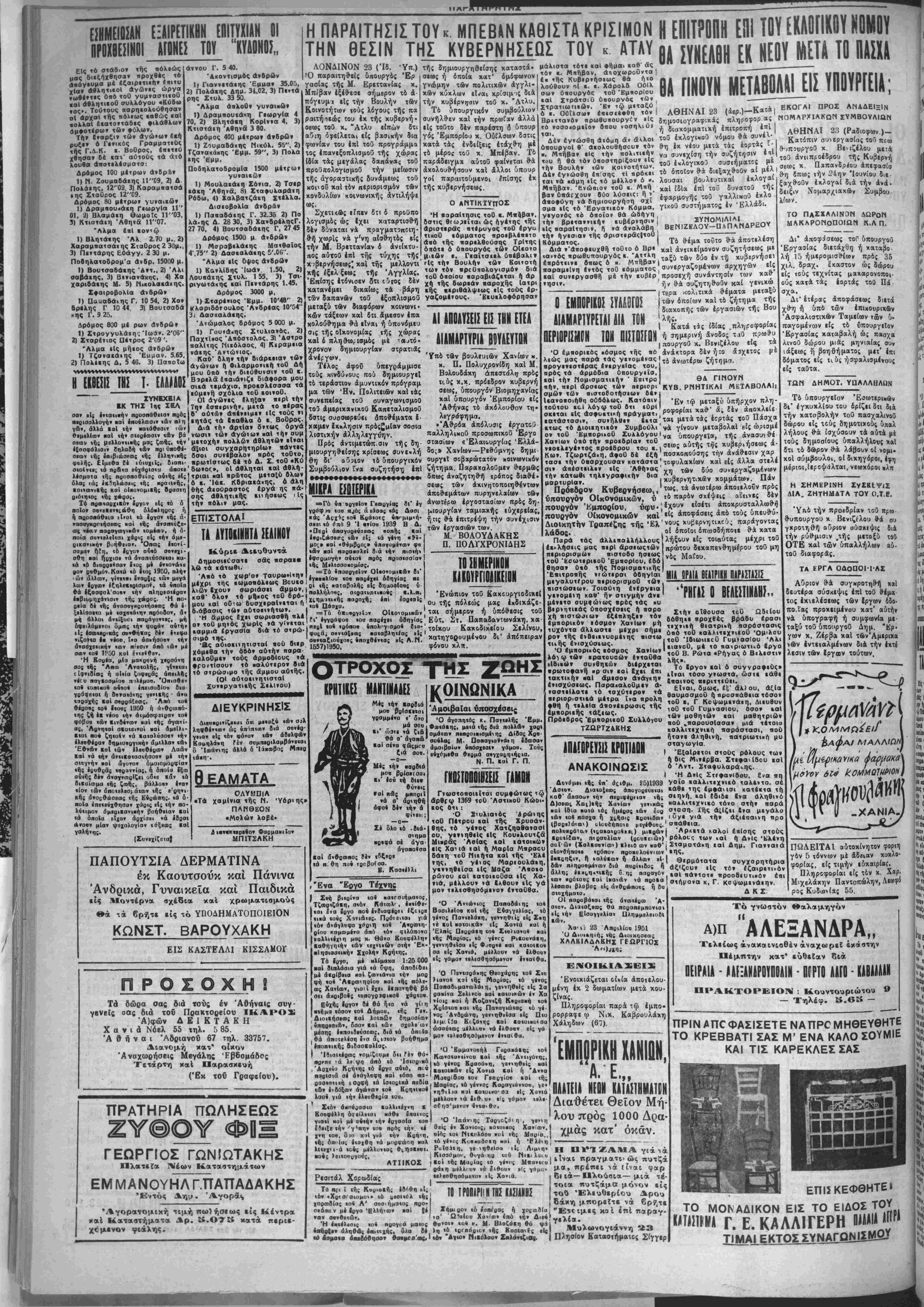 *<* ΑΠΡΙΛΙΟΥ -»»- ΠβοΙοΒος Γ' ·Ε«5 3ον Άο. ΦύλΧο» 794 Γραφεϊα : ΠλστεΙα ΔιΚαθίΐ,οίαι* Τιμή Φύλλοο Δοαχ. 1000 ΚΙΑ ΙΙΟΜΗ *Π«ΚΙ1 ΟΤΙ | ΠΜΜΟΙΟΜΜίΤΙίΜΟί ΤΡΕΜΕΙ ΤΗΝ Λ.ΐΚΗΙ Ε1ΥΜ8Γ8ΡΙΑΙ ΟΙ κ. κ ΒΕΝΙΖΕΛΟΣ ΚΑΙ ΤΣΑΛΔΑΡΗΣ ΣΥΜΦΩΝΟ1 ΑΙΑ ΤΗΝ ΜΗ ΔΙΑΛΥΣΙΝ ΤΗΣ ΠΑΡΟΥΣΗΣ ΒΟΥΛΗΣ ΠΛΗΡΟΦΟΡΙΑΙ ΟΤΙ θ' ΑΝΤΪΚΑΤΑΣΤΑΘΗ Ο κ ΛΑΠΑΜ ΩΣ ΚΑΤΑΛΑΜΒΑΝΟΛΙΕΝΟΣ ΪΠΟ ΟΡΙΟΥΗΛΙΚΙΑΣ.- Ο κ ΠΡΩΘΥΠΟΥΡΓΟΣ ΘΑ ΕΠΙΣΚΕΦΘΗ ΤΑ ΑΩΑΕΚΑΝΗΣΑ αΡΟΚΑΑΟΥΝ ΚΑΤΑΠΛΗΞΙΝ ΑΙ ΔΗΛΟΣΕΙΣ ΤΟΥ ΤΟΥΡΚΟΥ ΥΠΟΥΡΓΟΥ ΑΘΗΝΑΙ, 23 (ραδ ) Ό π !ΐίΡΪ· ή ,ήν μεσημβρίαν είς τα άνά· ρίχαί Ινημέρωσε :ον Βασι- εξελίξεως τής έσα>