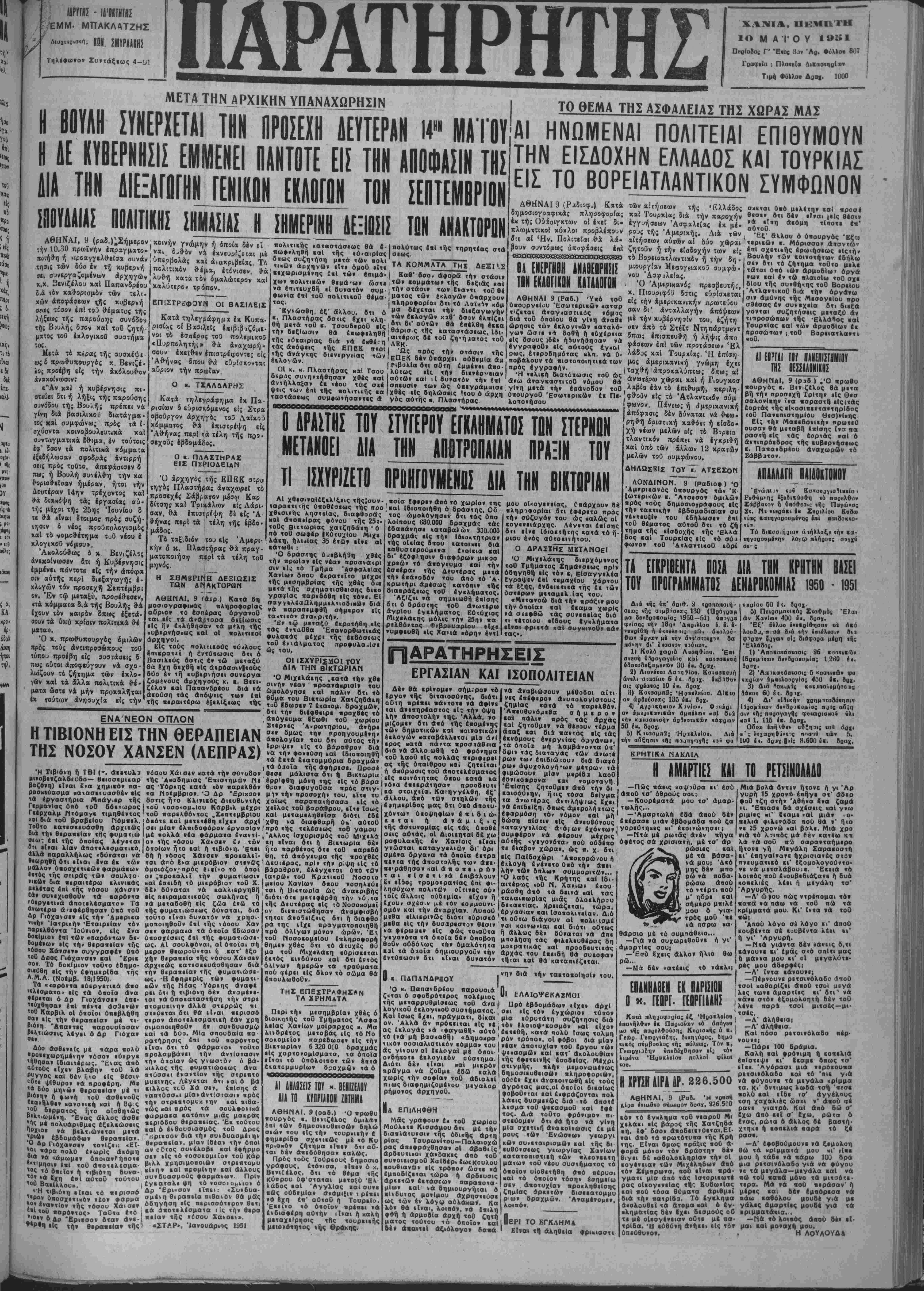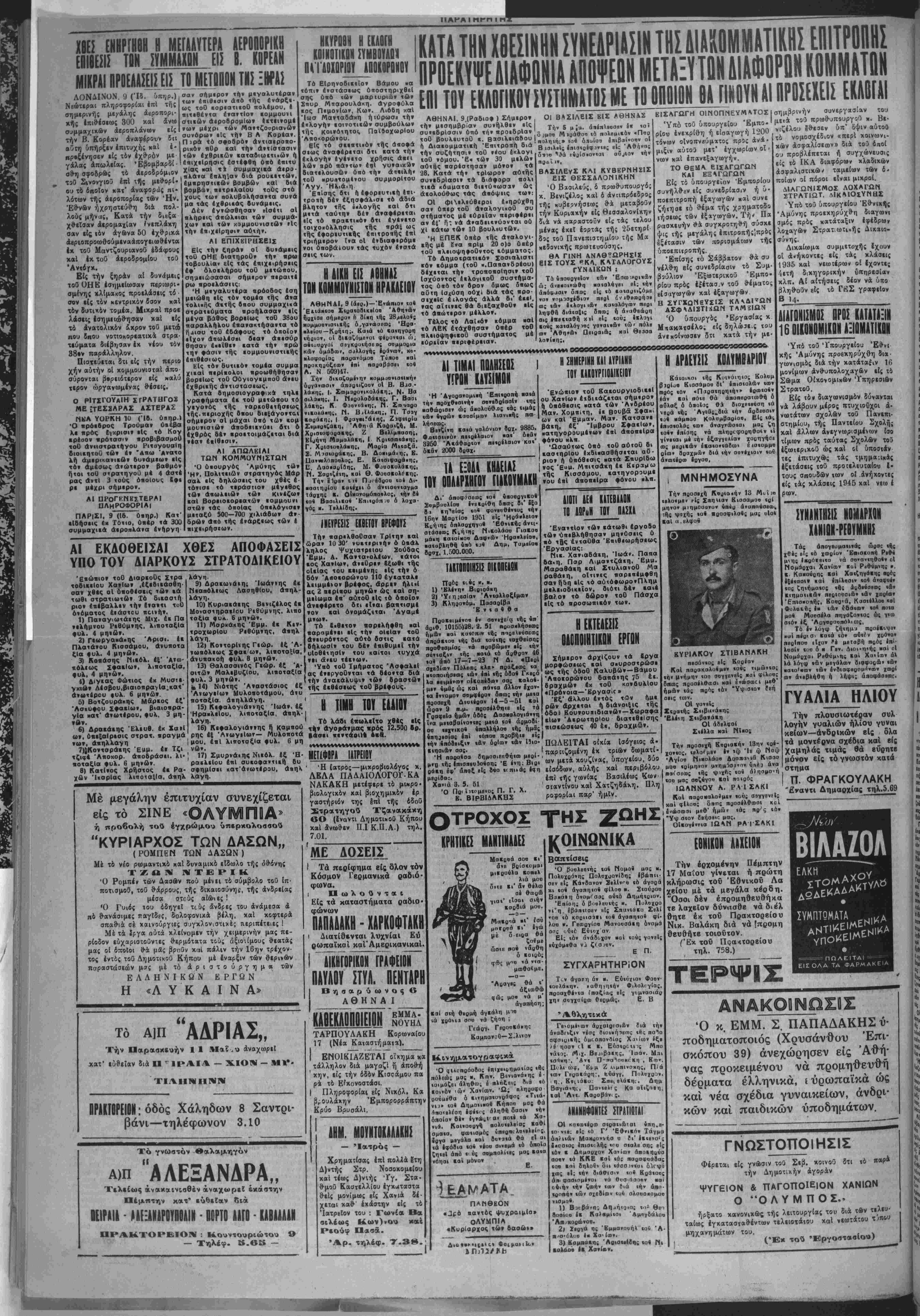 Τηλέφωνον Συντάξεως 4-< ΠΑΡΑΤΗΡΗΤΗΐ: ΧΑΝΙΑ, Π ΈΜ η ΤΗ 1Ο Μ Α Γ Ο Υ Πβοίοβο; Γ' Έΐος 3ον 'Λο. ·0λλοβ 807 Γραφΐϊα : Πλοιεΐα Δικασταί αν Τιμή Φύλλον 1000 ΜΕΤΑ ΤΗΝ ΑΡΧΙΚΗΝ ΥΠΑΝΑΧΩΡΗΣΙΝ Η 1ΟΥΛΗ ΣΥΝΕΡΧΕΤΑΙ ΤΗΝ ΠΡΟΣΕΧΗ ΔΕΥΤΕΡΑΝ 14" ΜΑΪΟΥ II ΑΕ ΚΥΒΕΡΝΗΣΙΣ ΕΜΜΕΝΕΙ ΟΑΝΤΟΤΕ ΕΙΣ ΤΗΝ ΑΠΟΦΑΣΙΝ ΤΗ! 111 ΤΗΝ ΔΒΓΟΓΗΗ ΓΕΝΙΚΟΝ ΕΚΛΟΓΟΗ ΤΟΝ ΣΕΠΤΕΜΒΡΙΟΝ ΙΙ'ΙΔΑΙΑΣ ΡΙΑΙΤΙΙΙ! ΣΗΜΪΙΙ1! Ι ΙΙΜΕΡΙΗΗ ΔΕ»! ΤΩΝ ΑΗΙΙΤΟΡΙΙ ^ΆΑη 9 ίΡ·8;)^^",»^ γνώμην ή όποία δέν εί ,« ΙΟ.οΟ πρωϊνήν έιτρανμ*το.' να, ο.β-Λν Λ ίκνευρίζεται »· *α7β0Λάσ§ω? β* *-|«ο»ύΐ«·ς επί της τηρητέας σ«ά . ι, - ------- ·- —.—,...,..».. ,.» - . - «αί «ής εθ<αιρ(ας Ισιως. σ(ι συνεργαζομέναιν κ,κ. Βενιζέλου χαί Παπαν'δρέου ]καλύτερον τρόπον ί.ά ΐ6ν καθορισμόν των τελι. μ ετόνισεν »& λυ&ή κατα τ6ν ίμαλώτιρον κα! καλύβα ν τρόπον ρμ άποφάσεων τ,ής κυβερνή τίσον επί τού θ-έματος τής λήξεως τής παρούσης σύνοδον τί)ς Βιυλής διον χαΐ τού ζητή· ματος τού έκλθγΐχοθ συστημα τος. Μετά το πέρας τής συσκίψι ως δ πρα)υνυπβυργβς κ. Βενιζέ- λος προέβη είς την ακόλουθον ανακοίνωσιν: «"Αν καί ή κυβέρνησις πι« στίύει δτι ή λήξις τής παρούσης συνίδου τής Β3υλής πρέπει νά γίνη διά βασιλικου διατάγμ*· τος καί συμφώνως πρός τα ί· σχύοντα κοινοβουλευτικαί χαί συνταγματιχά ϊθιμα, έν τούτοις Ιφ' ίσον τα πολιτΐκά «όμματα εξεδήλωσαν σφοδράς άντιρρή σεις πρός τουτο, απεφάσισεν δ πω; ή Βουλή συν έλθη την χά {(■ορισθείσαν ημέραν, ήτο: την Δευτέραν 14ην τρέχοντος καί ΰ·ά διακόψη τας εργασίας αυ¬ τής μέχρι τής 25ης 'Ιουνίου 8 τε &ά «Ιναι έΊοιμος πρό; συζή¬ τησιν 4 νέος προΰΐτολογισμδς καί τό νομοθ'έτημα τυΰ νέου ί χλογιχσΰ νόμου». Ακολούθως ό κ Βεν,ζέλος ανεκοίνωσεν δτι ή Κυβέρνησις εμμένει πάντ,οτβ είς την άπόφα σιν αυτής περΐ διεξαγωγής έ- χλ(>γών τόν προσέχη Σεπτέμβρι