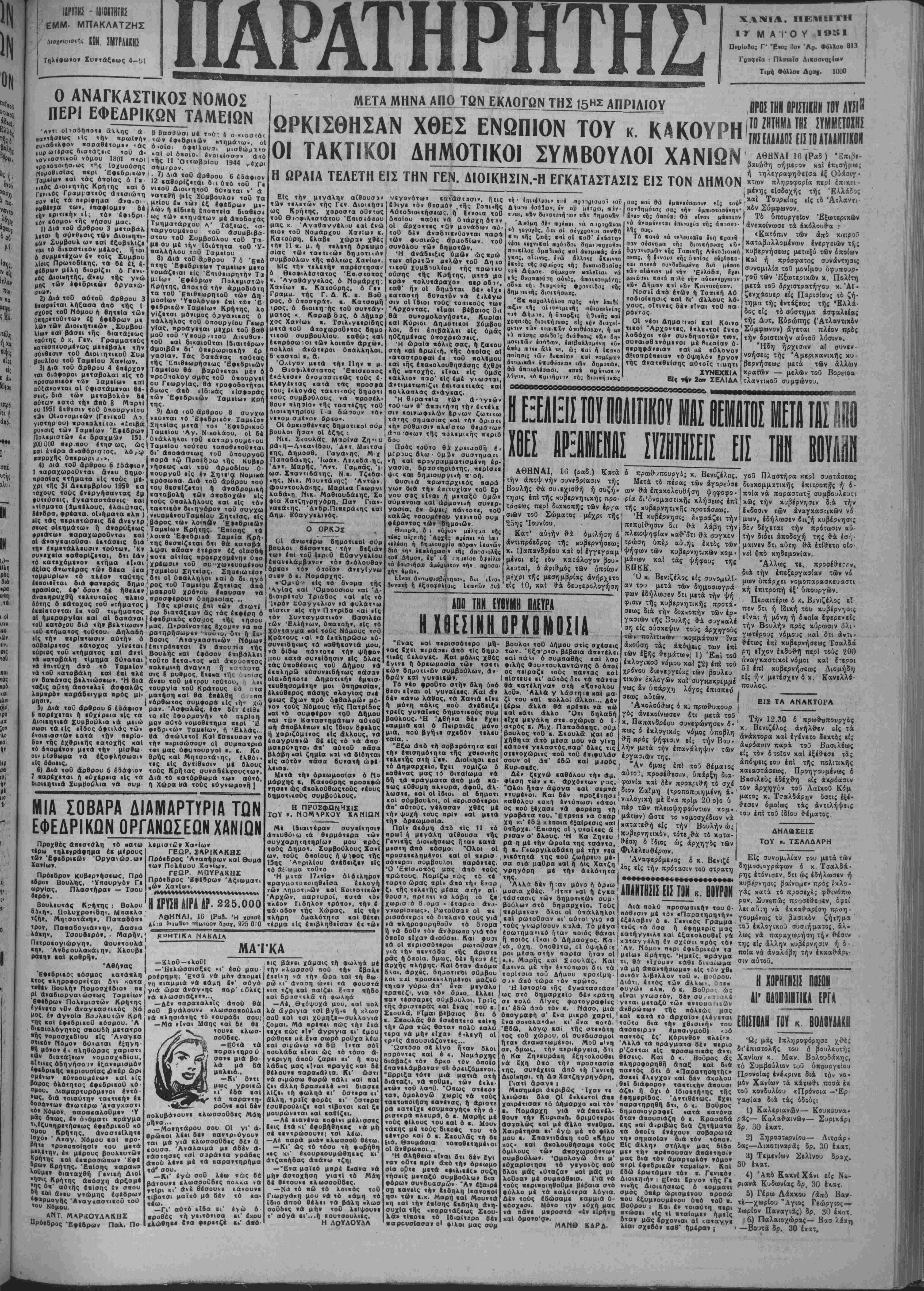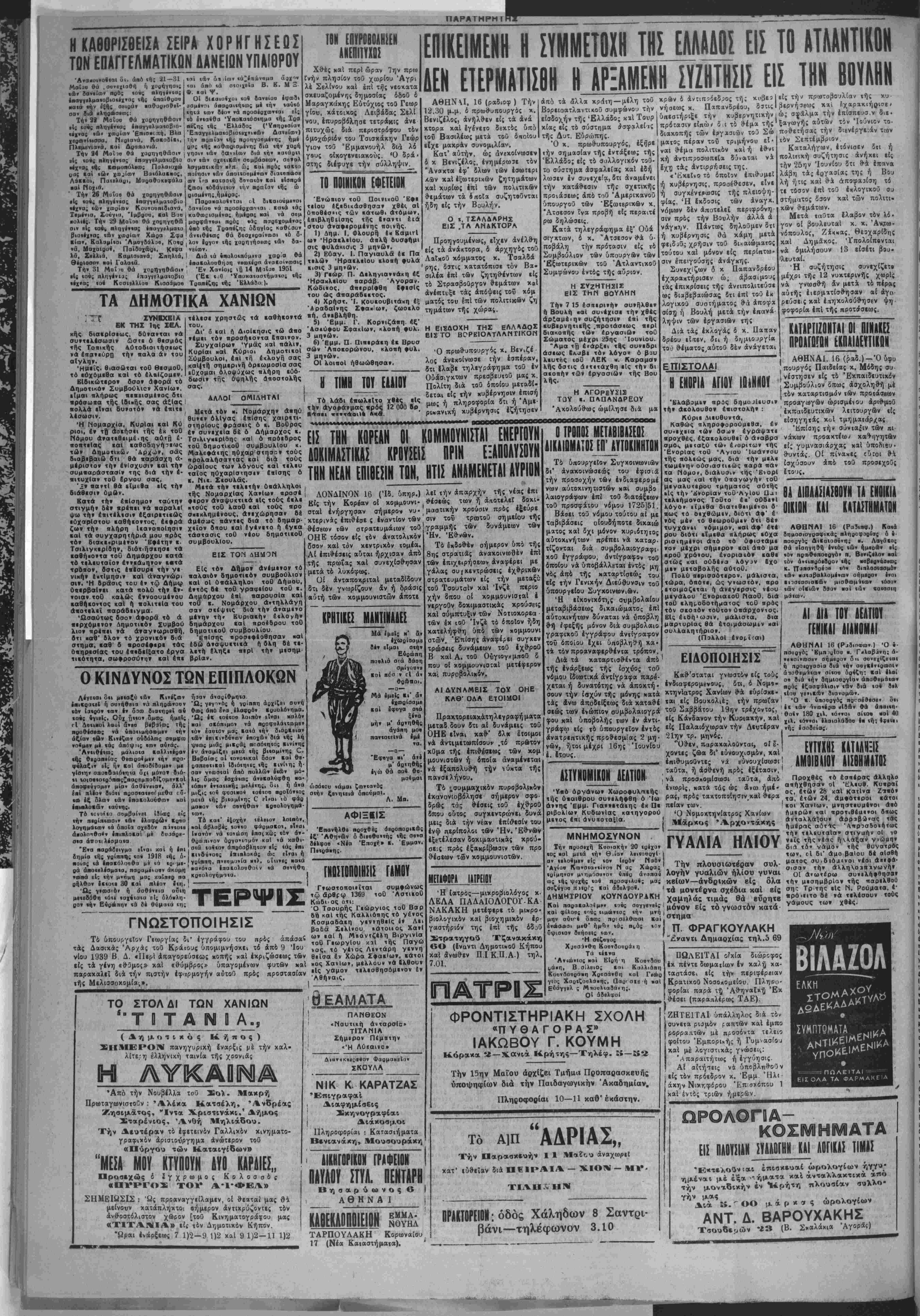 σεώ; των ενώπιον συμβολαιογρά τ°° <* φού και ΰποβολή; των έν άντι- γράφω εί; τό υπουργείον έντδ; άνατρεπτιχή; προθ·εσμία; 2 μη· νών, ήτοι μέχρι 16η; Ίουνίου έ. Ιτους. «|Πο γβ»ικΑ» 8ια»ομώ». Ό γ Βουκολιέ; την πρωίαν Ό «■ «ηοοογός την Κυριακήν χ«1 ^. Παλαιόχωραν την Δευτέραν ,ή: ό οιι Θο αιΐ(ΐι«?ι* οί«οο «οί 40 ■· «ή; Ιφΐιει "ϋ8·εν, ΐΐοιρακαλοθνται, οί έ¬ χοντες ζώα δι' εύνουχισμόν, καΐ ίπΐθυμοθντες νά ευνουχίσωσι ταύτα, ή άσθενή πρός εξέτασιν, νά προσκομίσωσι χ*ΰτ*, άπό ενωρίς, κατά τάς ώ; άνω ήμέ ΑΣΤΥΝΟΜΙΚΟΝ ΑΕΑΤΙΟΗ Ύ·ό όργάνων Χωρονυλτκής , » Β^, ε,«, ^ *** Κκΐ(η< *.*»»» τής ύιαιβρου συνελήφθη ό Ιω Ρα·) πΡ°« ταχτοπί'.ησινκαΐ »ερα τα έτων 2Α, αμφότεροι «άτοι ά Έ Γ ΕΥΤΥΧΗΣ ΚΑΤΑΛΗΞΙΣ ΑΜΟ1ΒΜΩΪ ΑΙΣΒΗΜΔΤΩΣ Προχθές τό εσπέρας άλληλο απήχθησαν οί 'Βλευθ. Κυνραιΐ έτών 2δ χαί κατίνα Ζτ«6ν ής ρ ήφη άννης Έμμ· Γιαννιτάιης εκ Πε ριβολΐων Κυδωνΐας κατηγορού μενος επι ανυΐτοταξΐα. ΜΝΗΜΟΣΥΝΟΝ Την πουοιχή Κοηιακήν 20 «ος «αί μειά «ήν θ^ίαν ί πείαν των. Ό Νομοκτηνίατρο; Χανίων | Μάρκος Αρχοντάκης ΓΥΑΛΙΑ ΗΛΙΟΥ Την πλουσιωτέραν συλ- «οίμη·ον μ<ημόοα»ον νηί0 άν^ήαί λθγήν γυαλΐών ήλίθυ γυναΐ ω; ιής ψοχης «όν παοσφαοβ; μας κβίων—άνδρΐκών βίς θλα ουζίγαο π»«0ίς καί άββλΤο.. ι τβ μΟντέρνα σχέδια καί βίς ΔΗΜΗΤΡΙΟΥ ΚΟΥΝΔΟΥΡΑΚΗ χαμη)ιάς τιμάς θά βΰρητβ Καί παβακαλοίμρν «οός οογγβνβϊς , μ5νον ε[ς τ0 γνωστόν και φΐλοος «πυς «ιμανισς «ήν μ»ή , * μην αύΐΓ» διιως ηοι σέλθφοι καί έ»ΐ>θιΒθι μ«θ' ήμή>» «άς π^ός «όν