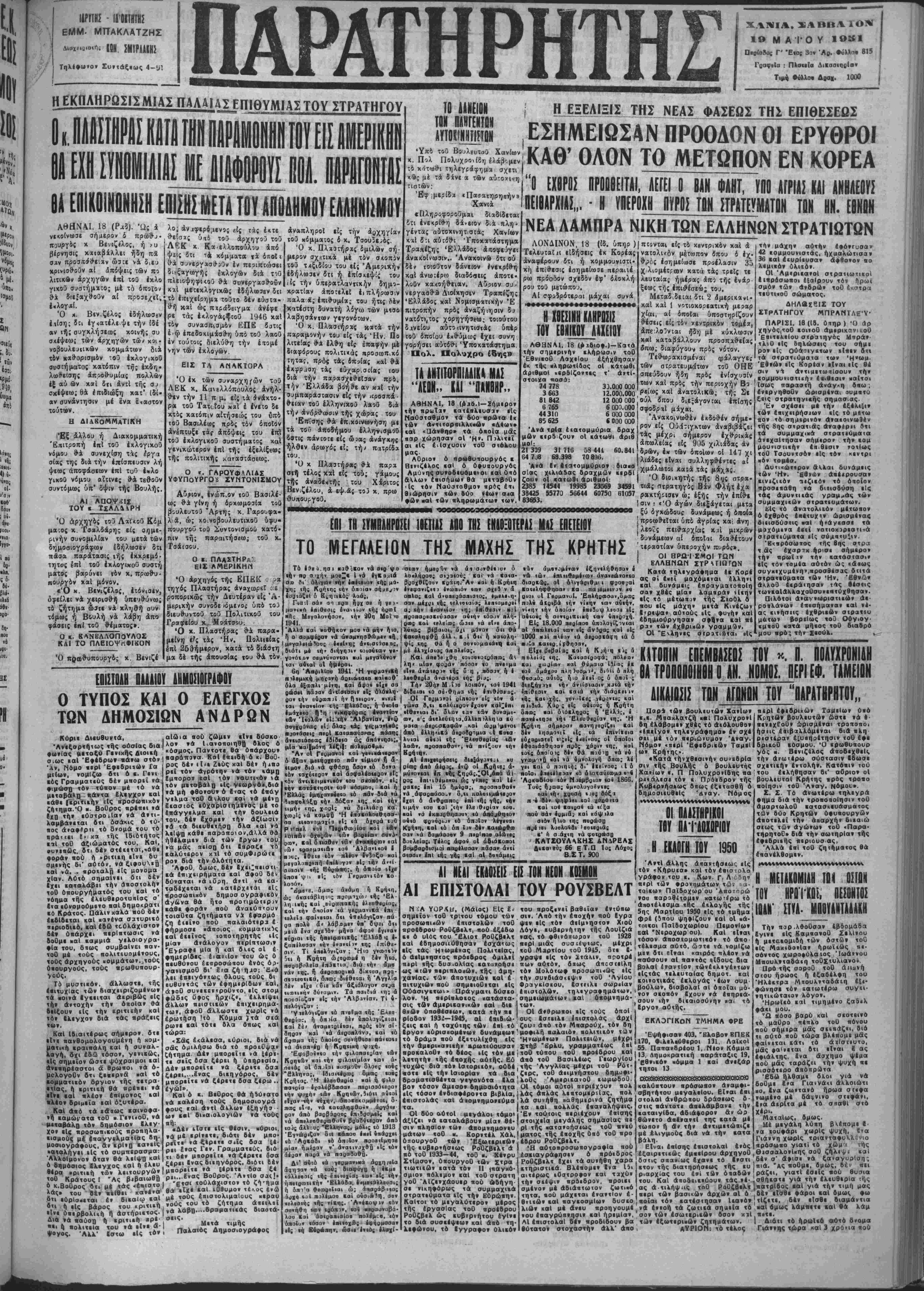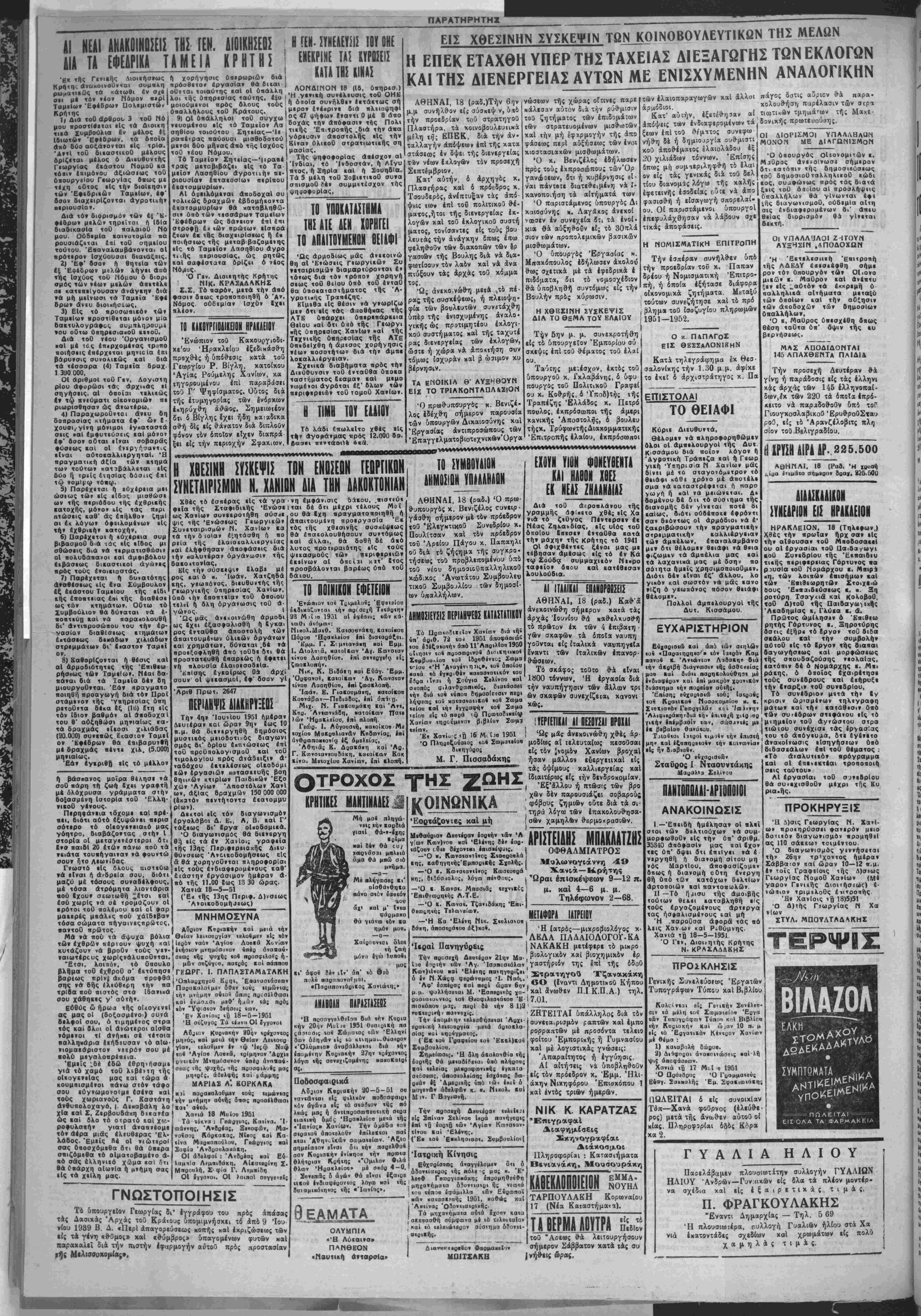 (ΐεήν <αιμ|]ιΐαίν «ην, σώσ.ιν«ες μι μνημεϊον τοθ ϊκ βεβαΐοο θα*ά«αυ. Ιτιώιου συνέχισ» τάς εργασίας Τ_ιΐοίιοι ίΐίοοί «ιμ)«ν «ή* ίπισιή τού τό άηόγευμια, δτε εγίνετο μην^καΐ Ιξαπηββιοϊν την κοινωνίαν, ανακοίνωσις εΐσηγήσιων υπό ■Ι; ή» βιαβιον*. Ό Σταύρος Ι χρ Νταουντάχης Σβλιναυ ΑΝΑΚΟΙΝΩΣΙΣ Ι —Έπειδή ήμέΧησα» οί «Χ·ϊ στοι των δελτιούχων νά συμ· μοροωθοθν είς την ύπ' αριθμ. 35340 απόφασιν μας καί «χον τις ΰη' δψει δτι έπιΐγει «ά 6 νεργηθή ή διανομή σΐτου μη νός ΜαρτΙου, αποφασίζομεν δπως ή διανομή αυτή ενιργη θή υπό των κατόχων δελτίων άρτοποιων καί παντοπωλών. II —Τό π'Λΐσυ τής άμοιβής τούτων Θιμι καταβληθή είς τοϋς εργαζομβνους άρτεργα τας ήσφαλισμβνους καί μή Ή .παροΰσα άφορβ τάς αό λιις Χαν ών καί Ρεθύμνης, Χανιά τη 18-5-1951 Ό Γεν, Διοι»ητής Κρήτης Ν. ΚΡΑΣΛΛΛΚΗΣ ΠΡΟΣΚΛΗΣΙΣ Γενικής Συνελεύσεως Έργαχών Τυπογράφων Τύπου χαί Βιβλίου Καλείνιαι είς Γβνική» Συνέλευ¬ σιν «ά μ·λ>] «ο€ Σωμαιβίοβ Έογα