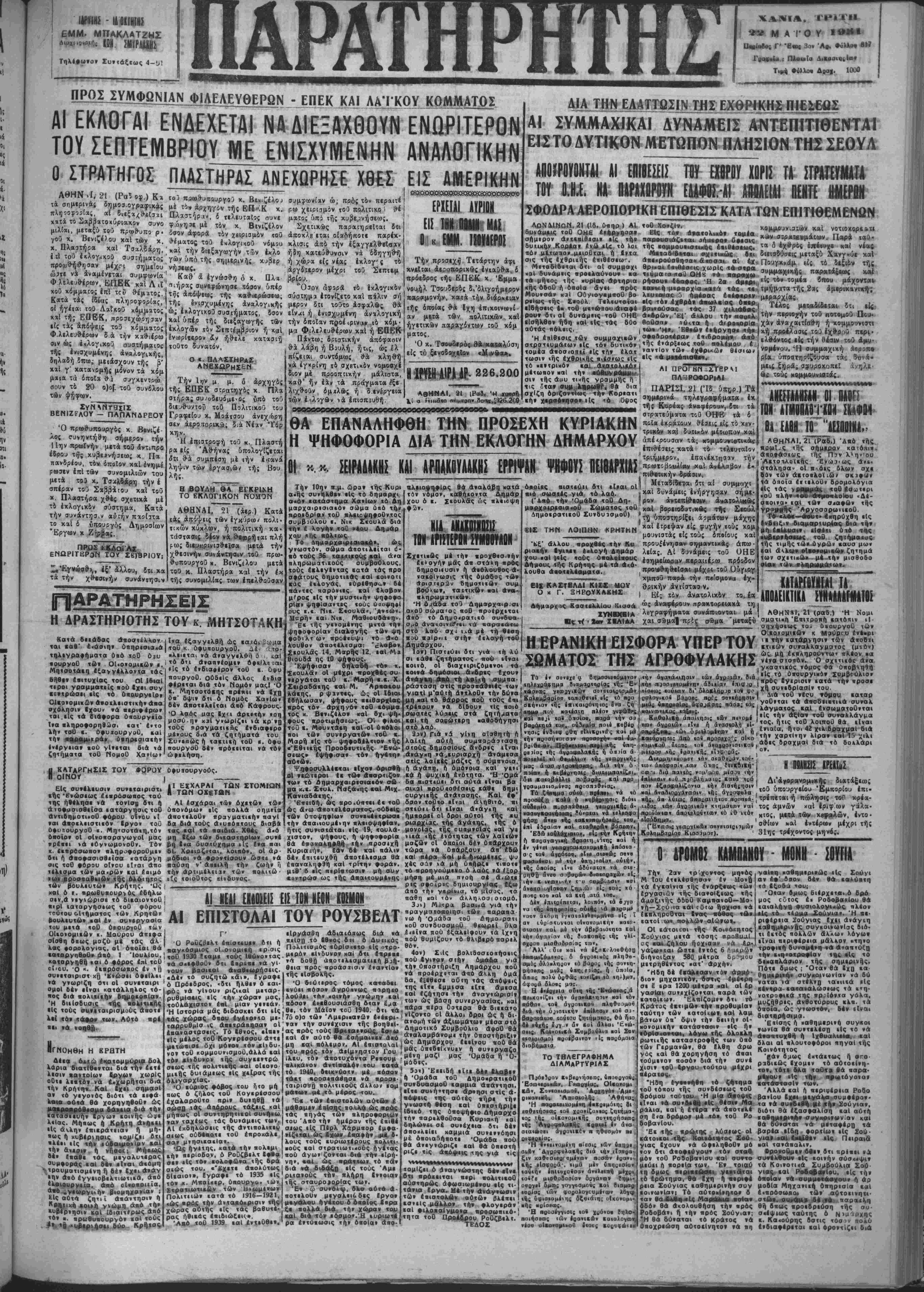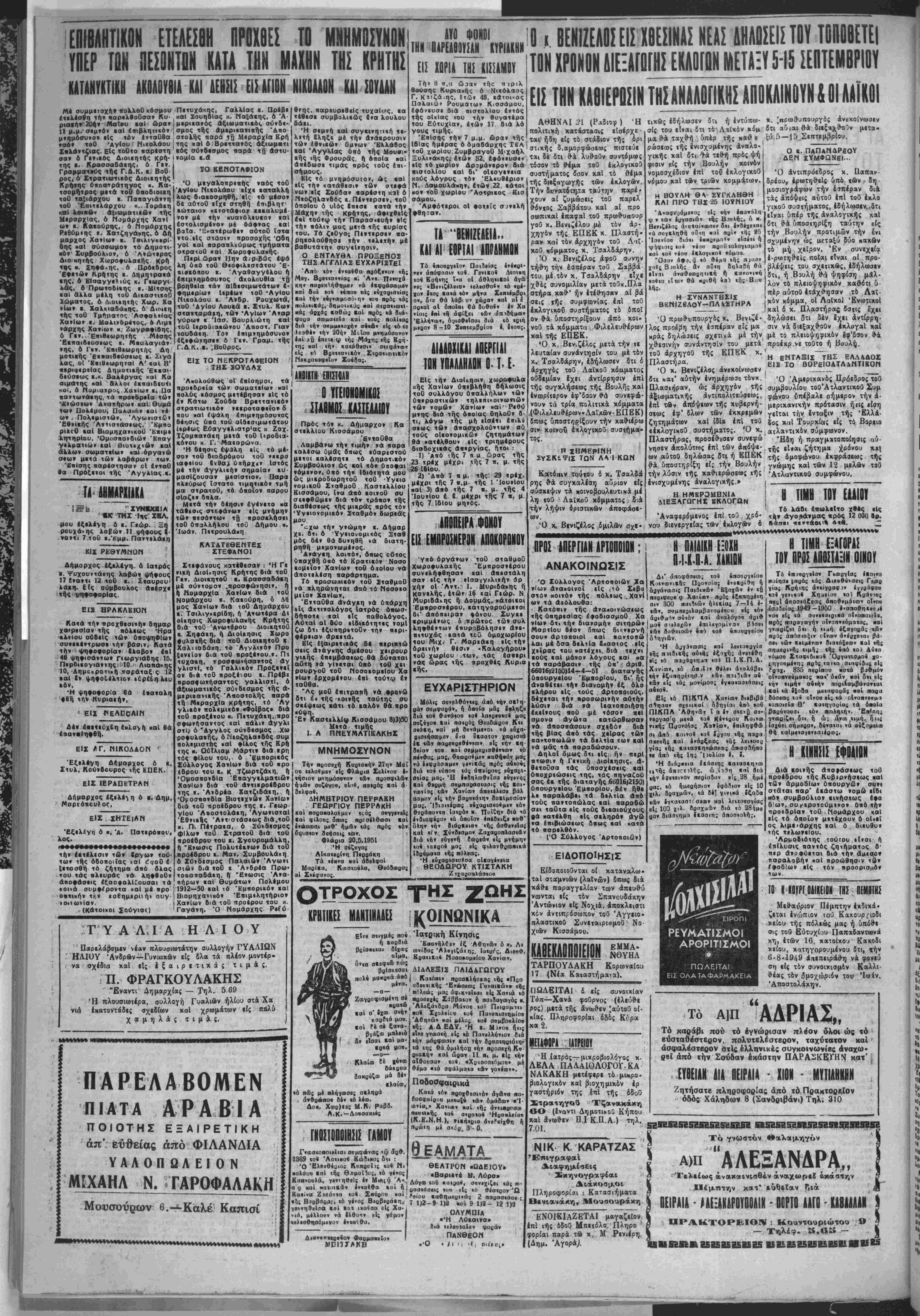 ϊηγππμίνη; ΠΒαΕ <αι«ο ΟοφίΒυς βΙ; ?Ο-33(. 835 ΠΒοίπου «Ο(ά βιΐθμόν οΐτοιινβιΐμαΐος και' οίαν «αί διι είς «ήν ιιμήν α««ήν ΠΓοιίσμβάνονιαι { καί «ά ίξοΒα μβιηφοςάς «αί ηααα , Βόοιως τοί οΐνοα εί; «ά οΐνοηνεομι ιοκσιεΐα Β' καιηγοοΐας τα όποΐιΐ βααύνουοι (άν ηωλι)(ήν. Έπ'αη; γνβοοιζβι διι ή ώ; άνα) ,«ιμη. ήΐι; ίαχΟΒΐ οήμβρον, δύναιαι νά οθζομίΐα) Θή καΐμειαγενεσιέοσι;· Η ΚΙΝΗΙΙΣ ΕΦΙΑΙΙΙ Διά βοινής αποφάσεως τοθ προεδρου τής Κυβιρνήσεως «αί των αρμοδίων οπουργών συν· στβται παρ' εκάστω νομώ εΐδι κον συμβούλιον κινήσεως έφο δ'ων, συ νκρστούμινον Οπό τή» προεδρΐαν τοθ Νομάρχου καί είς τό οποίον μετέχουν Α α(·εϊ ος λιμε·άρχης ιαί ό διευθυν ιής τιλωνεΐου. 'ΑρμοΒιότης τούτου ιΐνσΐ', ή επΐλυσις παντός ζητήματος δ- πιρ άναφύεται διά την άαιαον παραλαβήν «αί προώθησιν «Ον ίφοδΐων είς τόν προορισμόν 10 ΓΚΟϊΡίΟΑΚίΙΟΙ ΤΗΣ ΠΕΜβΤΗ- Μεθαύριον Πέμπτην εκδιχά· ζεται ένάιπιον τού Καχουρ^ιοδι χείου τή; πόλεώς μας ή ύπόθ·ι σις τοθ Εύτυχίαυ Ιΐαπαδαντωνά κη, έτών 16, χατοίκοο Κακοδι χείου, χατηγορουμένου 5τι, χήν 6-8Ί949 απεπειράθη νά φονεύ ση είς τόν συνοικισμόν Καλλι- θέας τδν ομοχώριον τού Ίωίν. Αποστολάκη. Ή ίατρθς—μιχροβιολόγος χ. ΛΕΛΑ ΠΑΑΑΙΟΛΟΓΟΓ-ΚΑ ΝΑΚΑΚΗ μετέφερε τό μΐκρο- βιολ&γικον χαί βιοχημιχ6ν έρ γαστήριόν της Ιπί τής δδοθ Στρατηγοΰ Τζανακάκη βΟ (έναντι Δημοτι»οΟ Κήπου χαί άνωθεν Π.Ι Κ.Π.Α.) τηλ. 7.01. "ΑΔΡΙΑΣ,, Τό καράβι πού τό έγνώρισαν πλέον δλοι ώς τό βύσταθέστερον, πολυτελέστερον, ταχύτατον χαί άσφαλέστβοον στΐς έλληνιχές συνκοινωνίβς άναχω· ρβί άπό «ήν Σούδαν εκάστην ΠΑΡΑΣΚΕΥΗΝ κατ' . . ΕΥΘΕΙΑΝ ΔΙΑ ΗΕΙΡΑΙΑ - ΧΙΟΗ - ΜΥΤΙΑΗΝϋΝ Ζητήσατε πληροφορίας άπό τό Πρακτορείον όδός Χάληδων 8 (Σανδριβάνι) Τηλ. 310 ΝΙΚ Κ. ΚΑΡΑΤΖΑΣ Επιγραφαί ΔιαφημίσΕις Σχηνογραφίαε Διάκοσμοι Πληροφορίαι : Κατασιήματα Βενιανάκη, Μουσουράκη ΕΝΟΙΧΙΑΖΕΤΑΙ μαγαζείον επί «ής όδοΰ Μπετόλο. Πληρο φορίαι παρά ζβ> χ. Μ Ρενιέρη