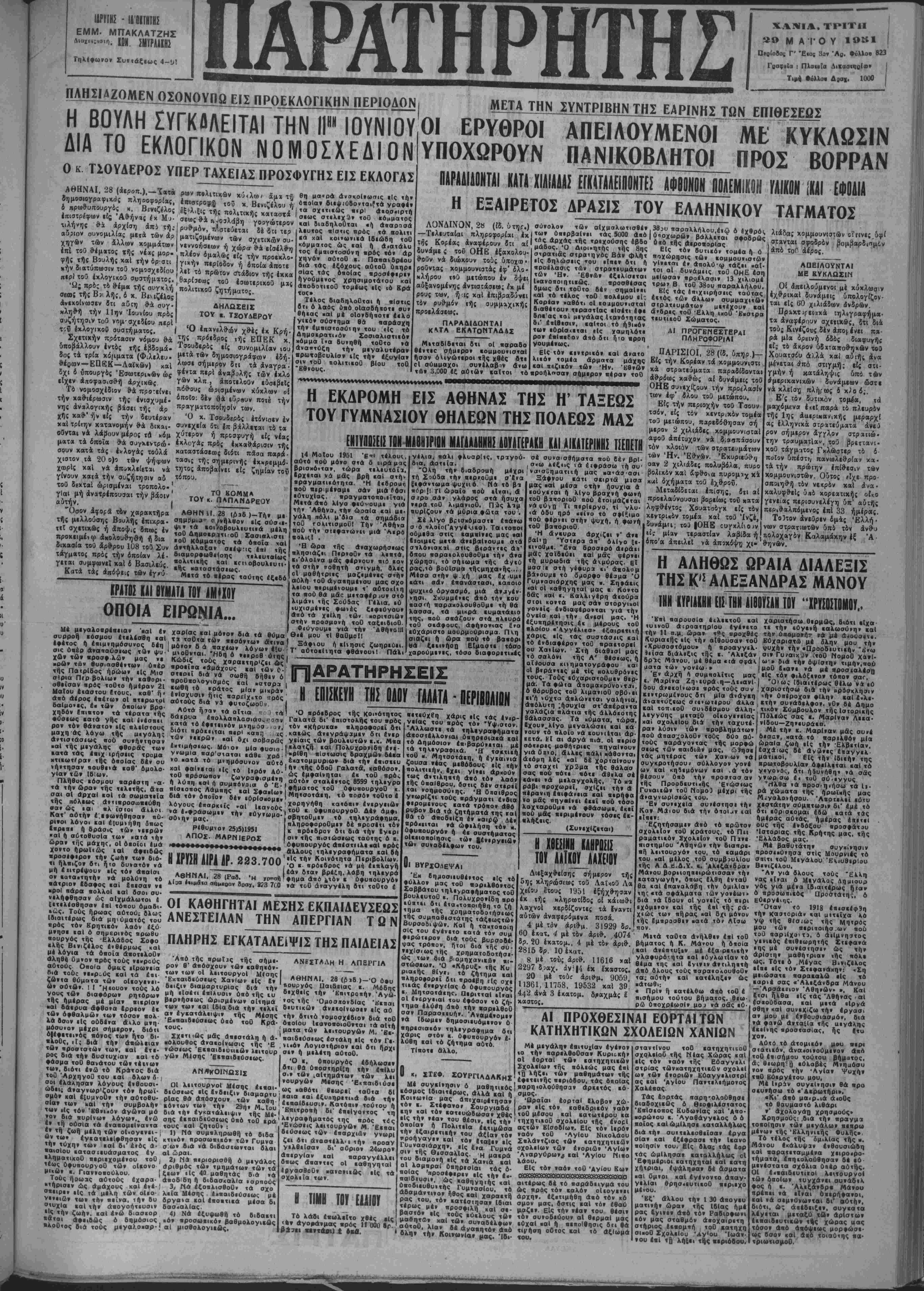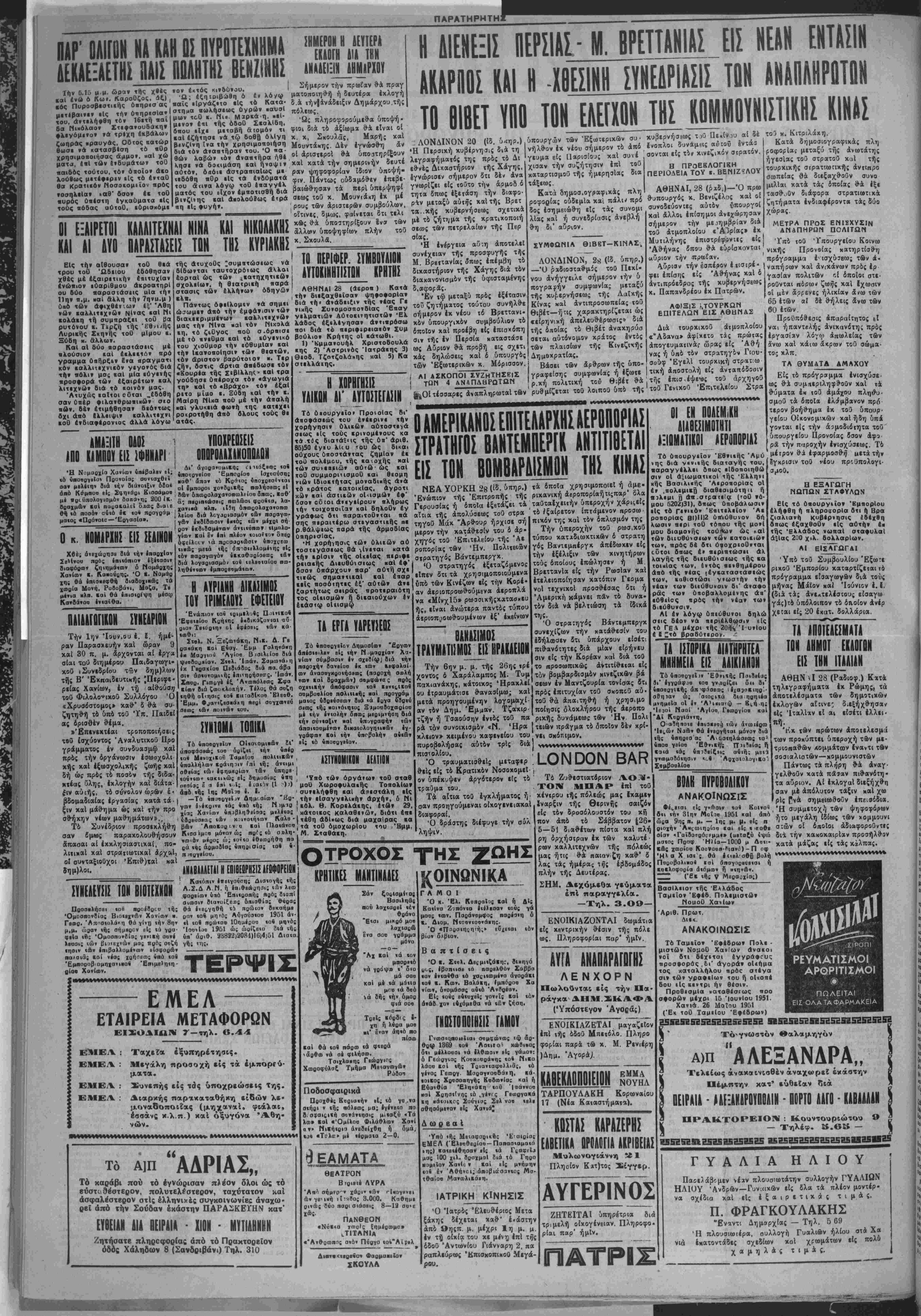 Διε<. ΑΝΑΚΟΙΝΩΣΙΣ Τό Ταμείον ΈφεΒρων Πολε - μιοτών ΝομοΟ Χανίων ανακοι νοϊ δτι οίχτται έννρα»ους προσοοράς ,6ι' αγοράν οΐιήμα τος καταλλήλου πρός στβνα σιν των γραφείων «ου ή οΐχοπέ δου ιΐς κεντρι ήν θέσιν. ΠροθεσμΙα «αταθεσΐως «οο σοορών μεχοι 15 Ίουνΐου 1951. Χανιά. 26 Μαΐου 1951 (Έκ τοθ Ταμΐίου Έφεδρων) Ι ό«γνωστόν Θαλαμηγόν α)π "ΑΛΕΞΑΝΔΡΑ,, Τελείως ανακοινωθέν αναχωρεί εκάστην Πέ^ι,πτην κατ' ευθείαν διά ΠΕΙΡΑΙΑ - ΑΛΓ:λΝΑΡΩΥΠ8ΛΙΝ - ΠΟΡΤΟ ΛΑΓΟ · ΚΑΒΑΑΑΔΝ ΠΡΑΚΤΟΡΕΙΟΝ : Κουντουριώτου 9 ΰ — Τηλέφ. 5.β» - | 35Η5Β5Β5Β5Ε5Β5Β51Β25ΙΙΙ- ΓΥΑΛΙΑ ΗΛΙΟΥ Παοελάβ',μεν νέαν πλουσιωτάτην συλλογήν ΓΥΑΛΙΩΝ ΗΛΙΟΥ Άνδρων—Γυνκικων είς δλα τα πλέον μοντέρ- να σχέδια καί είς έ ξ α ι ρ ε τ ι κ ά ς τιμάς, Π. ΦΡΑΓΚΟΥΛΑΚΗΣ "Εναντι Δημαρχίας — Τηλ. 5 69 Ή πλουσιωΐέρα, ουλλογή Γυαλι&ν ηλίου στά Χά νιά έκατοντάδες σχεδίων καί χρωμάτων είς «ολδ χαμηλάς τιμλς.