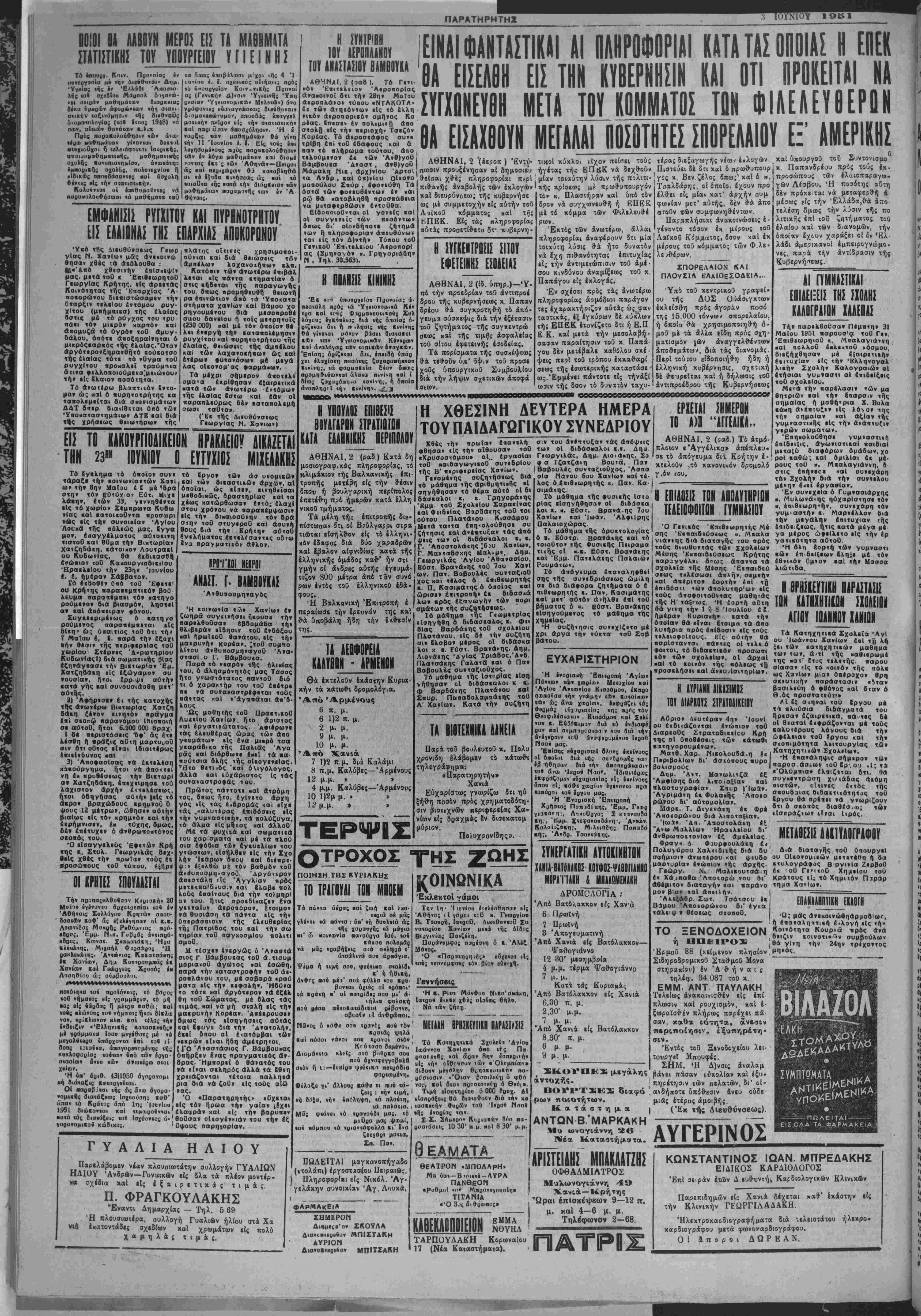 Παρεηιδημών είς Χανιά δέχεται καθ* εκάστην είς