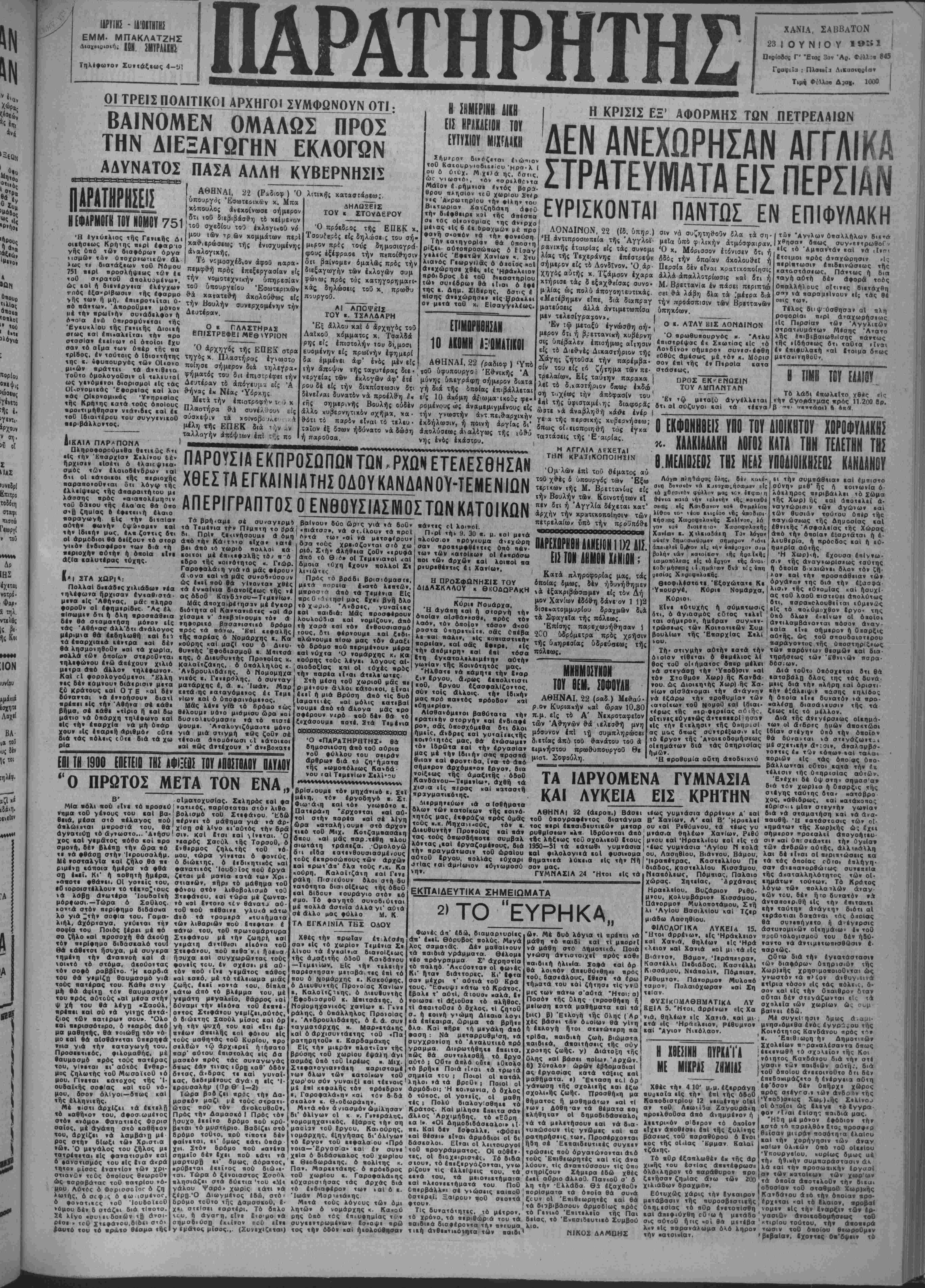 με<ας ιΐς 6 £ι.6ραχμών μ έ προ οανή σκοβόν «ά τή» οονεύση Τή» κατηγορίαν θά ϋκοσ«η ρίξει αύτοπροσώηως ό Είιιαγ λιύ ΕφΛ Χί γελιύς λ ς γ Χανίων <. 2τυ λιανός Γιωρνιίάς ό όαοϊοςκαΐ ανεχώρησε χθέτ. είς Ήρά.λιιον πρόιδρος δέ τοθ βικαστηρίου τώ» συιεδρω» θά .1»σι ό ίφ« ής κ. Δημ. Σίδιρης, δστις ί πΐσης ά*«χώρησι· είς Ηρά·λιι όν μιτά τοθ χ. Εισαγγελέως. ΕΤΙΜ0ΡΗ8ΗΣΑΝ 10 ΑΚΟΜΗ ΑΞΙΜΑΪΙΚΟΙ ... ΑΘΗΝΑΙ, 22 ίραδιοφ ) Ύπ «ήν άποψιν τής ταχυτίρας διε · τοθ όφυπουργο") Έ*νικής "Α νεργείας χ&ν ίχλ&γών άψ' έτέ μύνης ύηιγράφη σήμ«ρον διατα ρου δέ είς την διχπίστωσιν δτι γή διά τής οποίας έπιβάλλεχαι Η ΚΡΙΣΙΣ ΕΞ' ΑΦΟΡΜΚΣ ΤΩΝ ΠΕΤΡΕΛΑΙΟΝ ΔΕΝ ΑΝΕΧΩΡΗΣΑΝ ΑΓΓΛ ΙΚ Α ΣΤΡΑΤΕΥΜΑΤΑ ΕΙΣ ΠΕΡΣΙΑΝ ΕΥΡΙΣΚΟΝΤΑΙ ΠΑΝΤΟΣ_ΕΝ ΕΠΙΦΥΛΑΚΗ ΛΟΝΔΙΝΟΝ, 22 (ίδ. υπηρ.) σιν νά ουζητηθοθν δλα τα ση-ΐτών Άννλων Οβαλλήλων 6ι«*<» Ή άντιπροσωπεία τής Άγγλοϊ- μεΐα υπό φιλικήν ατμόσφαιραν.ΙΧ"πσα· Οαως συγ»ε*τρωθοΓν δένεί,α, δυνατόν ν^ίΐ», 7, ε7 10 &„*&££*?£ Ζ ,ΪΤδιαΤα^Γ^Ζ αλλο ϋ'3μΐΡΐνίίς Β°υλίί{ °ύδέν Ρ^ένου{ώ«: άναμ.ιν.νμένΟυς είς &,χ^£φ^Τ^Λίί είς το Διεθνές Δικαστήριον τής Χάγη; ζητούσα την παρέμβα· σον επί τής εν Περσία κατα σιν τού είς ιό ζ^τημα των πε· στάσεως, ϋΡΟΣ ΕΚ'ΕΝΩΣΙΝ ΤΟΥ ΑΜΠΑΝΤΑΝ Έν τφ μεταξύ αγγέλλεται δτι αί ούζυγοι καί τα τέκνα τρελαίων. Είς ταύτην παρακα | λεΐ τό δραστήριον δπως έκδώ • χέως την άπδφασίν άντιπροσωπεία τής Άγγλοϊ· μεΐα υπό φιλικήν ατμόσφαιραν.ΙΧ"πσα· δπως ρανικής έταιρίας είς τάς συνομι Ό κ. Μίριασον ετόνισεν δτι ή λίας τής Τεχεράνης επέστρεψε δδός την οποίαν ακολουίεΐ ή σήμερον είς το Λονδίνον. Ό άρ· Περσία δέν είναι κρατικοποίησις χηγός αυτής χ. Τζάμσον ίχαρα άλλ* απαλλοτριώση καί βτι ή κτήρισε τάς δ βξαχθβίσας συνο- Μ. Βρεττανία έν πάσει περιπτώ μ λίας ώς πολο άπογοηιευτικάς. σ6ι θά λάβη δλα τβ ,'μέτρα διά «Μετέβημεν βίπε, διά διαπραγ την προάσπισιν τδν Βριττανιον ματεύσεις άλλα βντιμετωπίσα όπηκόων. μέν τελεσίγραφον». Ι ----------- Έν :φ μεταξύ εγνώσθη σή·' ° "' ΑΤΛΥ_ΕΐΣΛΟΜΔΙΝθΝ μερον δτι ή βρεττανΐκή κυβέρνη Ό πρωθυκουρνός ν. "Ατλυ σις υπέβαλεν επισήμως αίτησιν εβιστρεψας έ« Σ«ωτίας .Ις τό συγ>«»τρωθοΓ*