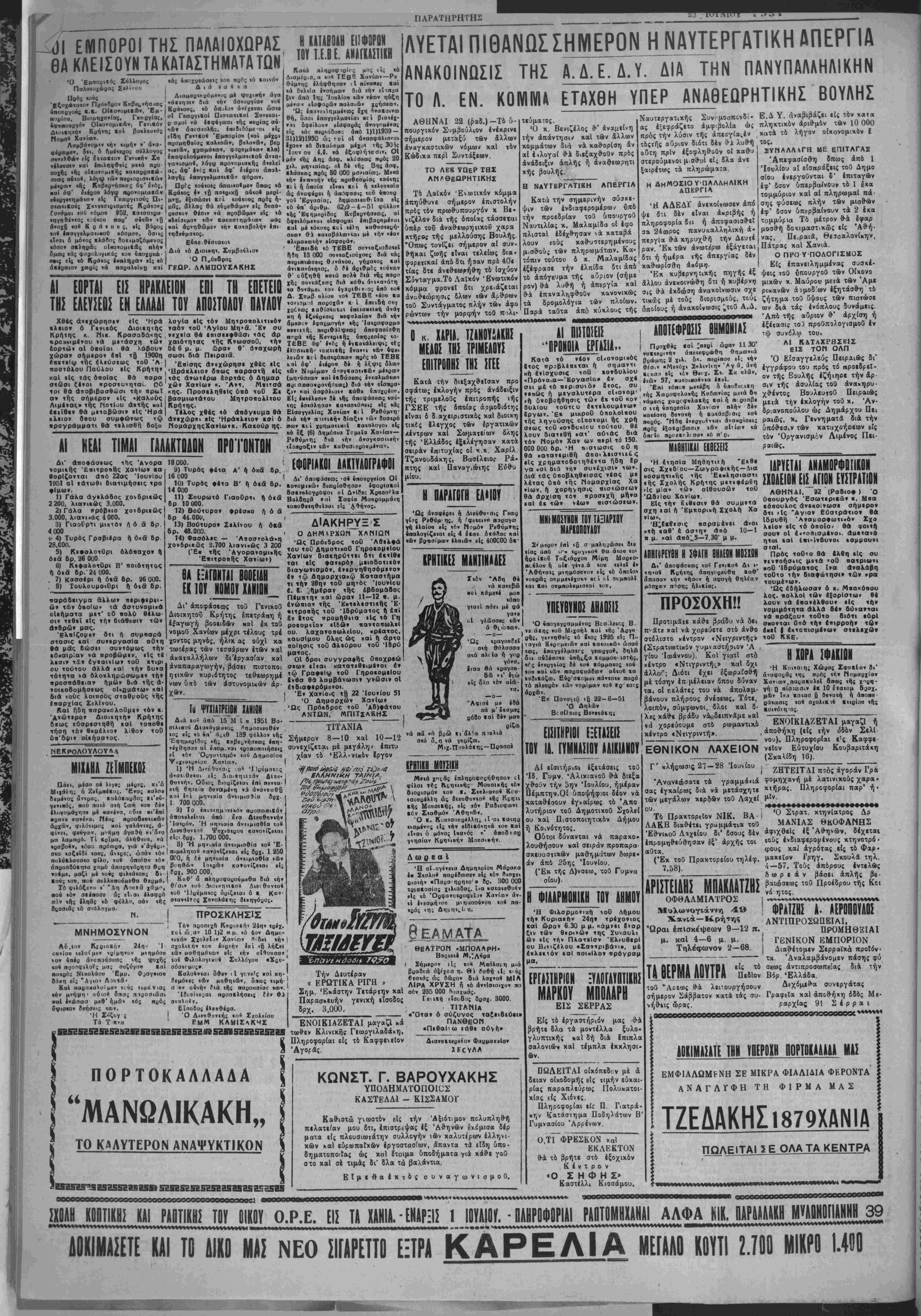 Χανίων.παςακολβΐ δπως «ής χ"α<|- γή ]) η1σ:οοσι» Ικ 10 έ*α«ομ δασχ, μόν Ινα καΐαο δ οανοχή ή <ίπορβ θάιαιαις «οί οχολιΚΊβ κ«ιςίαο «ής Κοινόιηο;. "ΕΝΟΪΚΙΑΖΕΤΑΙ μαγαζΐ ή άποθήκη (είς την οδόν Σελί νού). Πληροφορίαι ε!ς Καφφε¬ νείον Εύτυχίου Κουβαριτάκτ] (Σχαλίδη 16). Άνανεώσατε τα γραμμάΐΐά σας εγκαίρως διά νά μετάσχητε "»<ΐΡ«ς. των μεγάλων κερδων τοΰ ΛαχεΕ 1^ γ μέ λατινιχούς χαρα Πληροφορίαι παρ* ή ου. Τό Πρακτορείον ΝΙΚ. ΒΑ ΑΛΚΗ διαθέτει γρ«μμάτια τοΰ Ό Σχρατ. κτηνίατρος Δρ ΜΑΝΙΑΣ ΘεΟΦΑΝΗΣ Έθνΐκοΰ Λιχείου δι' δσους δέν αφιχθείς ίξ Αθηνών, δέχιται έπρομτιθεύθησαν έξ' άρχής τοι ΐο»ς ενδιαφερομένους κτηνοτρό- αΰτα φους καί αγρότας είς τό Φαρ- (Έκ τοΰ Πρακτορείου τηλέφ. μα*ιί°ν Γρηγ. Σκουλ« τηλ. 7.58). ΑΡΙΣΤΕΙΔΗΣ ΜΗΑΚΛΑΤΖΗΣ ΟΦΘΑΛΜΙΑΤΡΟΣ Μυλωνογιάννη 49 Χανιά—Κρήτης "Ωραι έπισκέψεων 9—12 π. μ. καί 4—6 μ. μ. Τηλέφωνον 2—68. 4—57. Τού; απόρους εντελώς δ ω ρ ε α ν βάσει άπλής ββ- βαιώσεως τοΰ Προέδρου τής Κει νό ητος. είς τό Πεδίον Τ1ΒΕΡΜΑ ΑΟιΤΡλ τοθ "Αεεως θά λειτουργήσουν σήμερον Σάββατον κατά τάς συ¬ νήθεις ώρας. ΦΡΑΤΖΗΣ Α. ΑΕΡΟΠΟΥΑΟ. ΑΝΤΙΠΡΟΣΩΠΕΙΑΙ, ΠΡΟΜΗΘΞΙΑΙ ΓΕΝΙΚΟΝ ΕΜΠΟΡΙΟΝ Διαθέτομεν Σερραϊκά προϊόν τα Άναλαμβάνομεν πάσης φύ σεως άντιπροσωπείας διά την Βόρ. Έλλάδα. Δεχόμεθα συνεργάτας φ καί άποθήκη όδός Μβ- ραρχίας 91 Σ έ ρ ρ α ι ΔΒΚΙΜΑΙΑΤΕ ΤΗΝ ΥΠΕΡΟΧΗ ΠΟΡΤΟΚΑΑΑΔΑ ΜΑΣ ΕΜΦΙΑΛΟΜίΝΗ ΣΒ ΜΙΚΡΑ ΦΙΑΛΙΔΙΑ ΦΕΡΟΝΤΑ ΑΝΑΓΛΓΦΗ ΤΗ ΦΙΡΜΑ ΜΑΣ ΤΖΕΔΑΚΗΣ1879ΧΑΝΙΑ ΠΟΛΕ1ΤΑΙ Ι Ε ΟΛΑ ΤΑ ΚΕΝΤΡΑ ΣΜΑΗ ΚΟΗΤΙΚΗΣ ΚΑΙ ΡΑΟΤΙΚΙΣ ΤΟΥ ΟΙΚΟΥ Ο.Ρ.Ε. ΕΙΣ ΤΑ ΧΑΗΙΑ. - ΕΗΑΡΞΙΪ 1 ΙίΥΑΙίΥ. ■ ΠΛΗΡΟΦΟΡΙΑΙ ΙΊΠΙΗ1ΙΙΙΙ ΑΛΦΑ ΝΙΚ. ΗΑΡΑΑΑΑΚΗ ΜνΑΟΝΟΠΑΝΝΗ 39 ΛΟΚΙΜΑΣΕΤΕ ΚΛΙ ΤΟ ΔΙΚΟ ΜΑΣ ΝΕΟ ΣΙΓΑΡΕΤΤΟ ΕΞΤΡΑ Κ Α Ρ Ε ΛΙΑ ΜΕΓΑΛΟ ΚΟΥΤΙ 2.700 ΜΙΚΡΟ 1-400