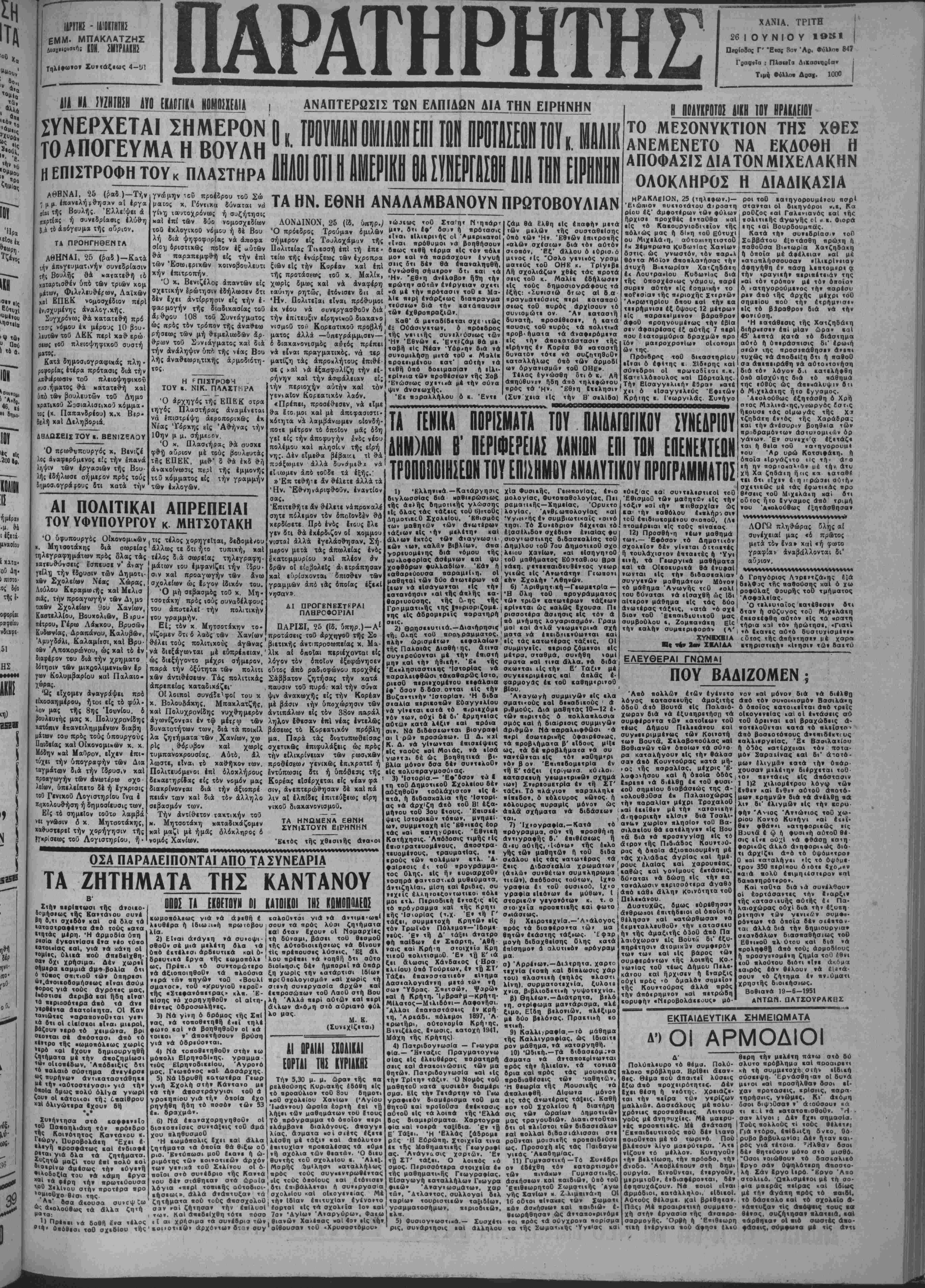 Σταίητ Ν<η<ιάρτ &<υ* ήι «ρ6«οο.ς ή ί Ά Ό πρόιδρος σήμερον είς . __ σίση οριστικώς" «οίέν έξ «ύτων Πολιτειαι Τινεσσή «ίτι "τή έπε'" βιως «βή°τ·λ1Γμα*"ΐςΡτ*νηηοΜ θά παραπεμφθή είς την επί τείω τής ενάρξεως των έχροπρα μο» «αί »ά παράσχουν ίνγυή των Έσΐιηεριχών κοινοβουλευτι ξιβν είς την Κορέαν χαΐ επί -"-*·· "- "* --—·—- Ιος απαντών είς χαί νά άναφέρη εό δ ί ς χρς μς φέρη σχετικήν ερώτησιν εδήλωσεν δτι ταύτην ρητώ,·, ετόνισεν δΐΐ αί μ η δέν Ιχει άντίρρησιν είς την έ- Ήν. Πολιτειαι είναι πρόθυμοι λ(. *·Ρι φββμβγήν τής δΐαδ,κασίας τού εκ νίου νά συνεργασθούν διά'Χ^ *ί*θου 108 τού 2υντάγματος την επίτευξιν «{ρηνκοΰδιαχανο 1 ως πρός τον τρόπον τής άνα#εω νισμοθ τού Κορεατιχοΰ προβλή; ρήσεως των μή θεμελιωδδν ά>· ματος «λλά — υηεγράμμισεν—