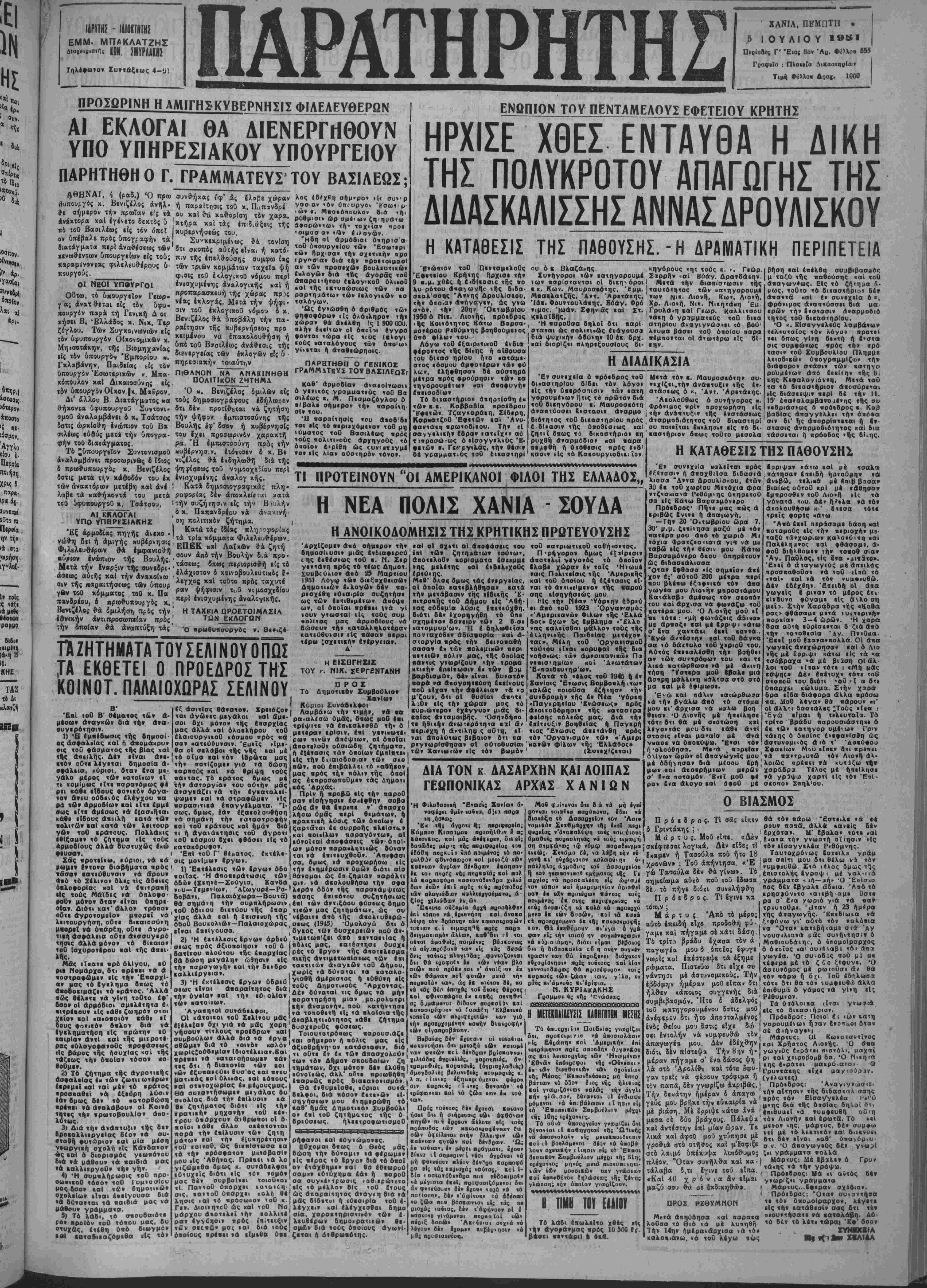 Χανιά τ^ 4 Ιουλίου 1951.