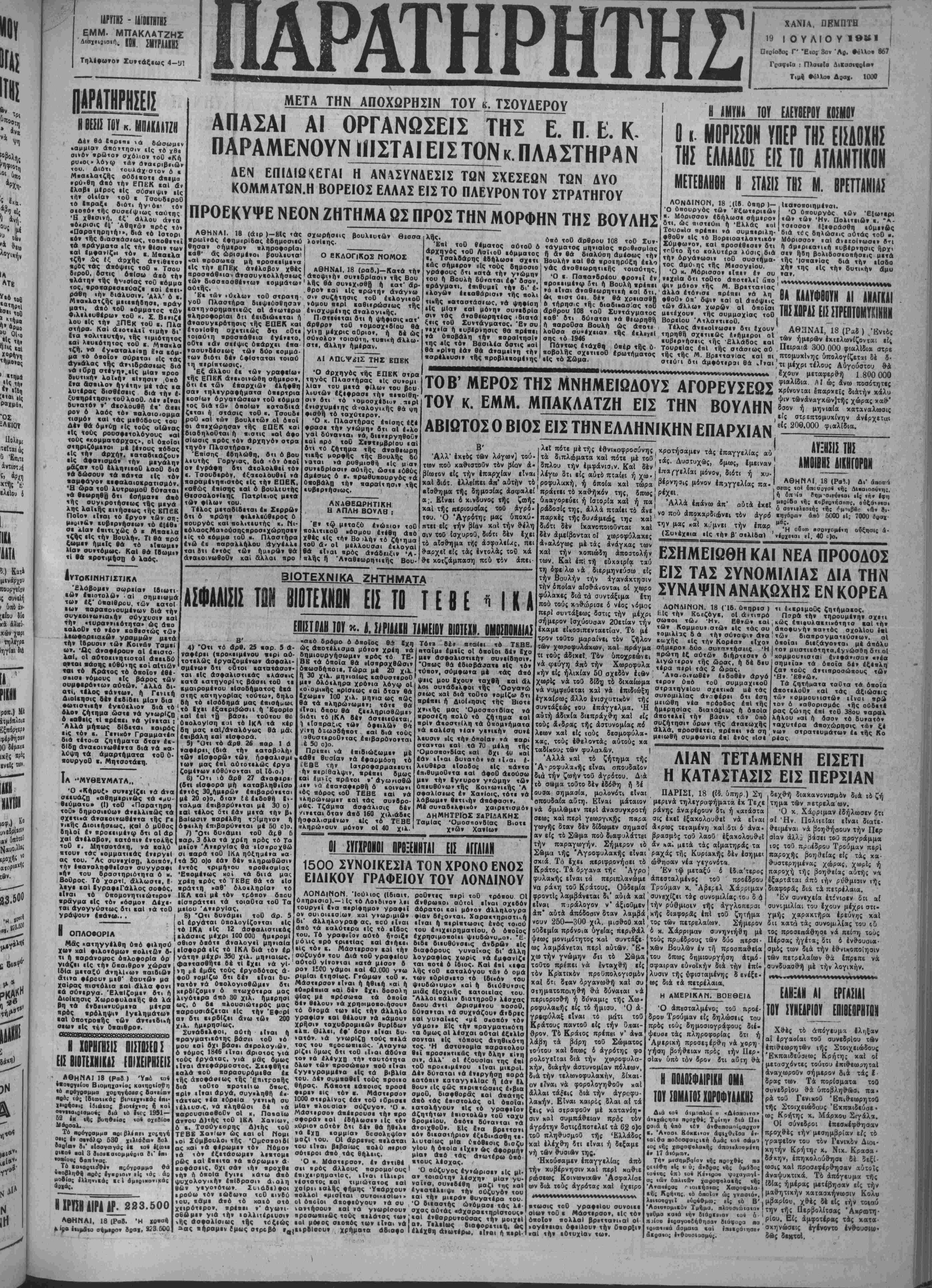Μκαν,λατζής μ«<ε«ήδησε, αράγ ματι, άβό τοθ «όμματος των Φιλελεύθερον τοθ κ, Σ, Βενιζι λου είς τή» ϊΠΕκ τοθ ι. Πλα στήρα. Καί «ιοτελιϊ τιμήν δι' £«α πολιτευτήν. τής ιιμιότητος ■αί λευκότητος τοθ κ. Μπακλα τζή. νά έγ.αταλε(·ο £»α «όμ· μα τό οποίον σύρεται είς τας άγβάλας τής αντιδράσεως διά νάιθρο στενήν.«Ις μίαν προο βευτΐκήν λαϊ·ή» κίνησιν ,ύπδ ί?α ασπιλον ήνειην μ« τάς «α λυτκρας διαβέσιις διά την ί· ξυιηρετησΐν τοθλοοθ. Δέ ν είναι δυνατόν τ' «■ολουθή' έ«' αακι ρον δ λαός τό* *αλαιο<ομμα τισμόν «αί τάς μεθόδους τού Δέ» θά όμ>ύο ·1ς τοϋς αΐωνας