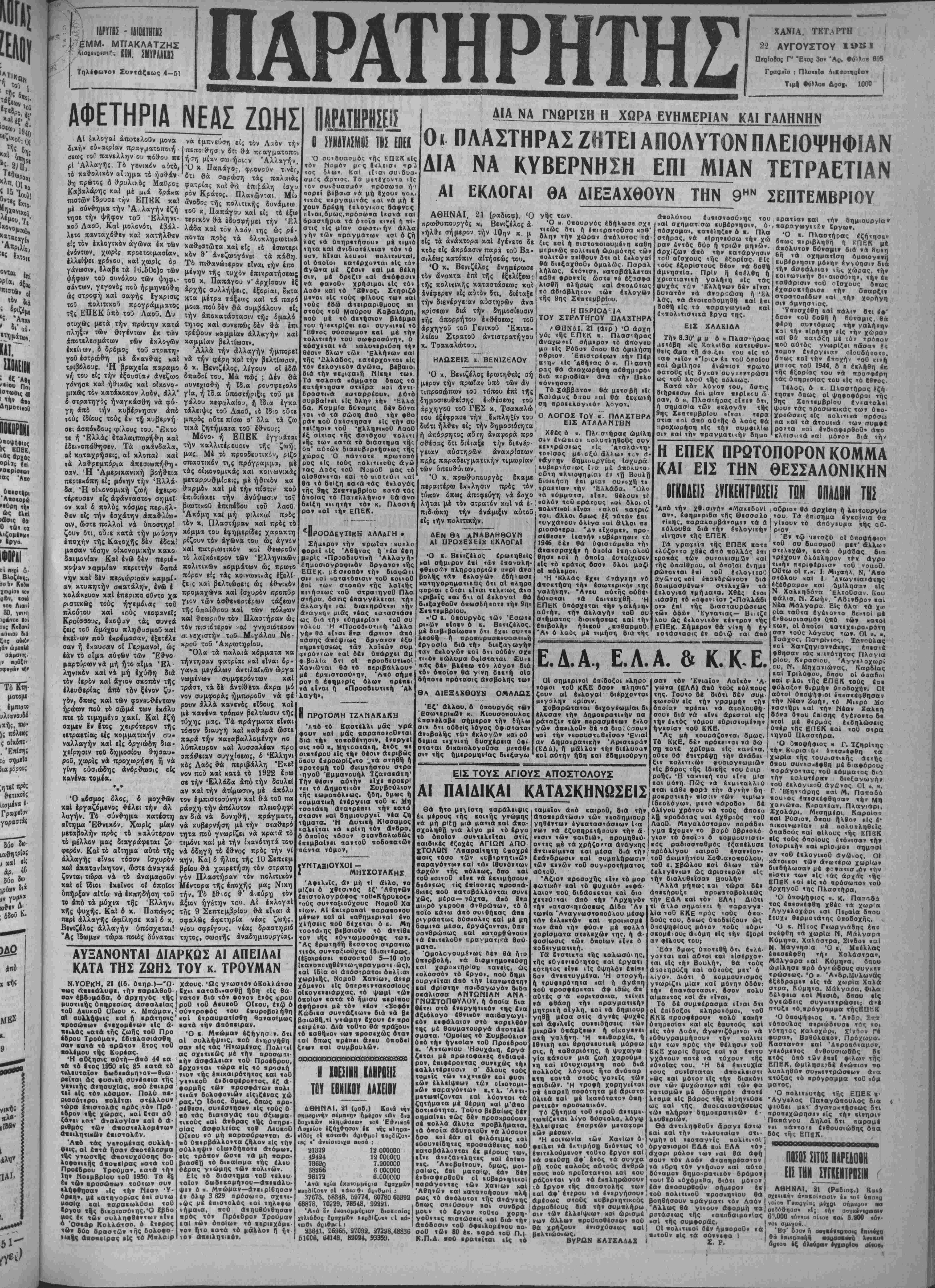 Έν Χανίοις τή 1« ο 1961.