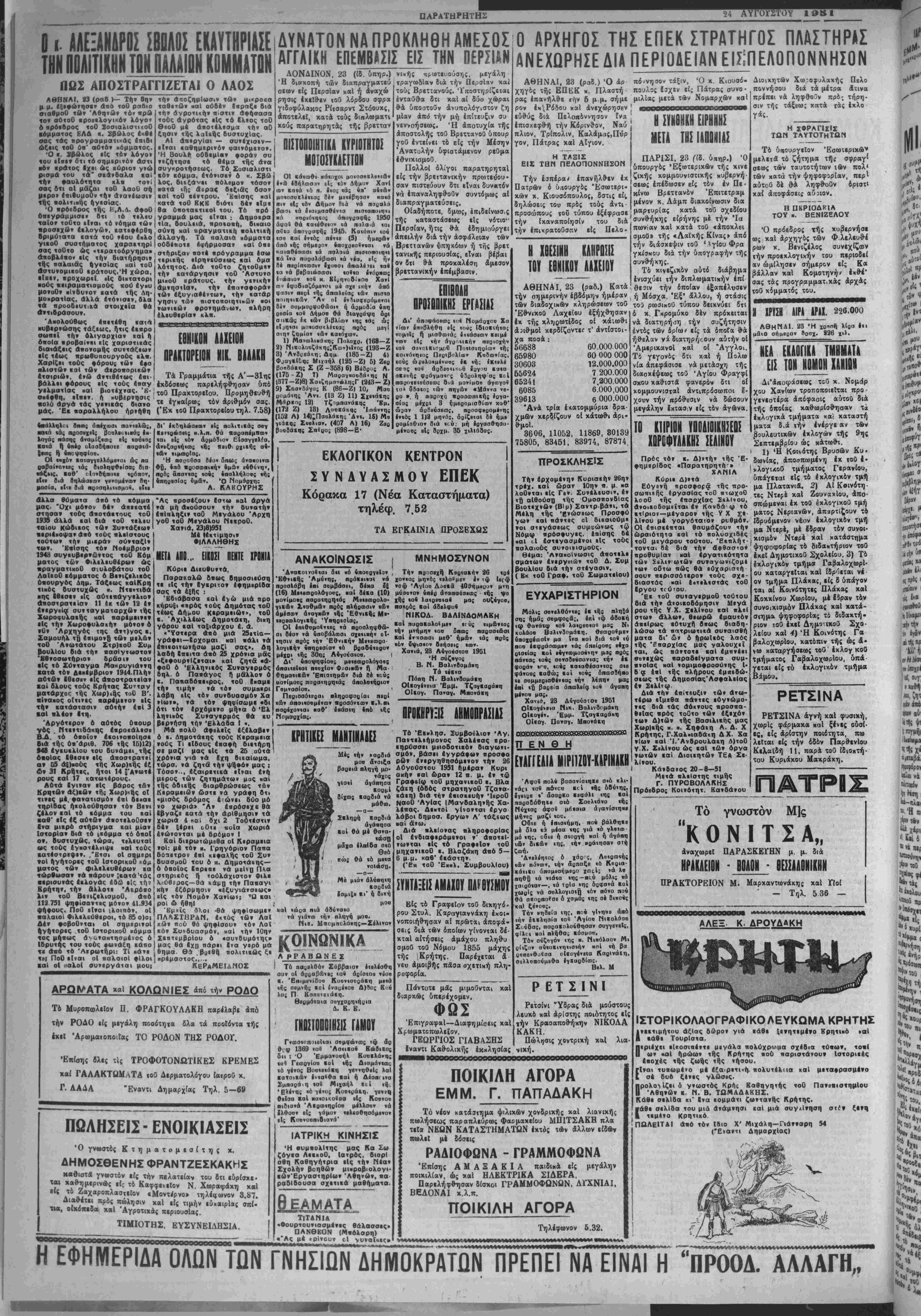 Χανιθ, 23 Α4γούατθ« 1951