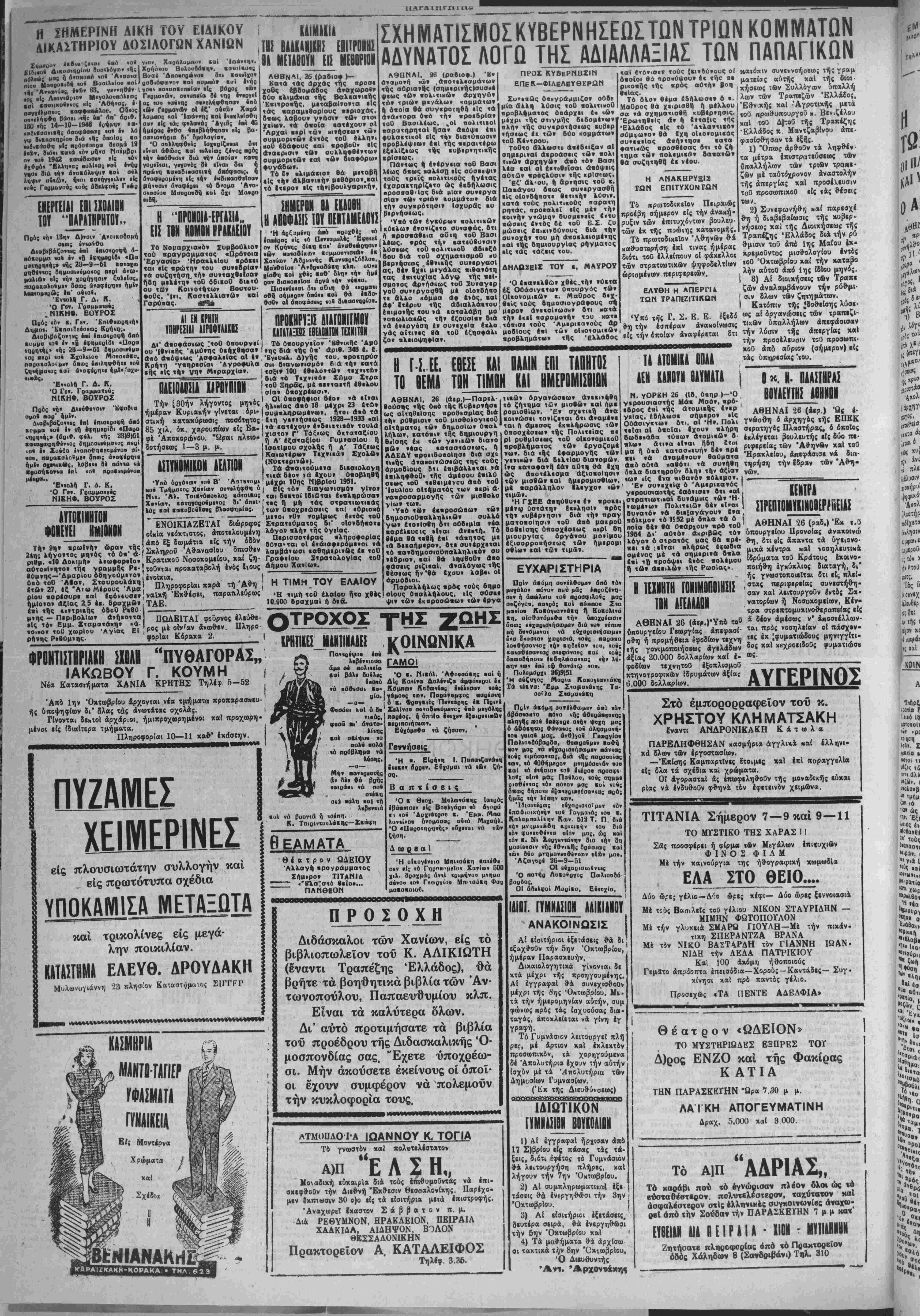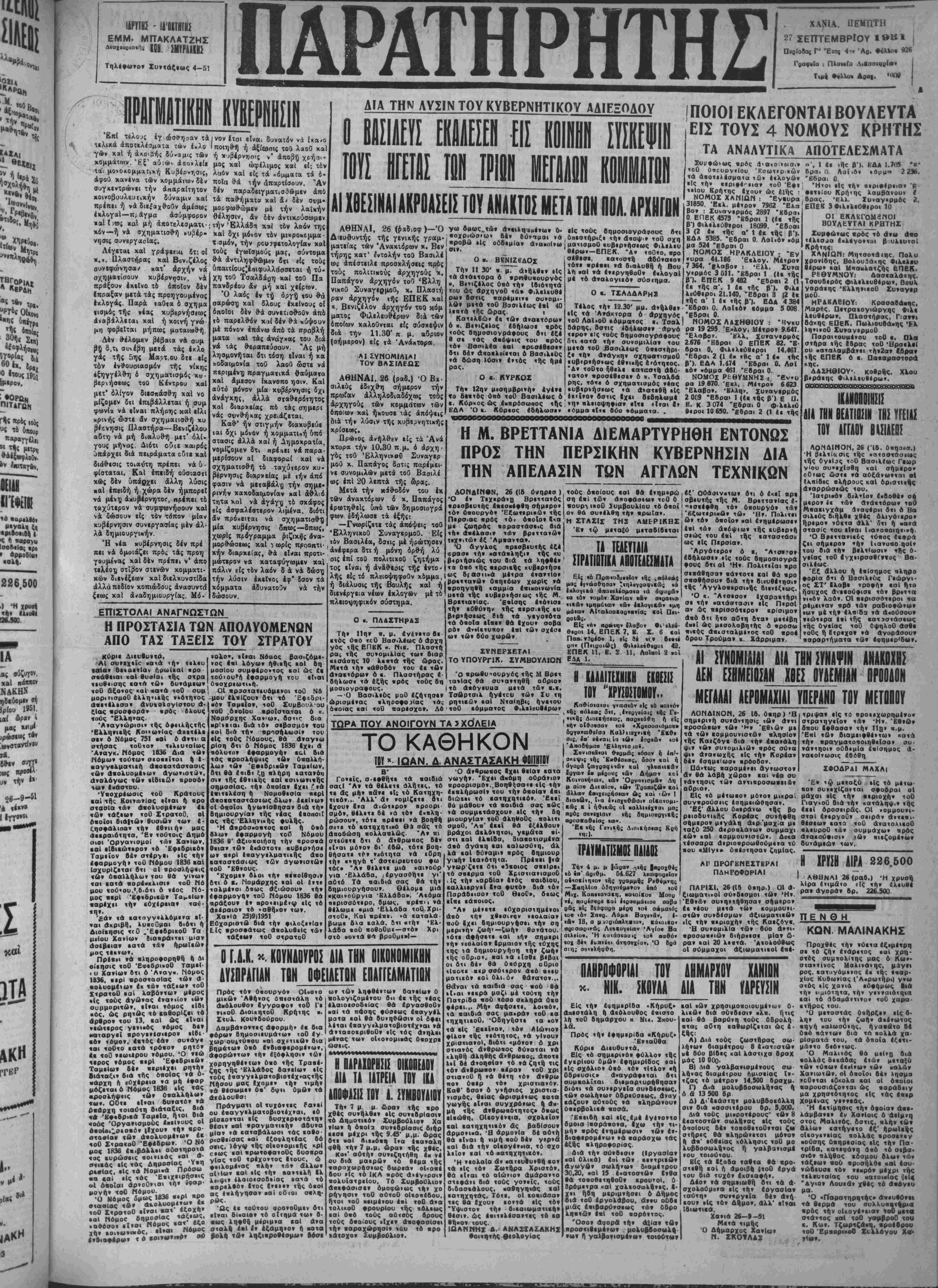 <αι δχι μόνον ή χομματΐκή υπό στάσις άλλά καί ή* Δημοχρατία, νομίζομεν δτ· πρέ/ιει νά παρα- μερίσουν αί διαφοραί χαί νά σχηματισθή τδ ταχύτερον χυ· ββρνησις διαρχείας μέ ιήν άπό φασιν νά μεταβάλη την σημε¬ ρινήν κακοδαιμονίαν χαί άθλιό τητα χαί νά άγάγη τδ σχάφος είς ασφαλιστέραν λιμένα, διότι άν πρόχειται νά σχηματισθή μία κυβέρνησις δπως—δπως, μορθώοεως καί ) ωρίς προοπτι- χήν διαρχΐίας, θά εΝαι προτι¬ μώτερον να χαταφύγωμεν χαί πάλιν είς τδν λαόν δ ά νά δώση την λύσιν έχεΐνο; έφ* δσον τα χόμματα άδυνατοΰν νά την δώσουν. ΕΠΙΣΤΟΛΑΙ ΑΝΑΓΝΩΣΤΩΝ Η ΠΡΟΣΤΑΣΙΑ ΤΩΝ ΑΠΟΛΥΟΜΕΝΩΝ ΑΠΟ ΤΑΣ ΤΑΞΕΙΣ ΤΟΥ ΣΤΡΑΤΟΥ Κύρι* ■ΑΙ συνιχεκ «ατα 'ή» τελευ ΐαΐα* 6·«α·«Ιαν ήρωιεαΐ ·ρο ονάβιιαι «αί βυαΐαι «ής οτρα «•υβεισης «α*Λ τώ» βυ»άμε«» τοθ βξο·ος καί πα«α «οθ ουμ μορκισμοθ έλληηιής νιότητος άνιτέλεσα* άνυ*ο1ογΙστου ά· (Ια< «ροσφοράν βρός βλους «ούς *Ελλΐ)>ας.