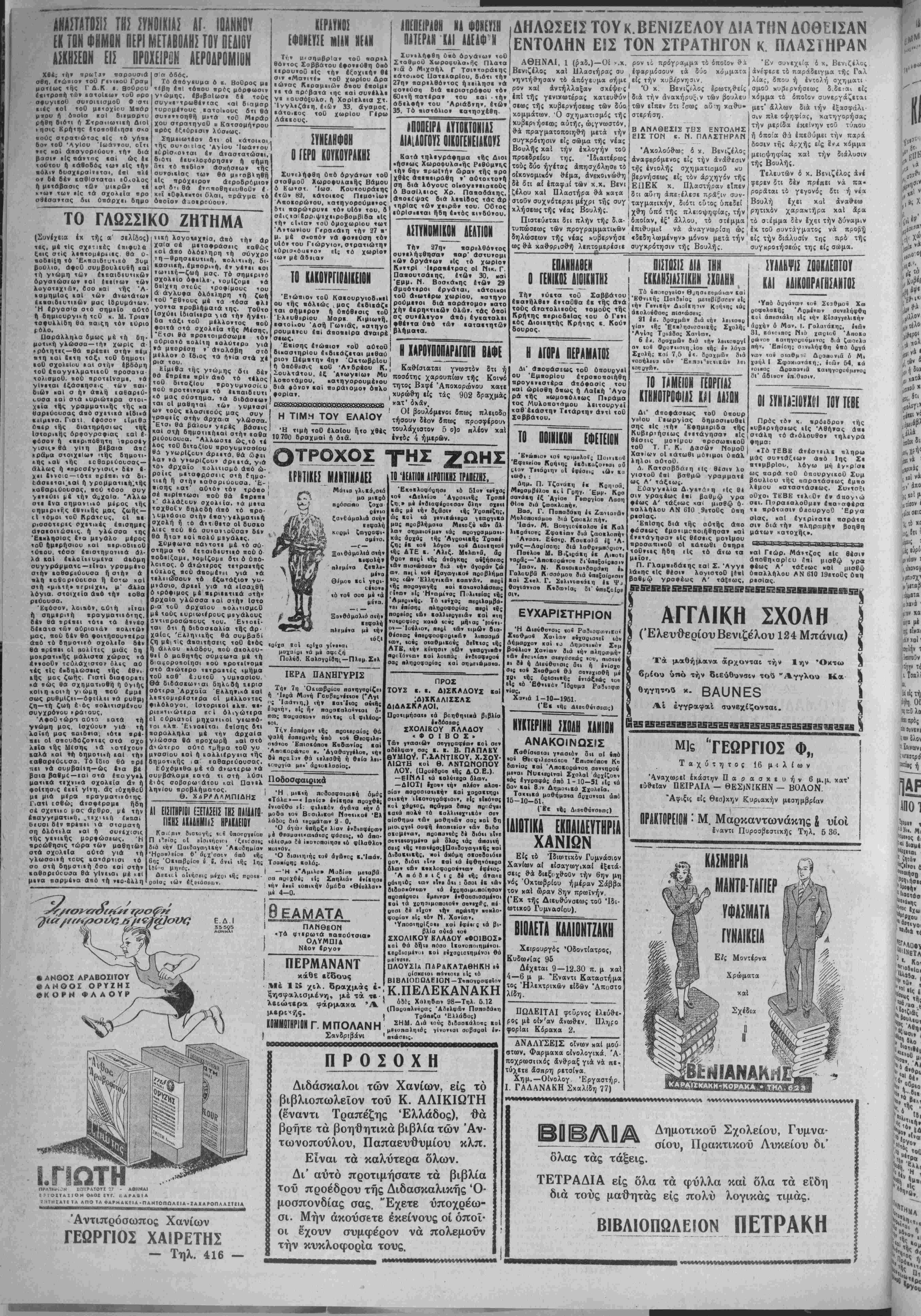 φοοΐαν βΙ{ ιόν Ν, Χο»<ιυ». ΎηοοιηοΙξοει και ίφιιι ; «ό 0ι βλ(α αθ«ά ·ο« ΣΧΟΛΙΚΟΥ ΒΛΑΔΟΥ «ΦΟΙΒΟΣ» «αί θά δή«ε ποοο Ικανοηηιτιμένοι κβα&ιομινϋΐ κοΐ ίίχαοιστημέναι θά μβ(νβ«Β. ΠΛΟΥΣΐΑ Π4Ρ4ΚΑΤΑΘΗΚΗ ε« θΐακειοι πάνιοιβ ίΙ; «ό ΒΙΒΛΙΟΠΩΛΕΙΟΝ-ΤβπονοσΦβΙαν Κ.ΠΕΛΕΚΑΝΑΚΗ Ι δ86ς Χαληβαιν 98—Τηλ 5 12 (ΠαοαηλιινοωΓ; Άηελφόο* Παηηβάκη | Τραηεζα Ελλάδος) ΣΗΜ. Διά «ούς οισαακάλοβς «οί μβίοηαιληΐάς γίνο»«αΙ σοβαραί ■ 1 π«ώοβις. ΙΟ·{?ΑΤΟΤΙ 11 ■ ΑβΗΜΑΙ Ι ΓΓΟ1ΤΑΙΙΟΜ ΟΔΟΙ ΪΪΓ ΙΙΑΡΛΒΙΑ ϊ ΙΤΙΙΖΑΤΕ ΤΑ ΑΠΟ ΤΑ » ΑΡ Μ Α Κ ΕΙΑ - Π Α Ν ΤΟΠΟ Λ ΕΙΑ ■ ΙΑ Χ Α ΡΟΠ Λ Α Γ Τ Π Α 'Αντιπρόσωπος Χανίων ΓΕΩΡΓΙΟΣ ΧΑΙΡΕΤΗΣ — Τηλ. 416 — Π Ρ ΟΣ Ο ΧΗ τό Διδάσκαλοι των Χανίων, είς βιβλιοπωλείον τοΰ Κ. ΑΛΙΚΙΩΤΗ (έναντι Τραπέζης Ελλάδος), #ά βρήτε τα βοηΌητικά βιβλία των Αν¬ τωνοπούλου, Παπαευ'θ'υμίθ'υ κλπ. Είναι τα καλυτέρα δλων. Δι* αΰτό προτιμήσατε τα βιβλία τοΰ προέδρου τής Διδασκαλικής Ό· μοσπονδίας σας. "Εχετε ύποχρέω- σι. Μην άκοΰσετε έκείνους οί όποί* οί εχουν συμφέρον νά πολεμοΰν την κυκλοφορια τους. Ε0ΑΝΗΑ8ΕΝ Ο ίΕΚΙΪΟΣ ΔΙΟΙΙΝΙΗί Την νθιτα τοθ Σαββάτου (■ανήλθεν ενταύθα έ« της ανά τοος άνατολι«οϋς νομούς τής Κρήτης «εριοδεΐας τού ό Γενι «ΰς Διοιιητής Κρήτης «. Κούν δοιιρος. Η ΑΓ0Ρ1 ΟΕΡΑΜΑΤΟ. Δι* άποφοίσιως τοθ ύπουαγεΐ ου "Εμαορΐου έτροαοηοιήθη ηρογενεστέρα άηόοοσΐς τού «αί ώρΐοθη δαως ή ΛαΙκή Άγο ρά τής κωμοπόλεως Περάμα τος Μυλοκοταμου λιιτουργΐϊ καθ έΐάστην Τετάρτην άντΐ τοθ Σοββάτου. ΤΩ ΠΙΙΝΙΚΒΜ ΕΦΕΤΕΙΟΝ 'Βναιαιον «αν «οιμκλοίς ΠοινιΚηΰ Έφβ«»ίοο Κοηΐης Ι*«9ιΚαζοι·α· ου Ιΐαν Τειαριην όϊ (φέοβις ιβ· κ» •ωθι : Δημ. Π. Τζανάκη <« Καηιοά. Μεοαμβ^λοα κιΐ Γοηγ. Έμμ· Κρ,σ οανάκη έξ Άγ'θο Γεωογϊοα Λαοη θΐοα Οιά ςωοκλοηήν. Βασ, Γ. Παπα3σ*η ■« Ζωνΐανόό» Μυλοηοιαμον δια ζωοκλτπήν. Ίααν. Μ. Βοονιονκαλοα ίκ Καλ λιΚοάιοος Σφακίων διά ζωοκλοηήν 'Ανααι. Ε«ο«ρ. ΚαιιΚα^ά <ξ Ά- νιάς— Ααρίσοης διά λαθονμπ?οιον, Πο«λο· Μ. ΒιζιοαΚη ίκ Λ>·ο(ι