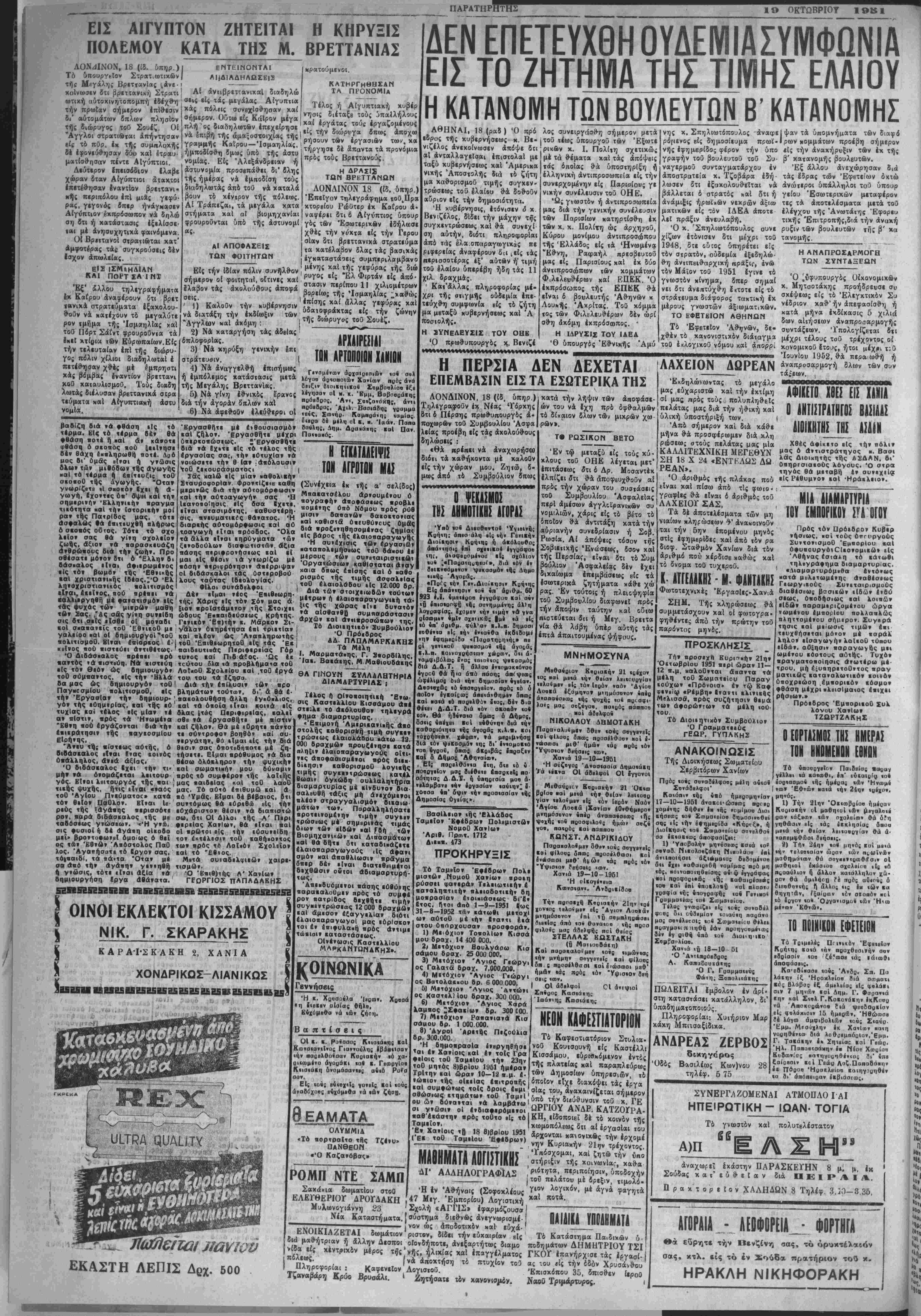 Πρακτορείον ΧΑΛΗΔΩΝ 8 Τηλέφ. 3.20—3.35.