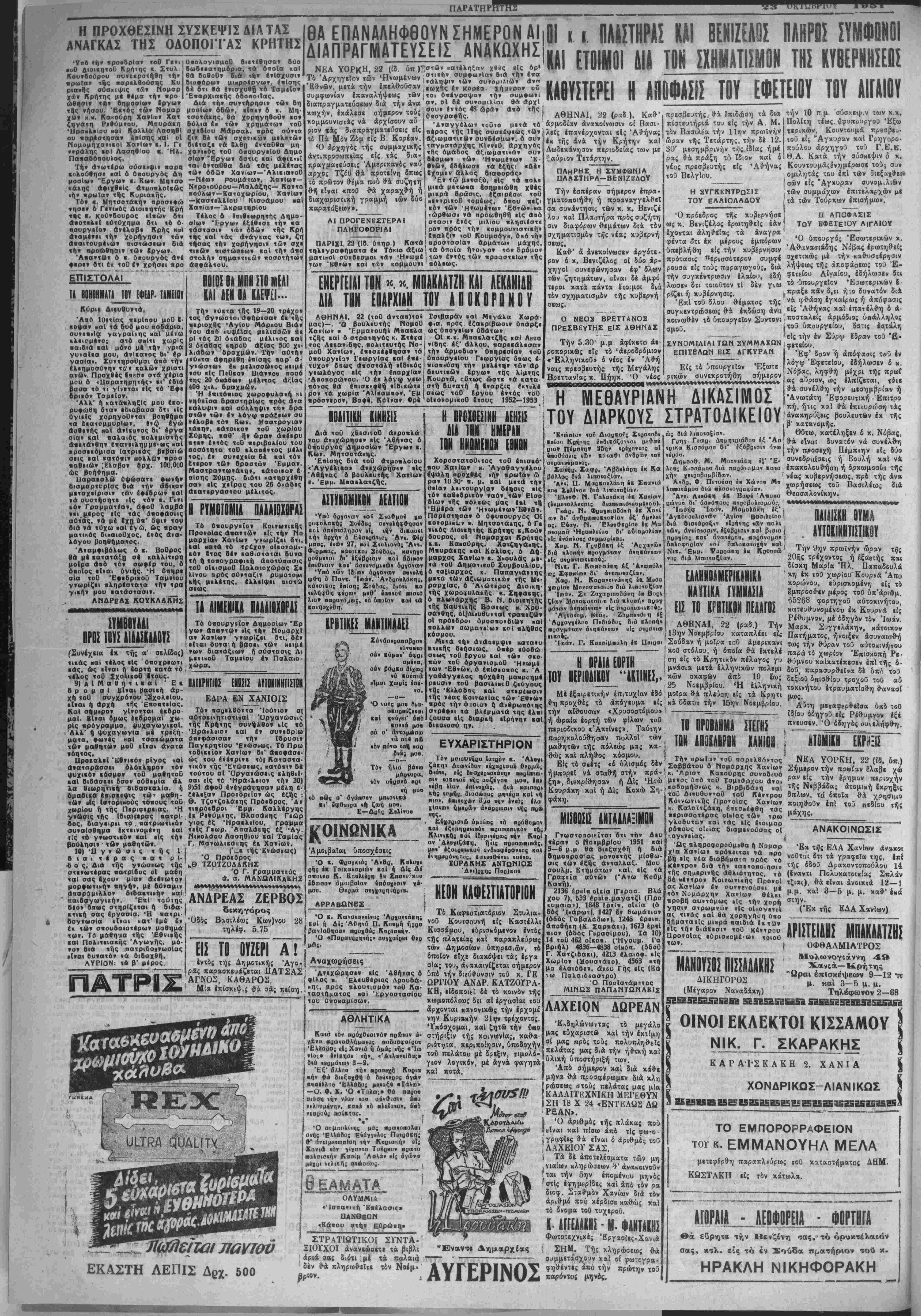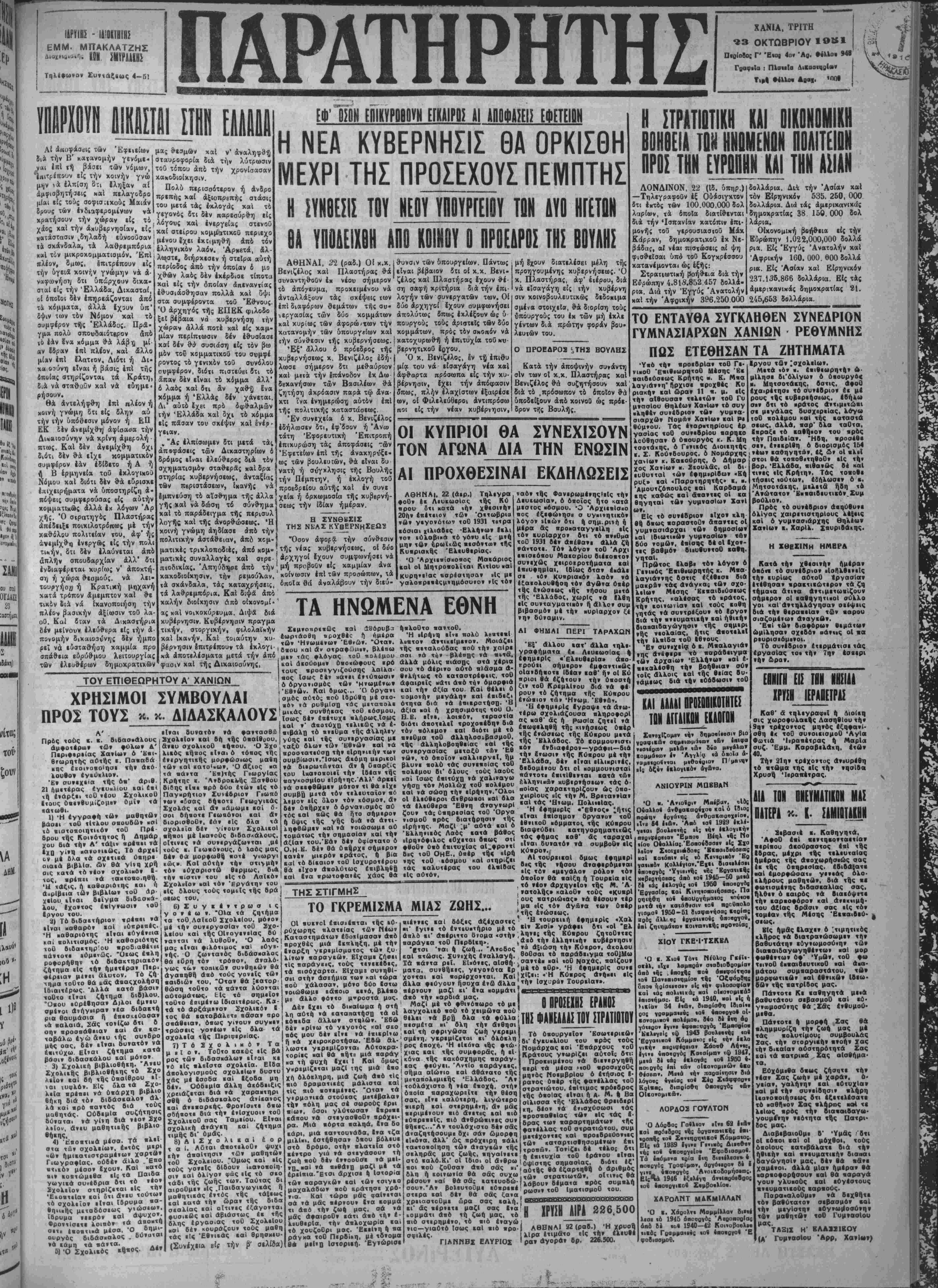 Δ.α<^.».η. Ι9Μ 2ΗΥΡΑ&ΕΗ- Τηλιφωναν Συντάξεως 4—51 ΠΑΡΑΤΗΡΗΤΗΣ ΧΑΝΙΑ. ΤΡΙΤΗ «3 ΟΚΤΩΒΡΙΟΥ Πε0ίο9ο5 Γ' Έ·ο9 4ο» Άο. *·>Λο· 948