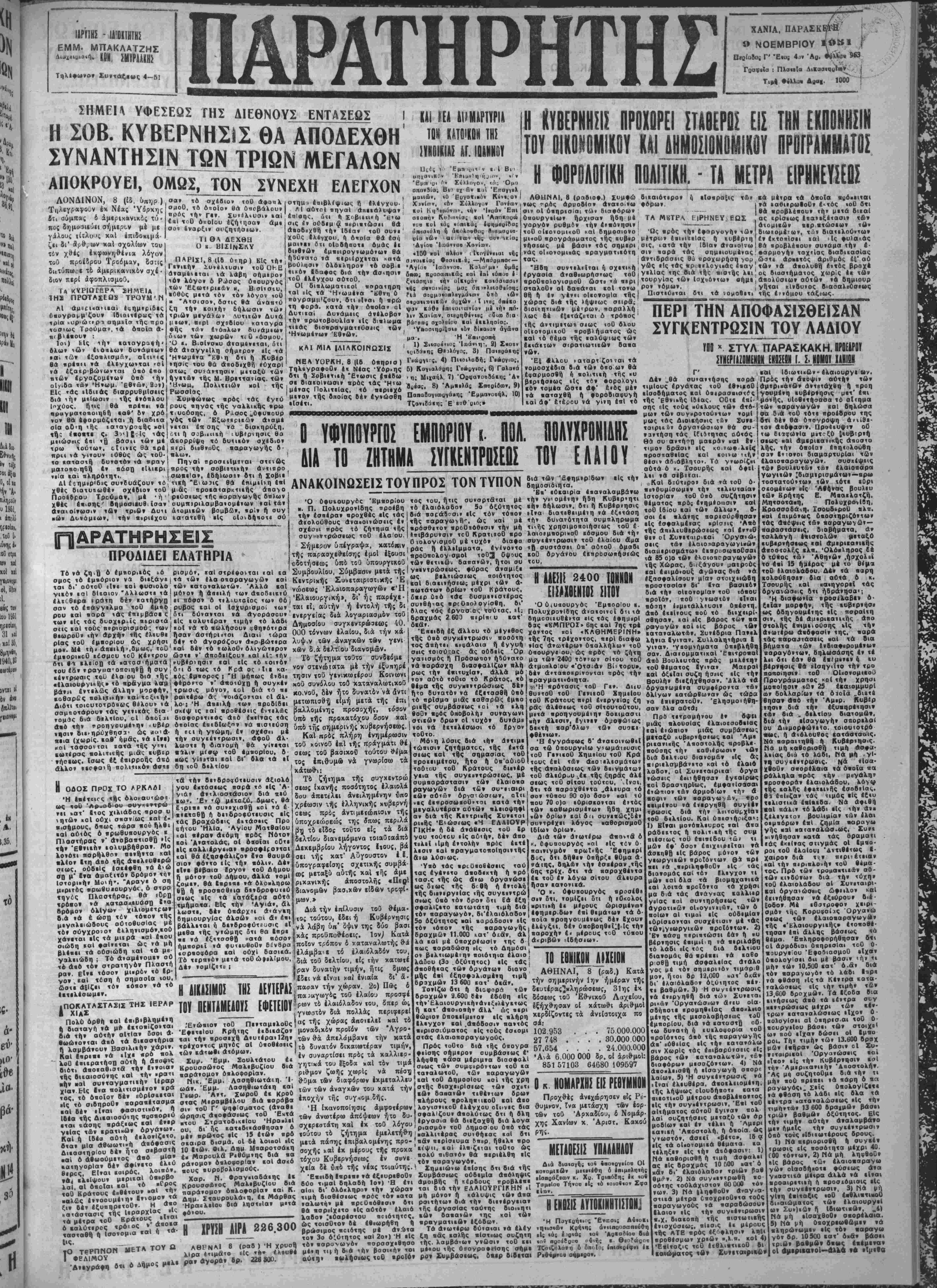 πρδς τή* Π». ϊυ»ίλ*υσι» καί έπ(βης. δτι ή χοβικκή ·<=»ω αεοηη» ΚοΒιο«ΙβΕ «οί Άινηκι.οώ επι «ου όποΐου εζήτησαν άμ· | σις «ν οθβεμ « περιπτώσει βά ·αο κοΐ ιιϊε .οηικιϊι: ίαηιιβοίΛαι: Η ΚΥΒΕΡΝΗΣΙΣ ΠΡΟΧΩΡΕΙ ΣΤΑΟΕΡΟΣ ΕΙΣ ΤΗΝ ΕΚΠΟΝΗΣΙΝ ΤΟΥ ΟΙΚΟΚΟΜΙΚΟΥ ΚΑΙ &ΗΜΟΙΙΟΝ0ΜΙΚΟΥ ΠΡΟΓΡΑΜΜΛΤΟΣ. Η ΦΟΡΟΛΟΓΙΚΗ ΠΟΛΙΤΙΚΗ. - ΤΑ ΜΕΤΡΛ ΕΙΡΗΝΕΥΣΕΟΣ ρς η Γ»». ϊυ»ίλ»υσ ΐβΐ«οθ όκθΐου εζήτησαν σον Εναρξιν συζητήσεων. ΤΙ ΘΑ ΔΕΧΘΗ Ο κ. ΠΑΡΐχΐ, 8 (16 ύνηρ) Είς τή* Γκνική* ΐυ»ελ«υσιν τοΟΟΗΕ ά*αμκ>·ται ιά λάβη σήμερον