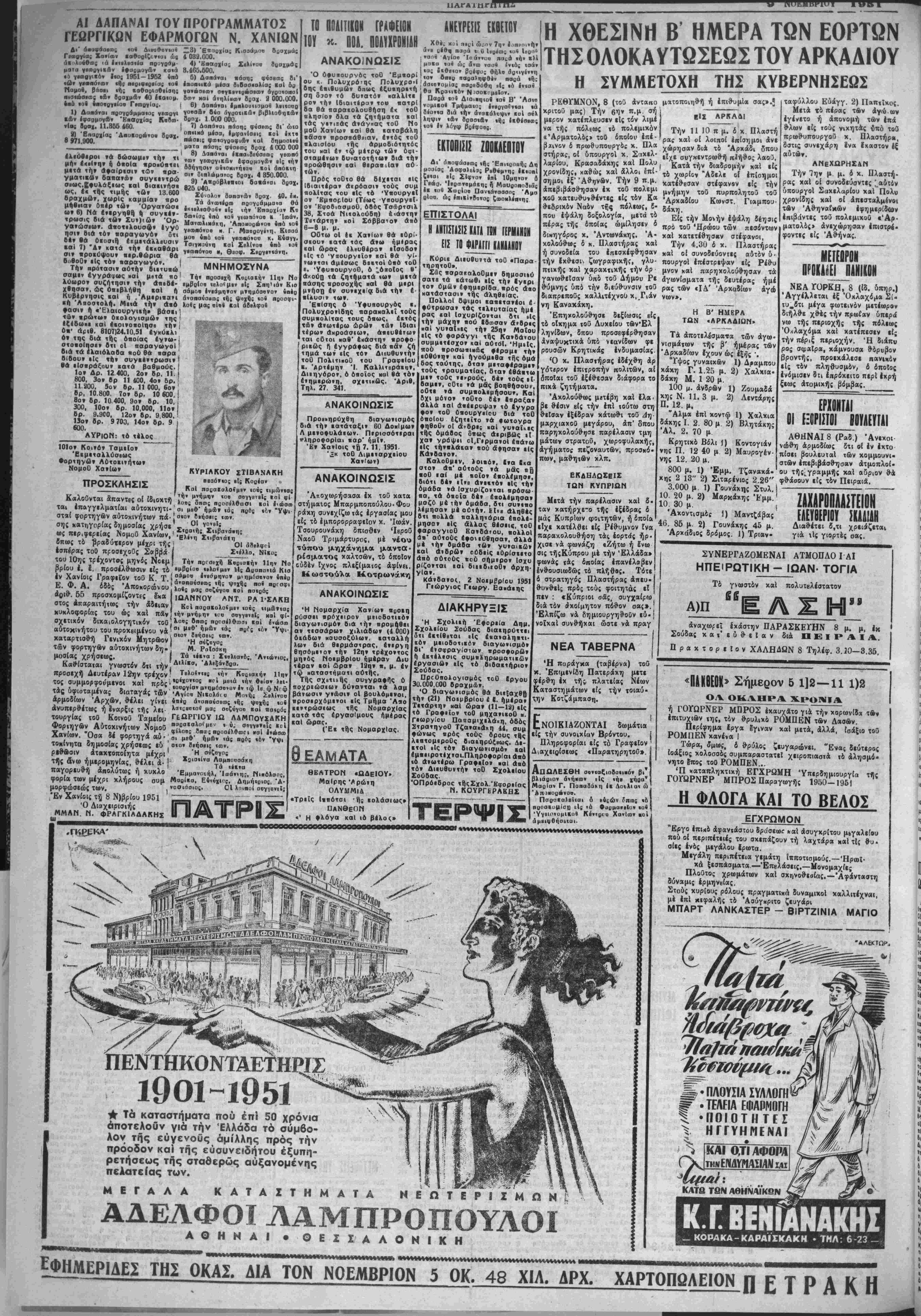 Μαο<α« Γ. Παπαδάκη Ικ Δο«λκι« ώ Πσραΐα)βί(αι δ βθι,ών ?ηως <& ποοοκυμΙο|] ιΙ; <ύ ΦϋαμανεΙυν «ο» γμ* Κένΐριο Χανίων «αί άμβιφθήοικαι. πεντηκονταετηιώ: 1901-1951 ^ ΧΛ ^ Τα καταστήματα πού επί 50 χρόνια - %ν '>
