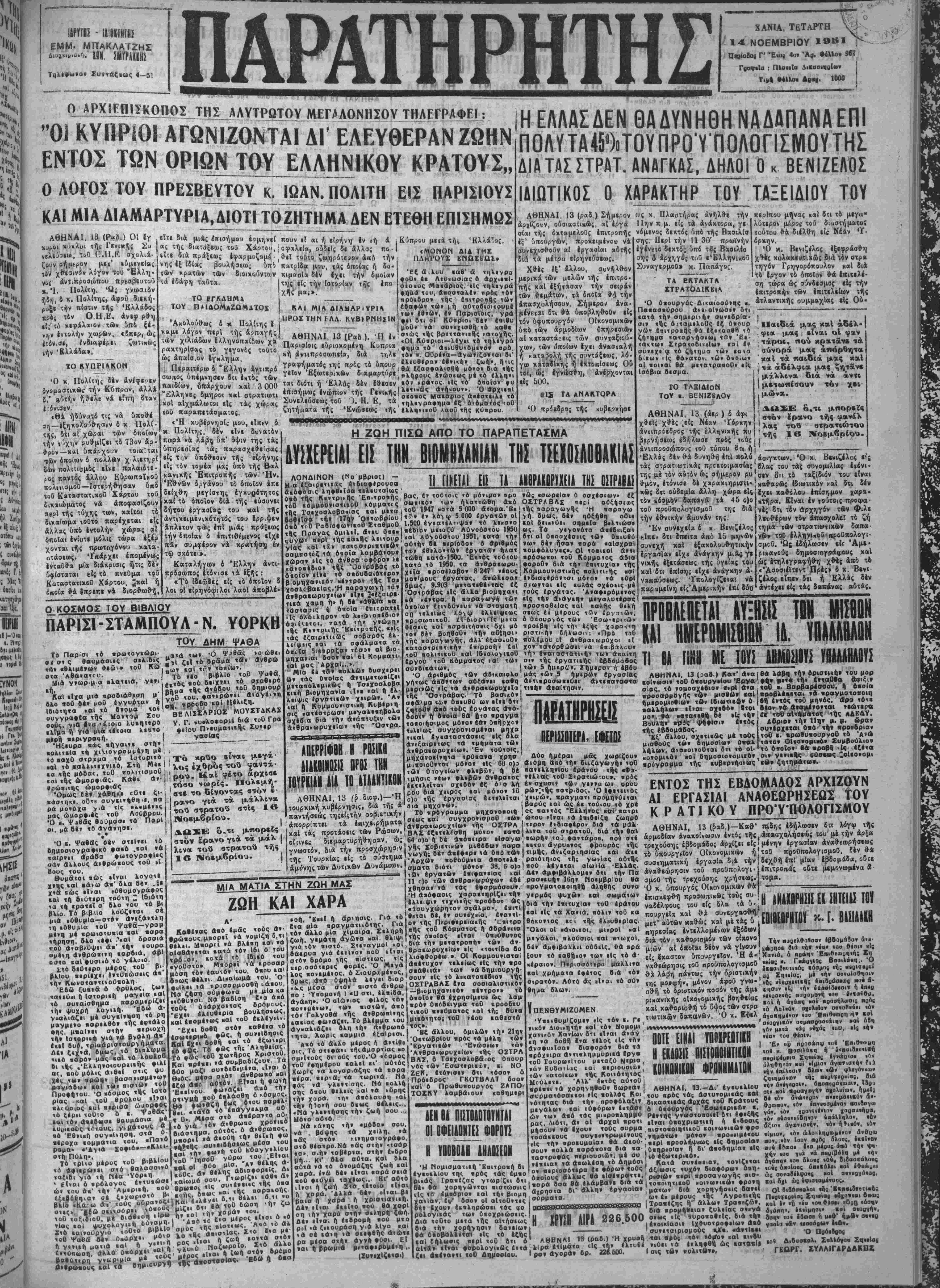 <θα ηδύνατο τις νά 6ηο&έ αί)—Ιξηκολθ'Ίθ'ησΒν δ χ Πολί¬ της, 5ίι αί χώραι των δποίων ΐήν τύχην ρυθμΐζει τ6 73βν αρ¬ θρον—χαί ίιπίρχουν ιοια'ται τβν οποίων 6 πολλΔν χ λιΐτηρ( £ι»ν πολΐϊΐαμδς είνε παλαιδτ·· (.οί παντός αλλου ρ πολιιισμοΰ—δστερήθηοαν τοθ Καταστατικόν) Χάρτου τοθ £ικ»ιώματος νά αποφασίζουν ύ ί δ ρ νης εξ ιδίας τβν" άκδ ά ΠΟ· την ά εδαφη ταυτα. ς έφαρμοζομέ (θ«1 τουτο ζ^ηρότι,νον άκδ την βουλήσει^ υπ% ΐΐΛτρίδα μόν, τάς ίποίας ή δο- τί»ν διοιχούντι»ν (χιμασίκ δέν |χ»ι την ομοίαν ' ί Ι έ : Κόπρου μειΐ τής Ελλάδος. Ι «ΜΟΝΟΝ ΔΙΑ ΤΗΣ ΠΛΉΡΟΥΣ ,--------------- -Λ-- ·■!- "Ι---—- |ς είς την Ιστορίαν Βς έπο ^ μ«ί»7.....*« ΚΑΙ ΜΙΑ ΔΙΛΜΑΡιΥΡΙΑ .. . .„ . Π ,, _ ! ΟΡΟΣ ΤΗΝ &ΛΔ. ΚγΒιΡΝΗΐΙΝ Ακολούθως δ κ Πολίτης Ι ________ ΤΟ (-ΓΛΔΗΜ4 Π * ΙαΟΜΑΖΩΜΔΤθΕ ως δ χ χ»με λόγο» περΐ τής ά,ίπα τ*ν χ,λ,αδα,ν ΙλληνοπαίΚιον Ι ΑΘΗΝΑΙ, 13 Παρισίοις ·Η ΈξαΊλυυ ιαβ' ά τηλεγρα •θθο «ι Λ<υ>ωσΐας ό άρχιεβΐ-