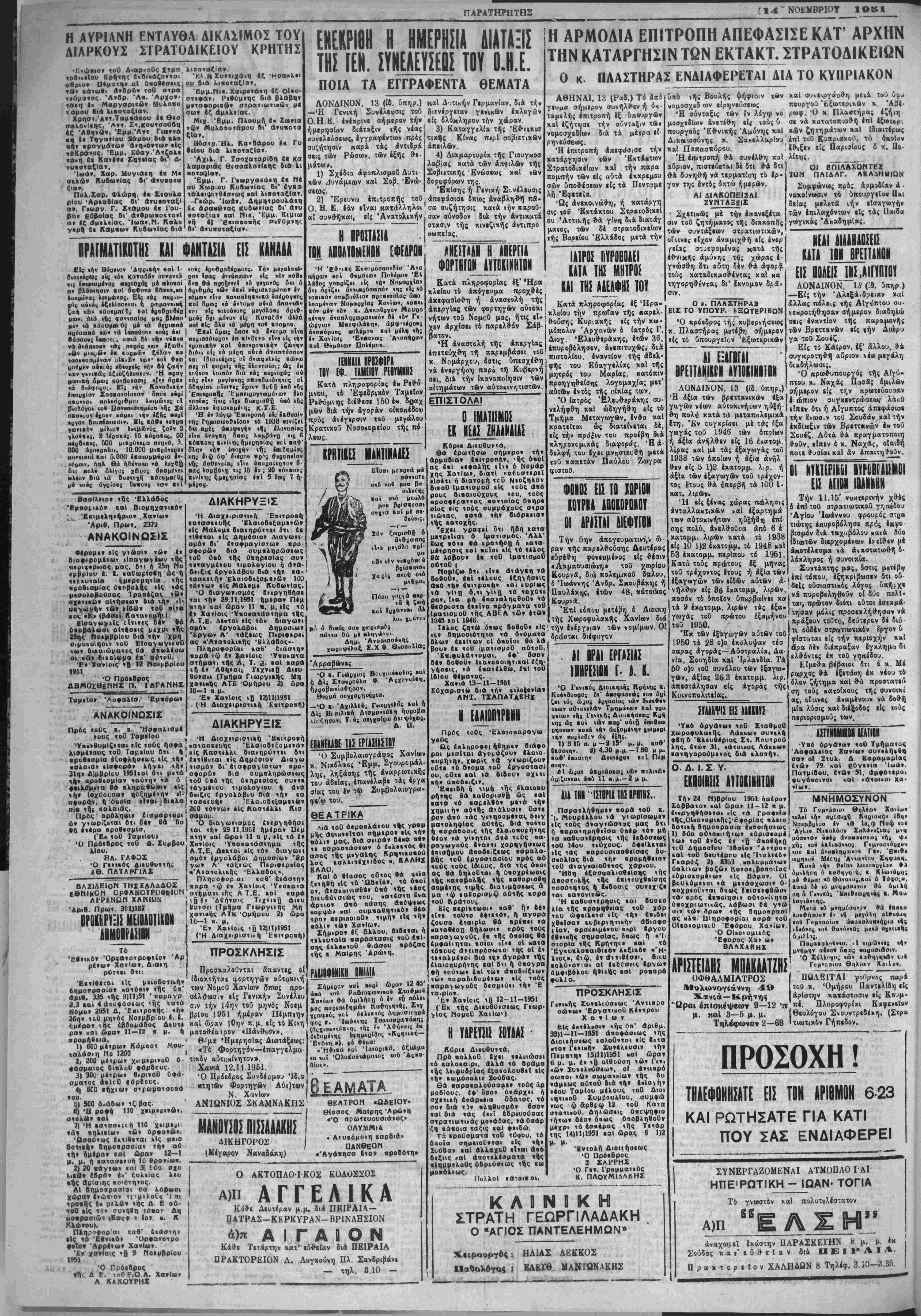 [|< ΑίΙΟΧ ΙΟΑΝΚΗΙΙ Την 11.15" νυκτερινήν χθες δ επί τοθ στρατιωτικόν γηπέδου 'Αγίου Ιωάννου φρουρός στοα τιώτης έπυροβόλησε πρός έκφο βισμόν διά ταχυβόλου κατά δύο ίδιοοτων διερχομένων εκείθεν μέ άηοτέλεσμα νά ά»ασταιωθή δ- λόΐίλ'ίΐρος ή συνοιχΐα. Συντάχτης μας, δστις μετέβ·; επί τόπου, έξηχριβωσεν δτι ου¬ δείς ούσιαστΐΜθς λόγος ύπήίχ* νά πυροβοληθ&ΰν οί δύο πολΙ« ται, πρώτον διότι ούτοι έσταμά· τησαν μόλις προσεχλήθησαν νά πράξουν τουτο, δεύτερον δέ διό τι ουδέν στρατιωτικόν έργον 6 φίσταται είς την περιοχήν χαΐ άρ& δέν διέπραξαν ίγχλημυ δι ελθόντες έχ τοθ γηπέδου. Είμεθα βεβαιοί δτι δ χ. Μέ ι έχ νέου το ΕΚΠΡΙΗ-ΙΣ Την 24 Ν)βρΙου 1951 ήμίραν Σϋββατον .αί ώραν 11-12 η μ. 1) δύο οότοΗΐΐήτων εύρισκομέ νων τοθ ενός εν ^ άαοβήκο τιθ Δημοσίου Ίβοϊον "Αντρον «αί τοθ δευτέρου είς Ιταλικόν Γεαρό{ 2) 8353 . Ηαλυμμά*ων ΰαλ(«ων ροζώ» Κονσε.βοΐΐοιίος εύρισιομέιων *1ς Βάμον. ΟΙ βουλόμενοι νά μετάσχωσιν ύ- αοχρεοί'νται δηως ίνισειφθωσι ση τούς Ματοίχους τής συνοιχί άς, οΐτινες άναμϊνουν νά δοθή μ(α λύσις χαί διέξοδος ι(ς τούς περιορισμού; των. Δ»ΥΝΟΜΙΙΟΝ 1ΕΛΙΙ0Ν •Υπό δργάναιν ιοθ Τμήματος Ασφαλείας Χανίων συνελήφθη σαν οί Στυλ. Δ ΚαραμαρΙας ετων 79 καΙ εονενΐα Ιωάν, Πατμίβου. ετων 51, αμφότερα· φυγονοινοι κα1 κάτοιιοι Χα· νΐων.______________ ΜΝΗΜΟΣΥΝΟΝ θηλέων Χανιά»» μ·ΐ] ψ.ι ΣπΚάκζια; μόοοϊθ» βαεο αναπαιίθΒιο: «ή» »ή; «οί ί«ίιΐΐό»«ος Γμ «αο κιιΐ (ίνοηΧηυα)«ιι· Γε» ιορ,ηιυί Μίοΐ]; Κα<ά ι<|» θ«Ια· δμιλήοη 6 καθηγη ή; κ μί θίμα: «1 Θα»α»ϋ[,κα1 Α Κα«ά ?έ ιό μνημόαανυν θ οη ό ΓειικΔ» Ίθ τά'.ρδς ίΜοΙησι, αθτο.ίνητα)^ ° ;««"* •-«••-Β-»·*· >